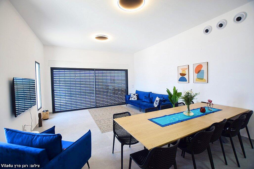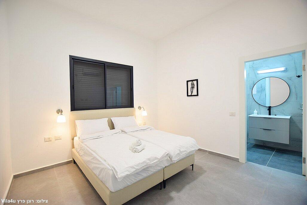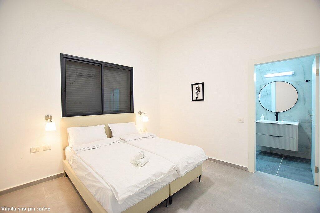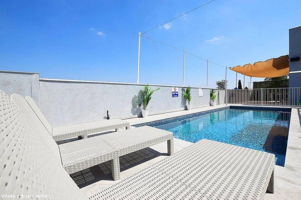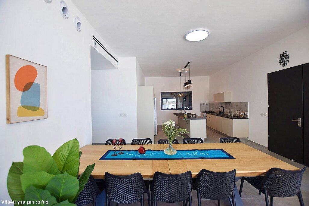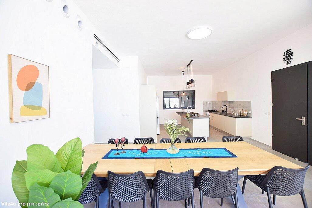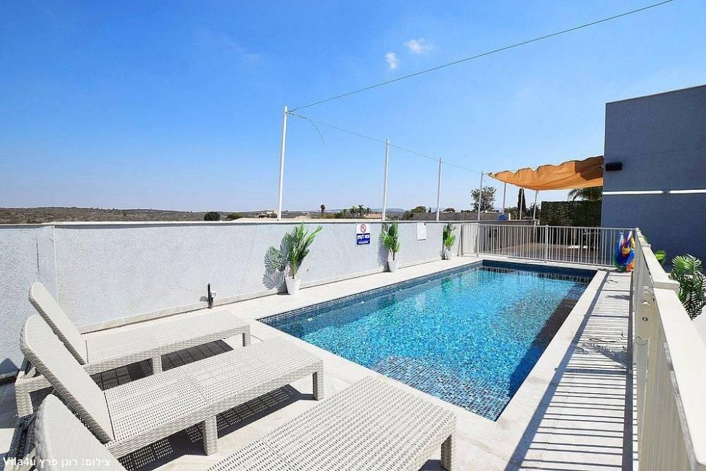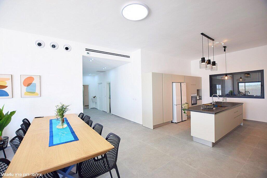 חמישה חדרי שינה, מטבח מפנק, סלון מרווח וחצר עם בריכה מחוממת, האחוזה מתאימה למשפחות, קבוצות והציבור הדתי עם כל ההתאמות הנדרשות - עיצוב כפרי מוקפד, ברביקיו מקצועי, מרפסת ונוף פתוח להרי ירושלים