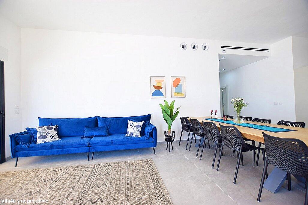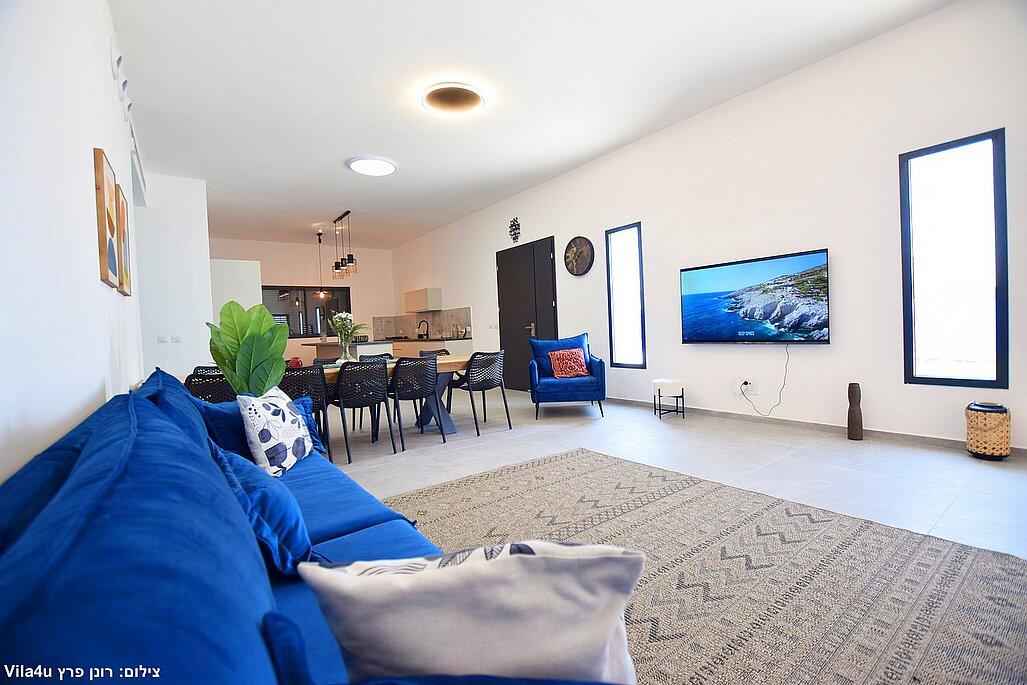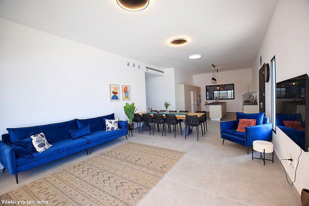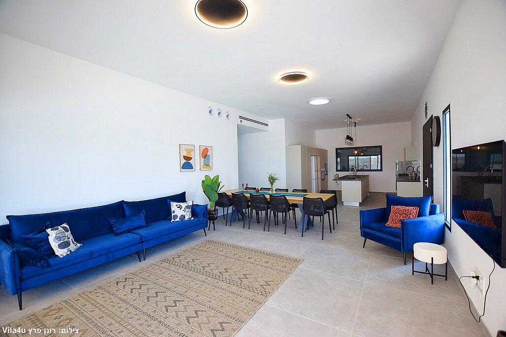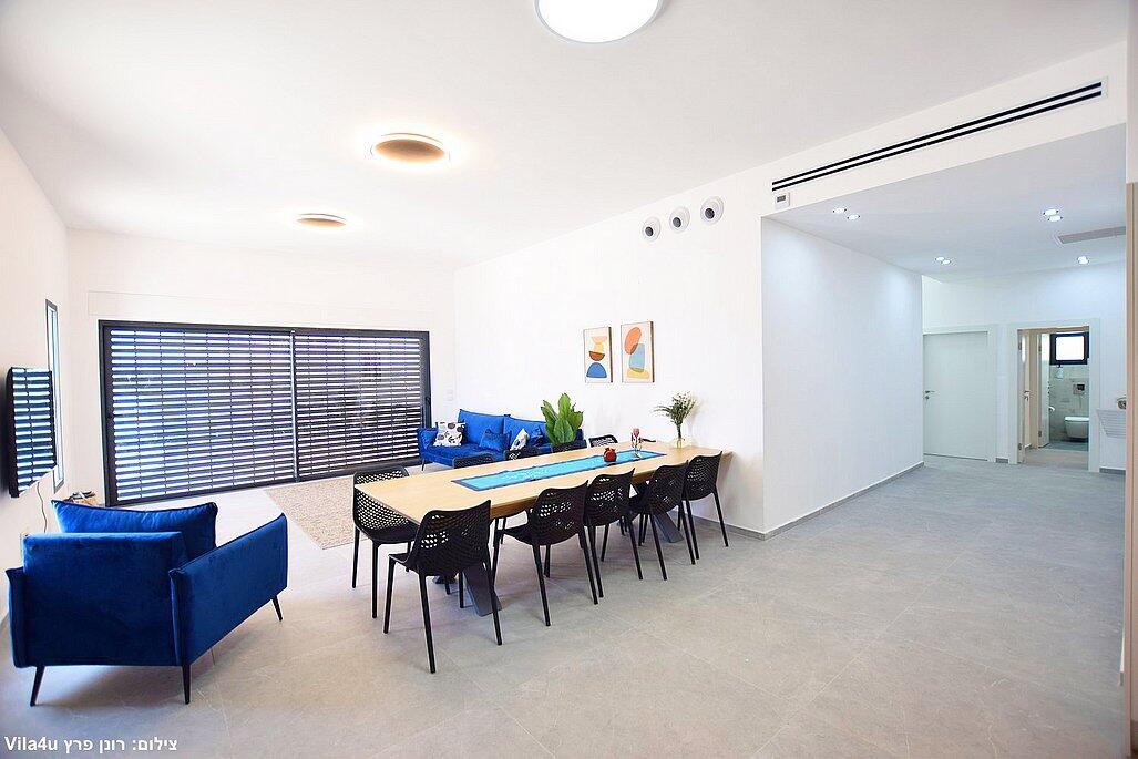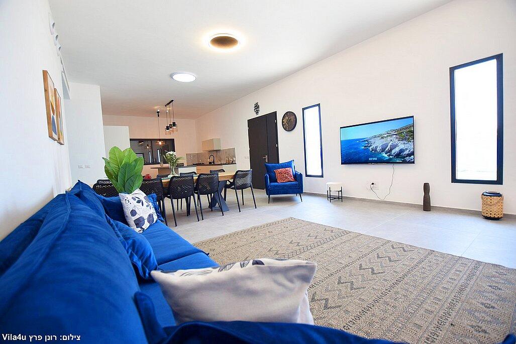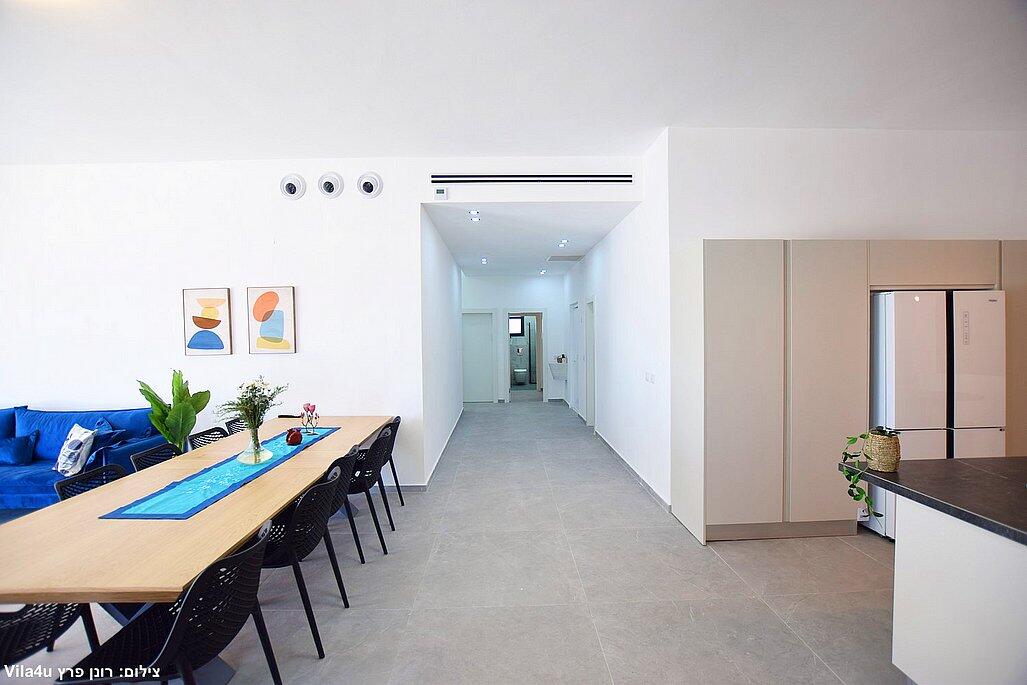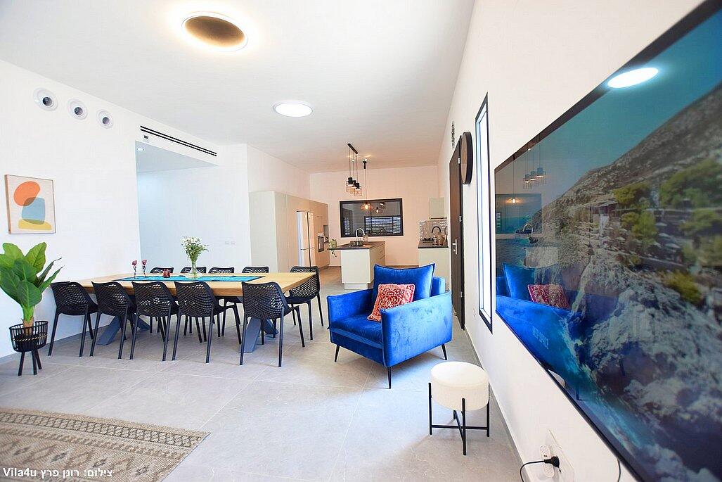 חמישה חדרי שינה, מטבח מפנק, סלון מרווח וחצר עם בריכה מחוממת, האחוזה מתאימה למשפחות, קבוצות והציבור הדתי עם כל ההתאמות הנדרשות - עיצוב כפרי מוקפד, ברביקיו מקצועי, מרפסת ונוף פתוח להרי ירושלים
