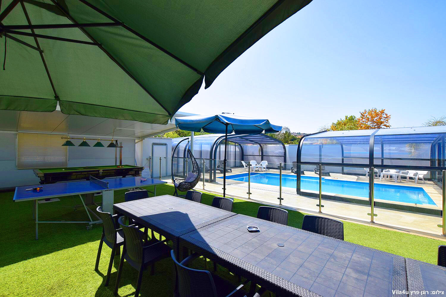 אחוזת הלל בגליל שבגליל המערבי היא המקום המושלם לחופשה פרטית ומפנקת. עם 5 חדרי שינה מעוצבים, סלון מרווח ומטבח מאובזר, תיהנו מאירוח באווירה חמימה ונעימה. בחצר המתחם תוכלו להירגע בבריכת שחיה מחוממת מקורה, ג'קוזי ספא, ושולחן סנוקר. פינת מנגל ופינות ישיבה מזמינות אתכם לשבת יחד ולהנות מהחיים. חווית נופש בלתי נשכחת מחכה לכם כאן, מהרו לשריין מקום!