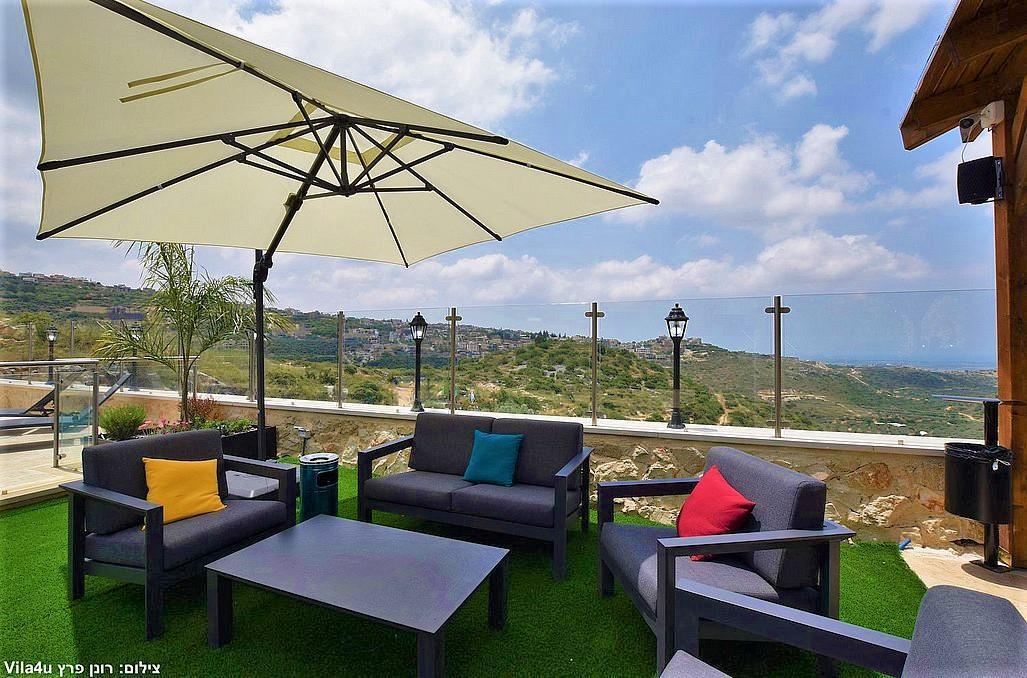 בוילה תהנו מ6 חדרי שינה מפנקים, סלון מרווח ומטבח מאובזר. הלינה במתחם עד 27 אורחים, אירועים עד 70 איש. בנוסף, במתחם החוץ תוכלו ליהנות מבריכת שחייה מחוממת ומקורה, ג'קוזי ספא מחומם מקורה, מתחם מקורה של מגוון משחקים נוף מדהים ועוד.