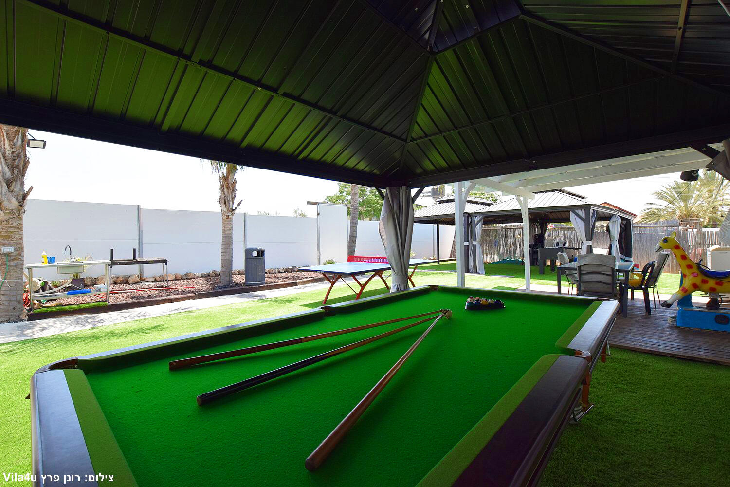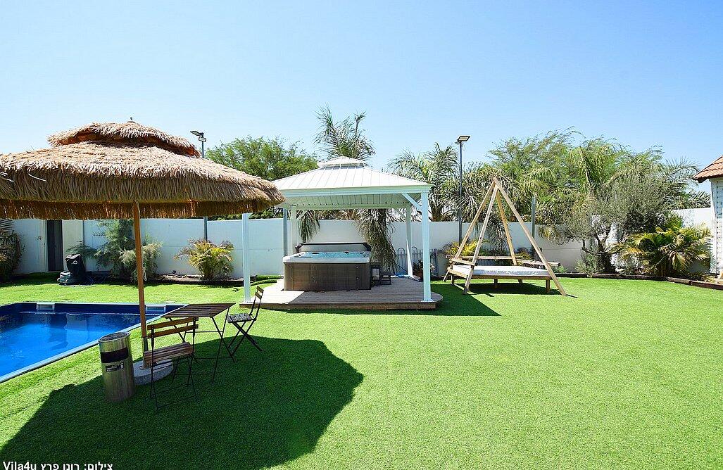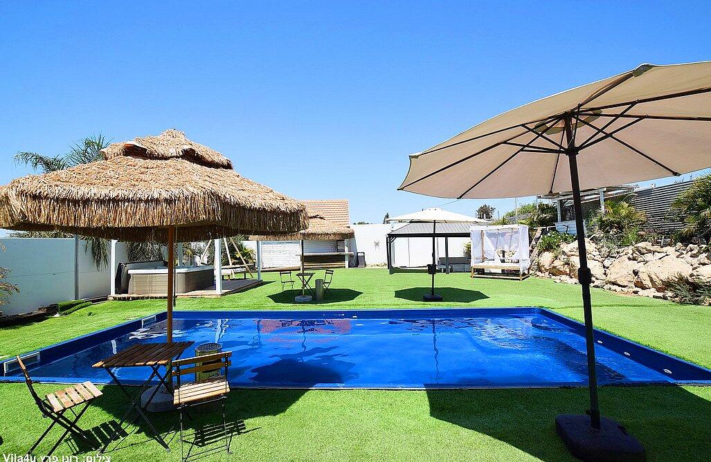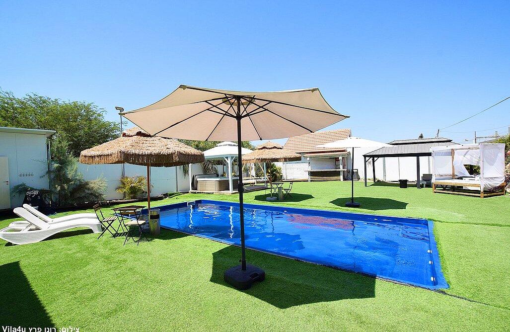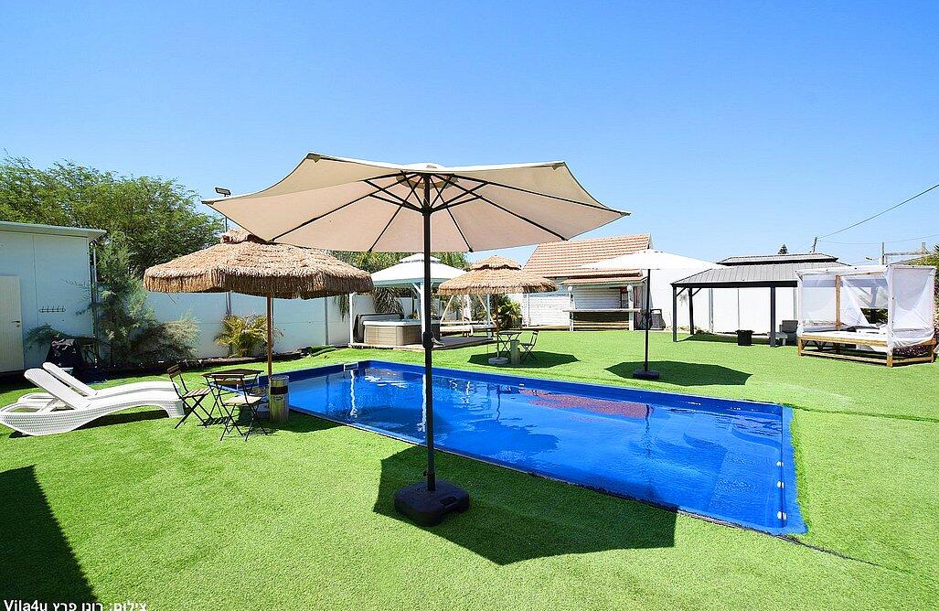 המתחם הקטן כולל 2 סוויטות עם 2 חדרי שינה לכל אחד, בריכת שחייה, משחקי שולחן, סלון ומטבח מאובזר.