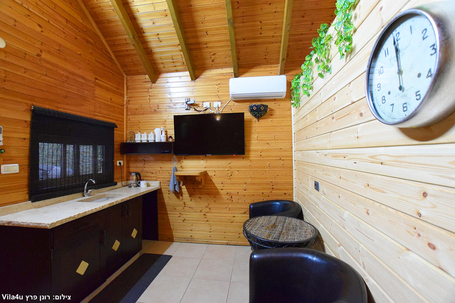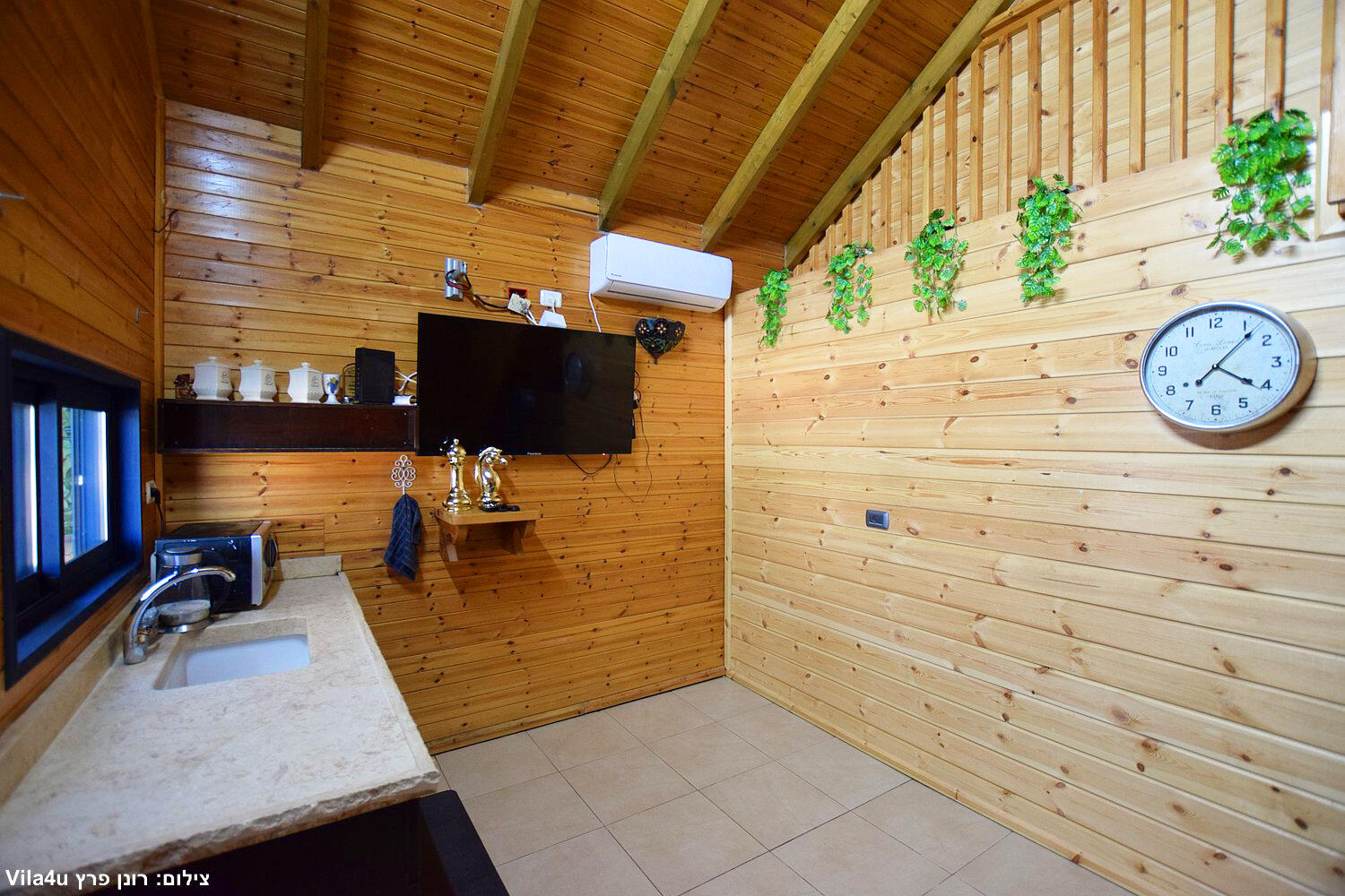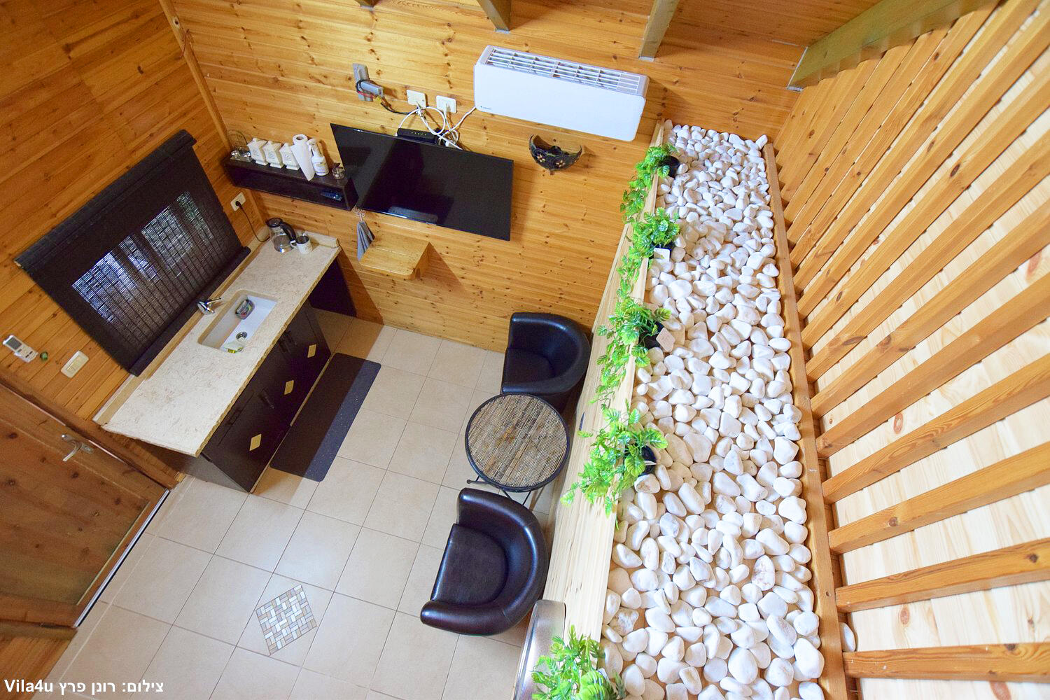 המתחם הקטן כולל 2 סוויטות עם 2 חדרי שינה לכל אחד, בריכת שחייה, משחקי שולחן, סלון ומטבח מאובזר.