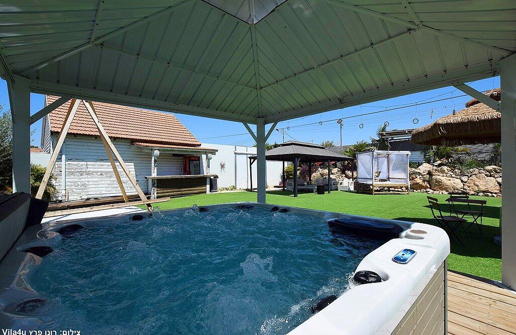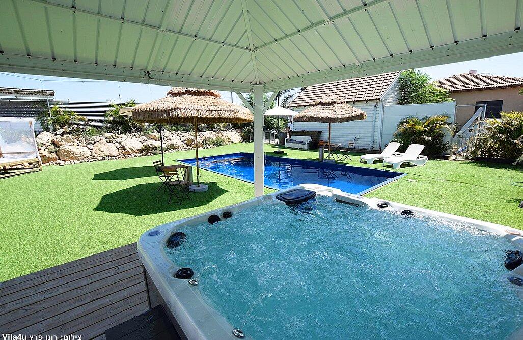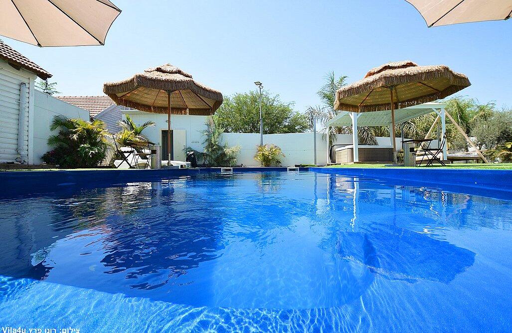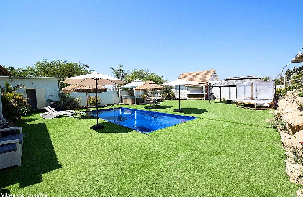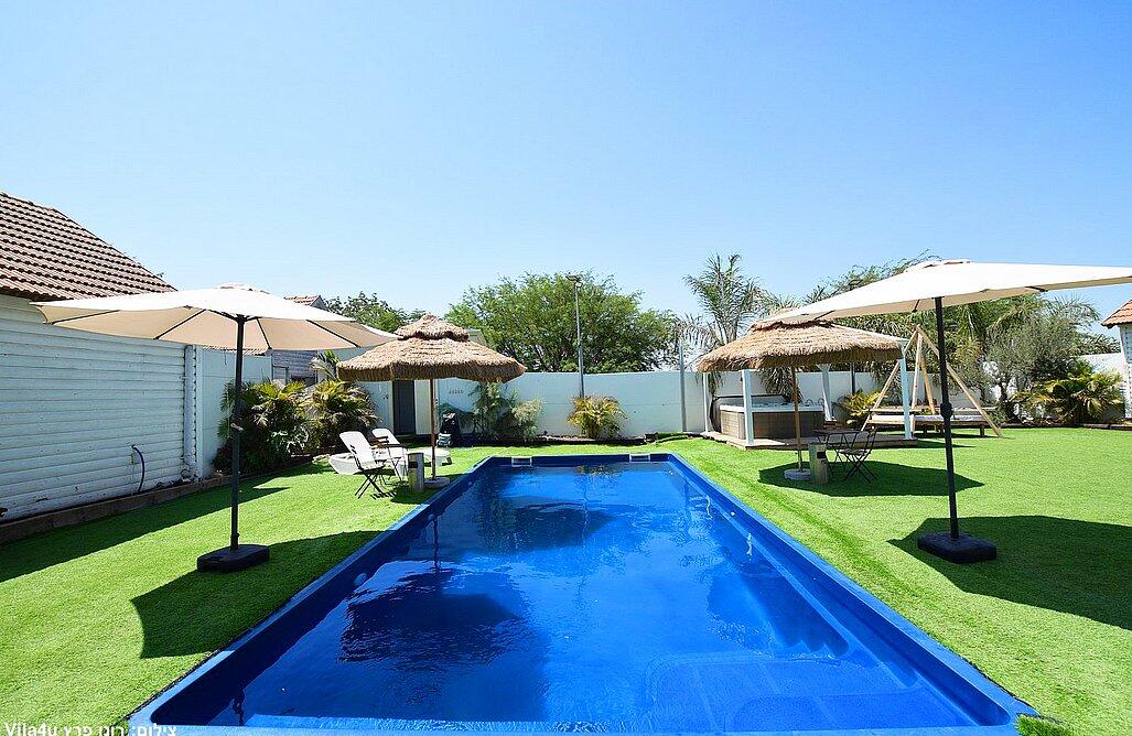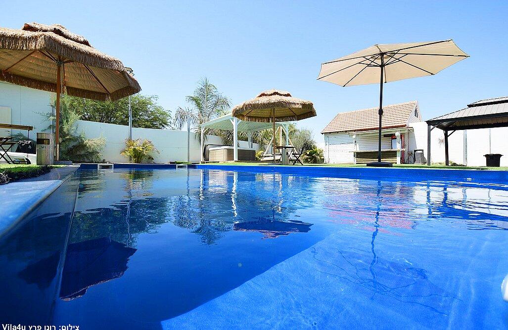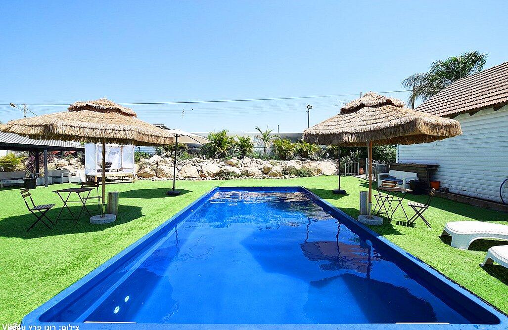 המתחם הגדול כולל 3 חדרי שינה, בריכה מחוממת ומקורה, סלון מרווח ומטבח מאובזר.