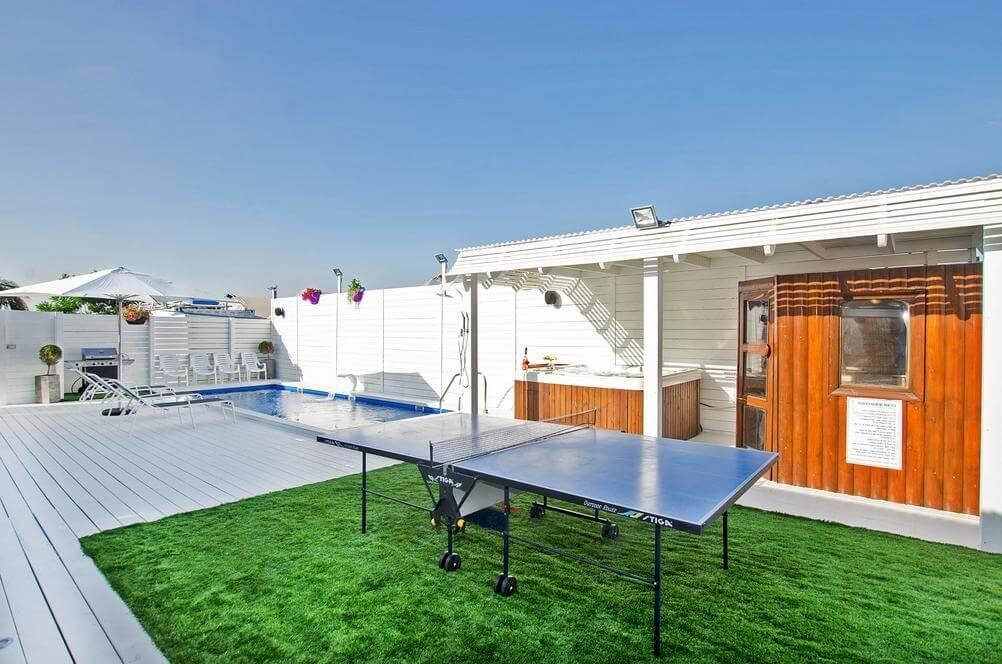 הוילה כוללת 6 חדרי שינה מפנקים, 3 סלונים מעוצבים, מערכת הגברה, קריוקי, מתחם חוץ עם בריכת שחייה, ג'קוזי ספא, סאונה ועוד מבחר אטרקציות שוות!