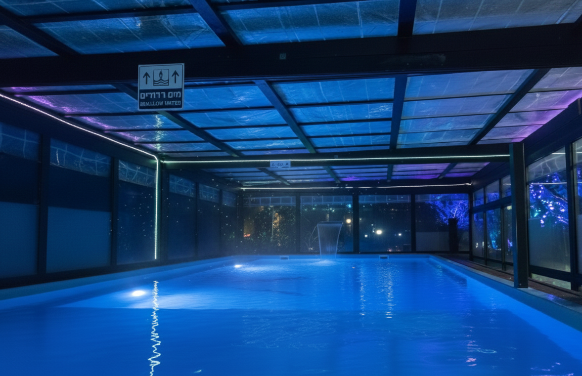 9 חדרי שינה, בריכה פרטית מחוממת מקורה עם ג'קוזי, מטבח ענק עם 3 תנורים, 2 מקררים, פינת קפה ועוד.