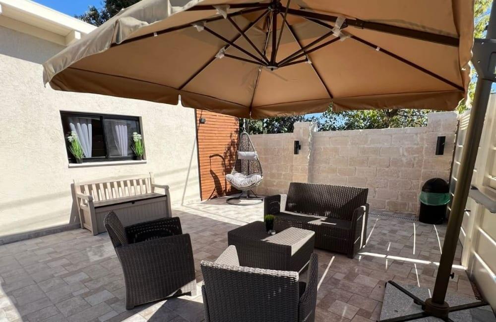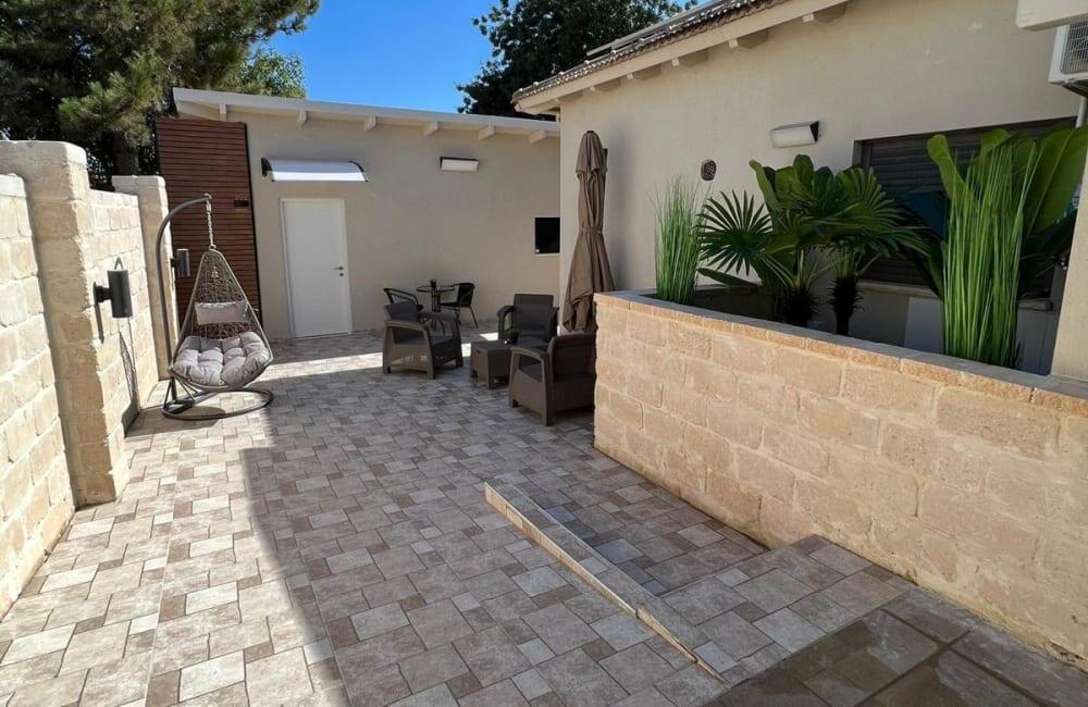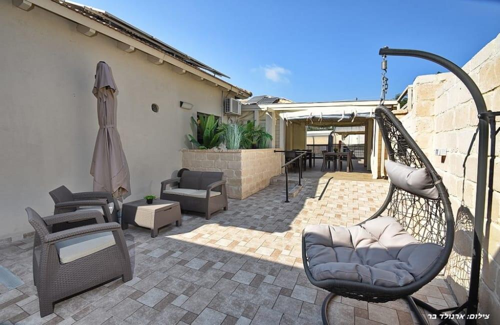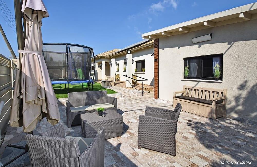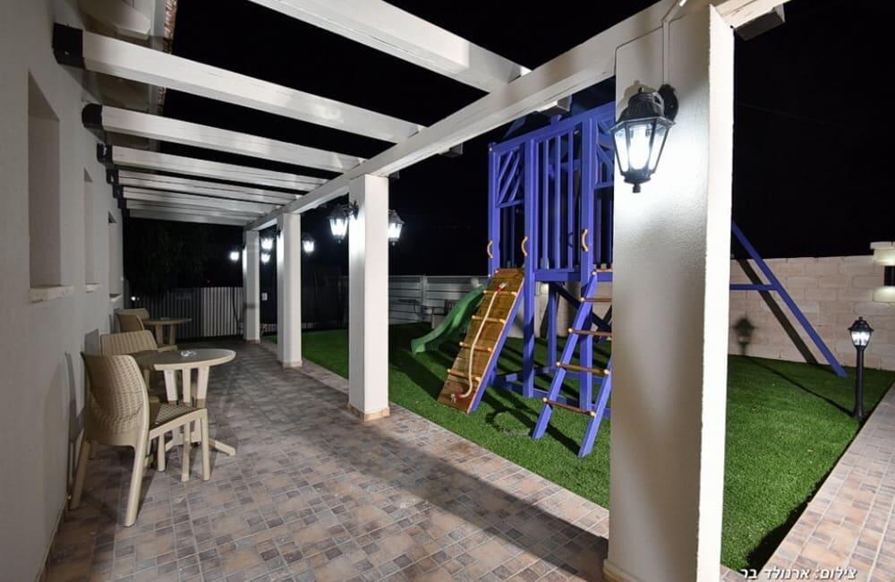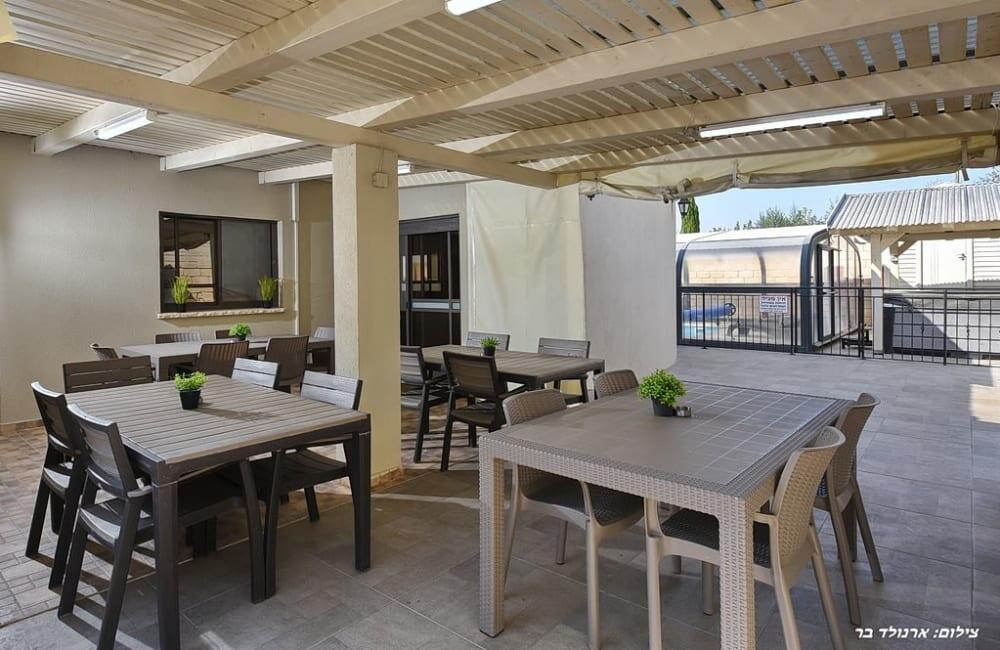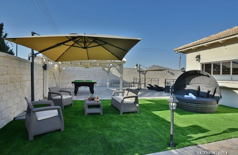 בחצר מחכה לכם בריכת שחייה מחוממת ומגודרת בגודל 8×4 מטר, ג'קוזי ספא ל-7 אורחים, פינות ישיבה, שולחן סנוקר ופינג פונג לילדים ולמבוגרים.