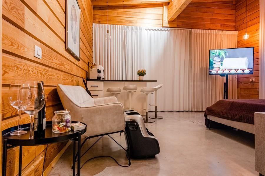 חופשה באננדו היא חוויה של שקט, אהבה והנאה לזוגות בלבד. סוויטה מעוצבת בגודל 50 מ"ר עם מיטה זוגית אורטופדית, ג’קוזי פנימי, סאונה פרטית ומטבח מאובזר בכל הדרוש. במתחם החיצוני מחכה לכם ג’קוזי ספא, פינות ישיבה ושיזוף, ברביקיו איכותי ותאורה קסומה בלילה. במקום ניתן ליהנות מטיפולים ועיסויים, סדנאות זוגיות ואירוח מותאם אישית לאירועים מיוחדים