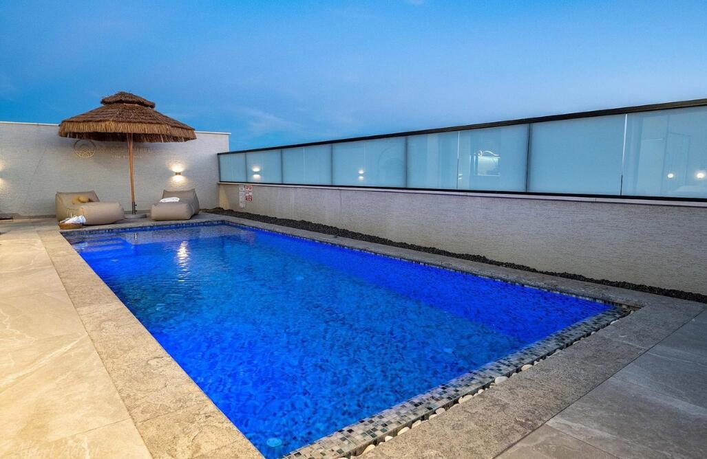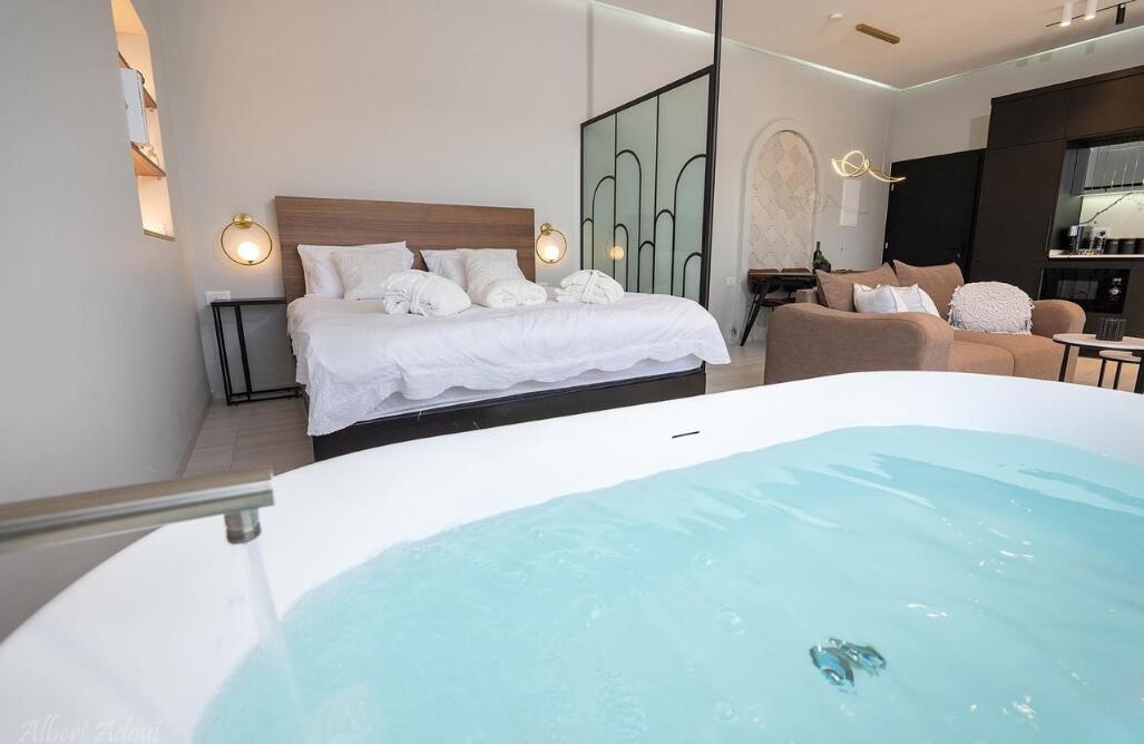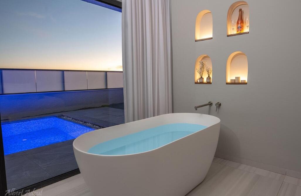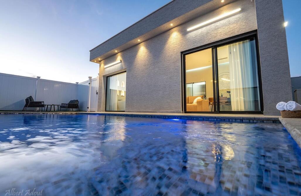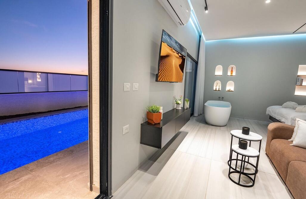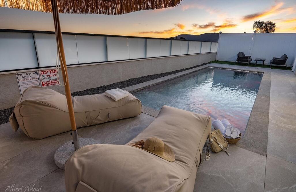 במתחם החיצוני תחכה לכם בריכת שחיה מחוממת מקורה עם ג'טים, שתוכלו להתפנק בה בכל עונה של השנה, ג'קוזי ספא מפנק, פינות ישיבה מפנקות, ונוף עוצר נשימה!