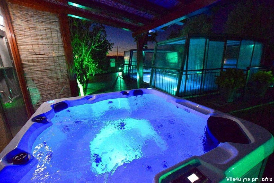 בין האטרקציות שבוילה - חצר ענקית עם בריכת שחייה מחוממת ומקורה, ג'קוזי ספא גדול, שולחן סנוקר, מבחר פינות ישיבה, סלון מעוצב, מטבח מאובזר ו7 חדרי שינה עם ג'קוזי מפנק.