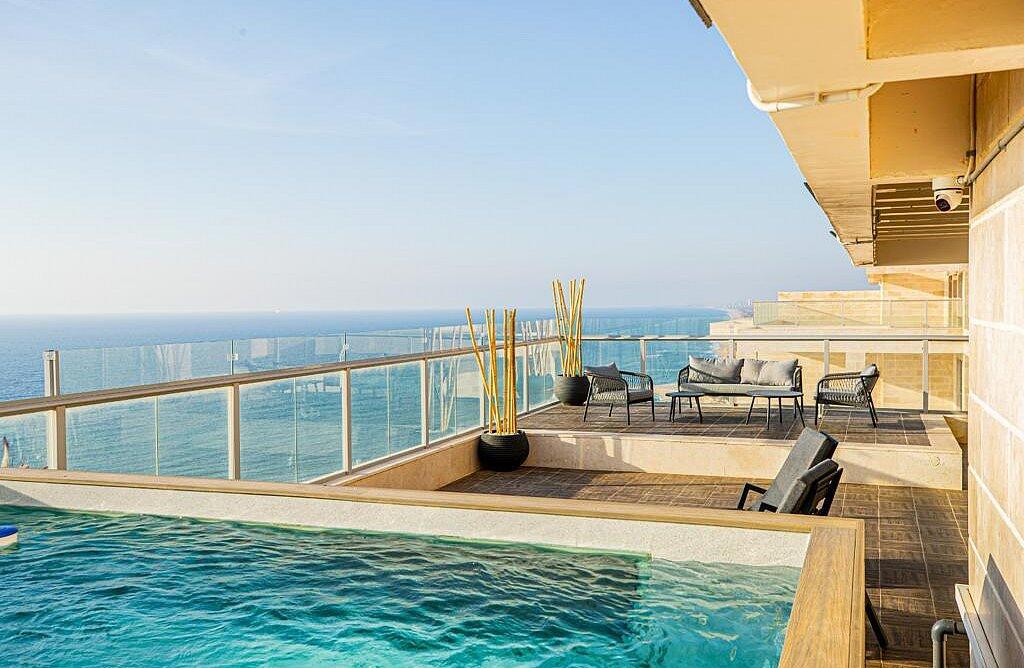 במיקום המבוקש ביותר במרינה אשקלון, בקו ראשון לים, שוכן פנטהאוז יורו מרינה המציע אירוח יוקרתי ומעוצב. המתחם משלב נוחות מודרנית עם נוף פנורמי לים הכחול וקרבה למרכזי הבילוי והמסעדות של האזור. הפנטהאוז מבטיח פרטיות מלאה הכוללת בריכה פרטית הצופה אל האופק, ומהווה פתרון אידיאלי למשפחות המחפשות שקט או לאירועים סולידיים באווירה אקסקלוסיבית. העיצוב המוקפד והאבזור המלא מבטיחים חופשה בסטנדרט הגבוה ביותר. שריינו את האירוע שלכם כעת.