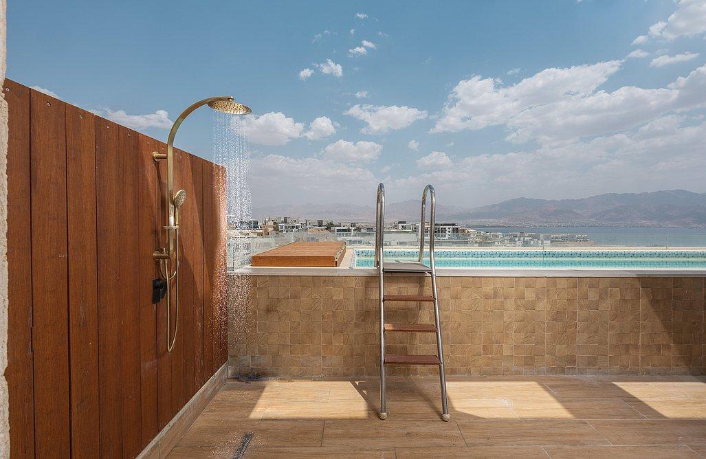 סך הכל המתחם מונה כ 5 חדרי שינה, סלון מעוצב, מטבח מאובזר בכל הנדרש, יציאה למרפסת נוף מהממת הכוללת בריכת שחייה, שולחן וכיסאות בר, עמדת מנגל מקצועית ועוד מגוון של פינוקים!