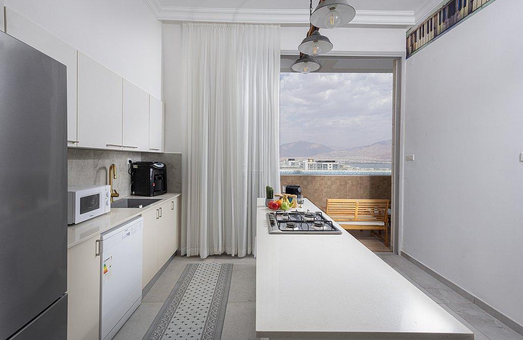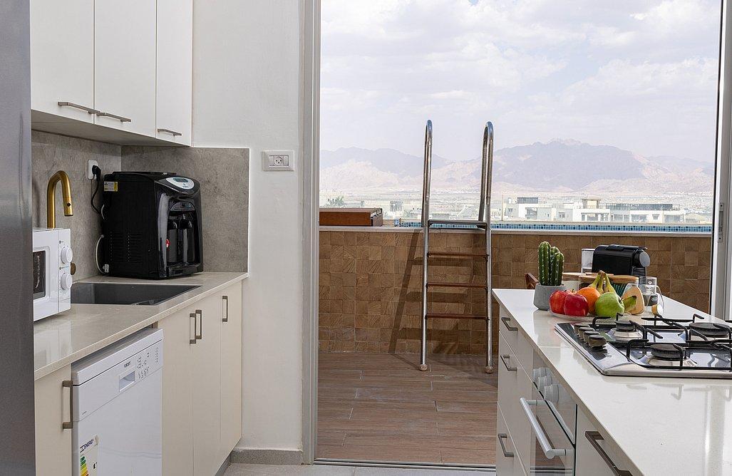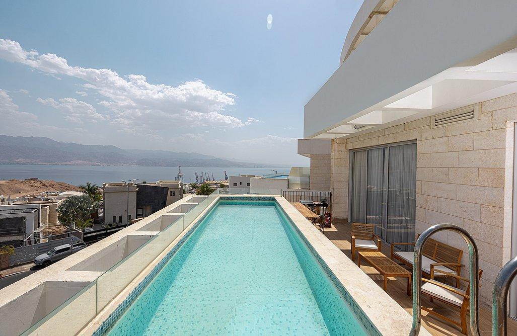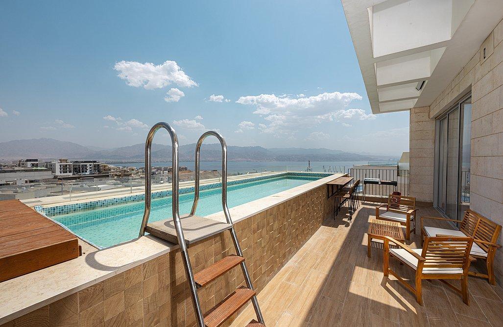 בעיר אילת, מול נוף משגע אל הים, תמצאו פנטהאוז הכולל 4 חדרי שינה אשר אחד מהם הוא חדר מאסטר עם יציאה למרפסת, ובנוסף ישנה יחידת דיור צמודה המכילה חדר שינה נוסף, מטבחון וספה נפתחת.