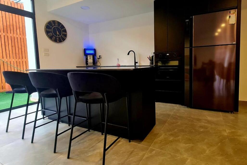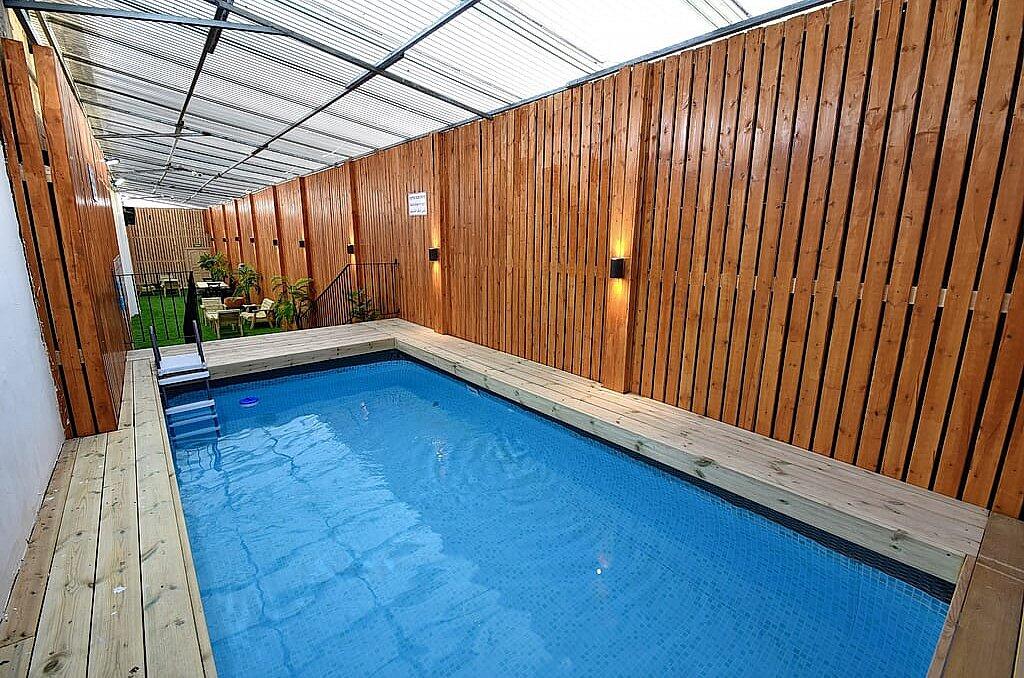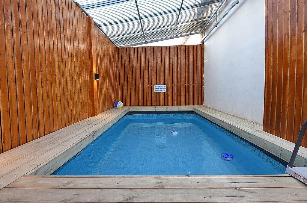 המתחם כולל חצר מקורה עם בריכת שחייה מחוממת, מערכת הגברה, עמדת מנגל, סלון מרווח, מטבח מאובזר ו5 חדרי שינה עם חדרי רחצה פרטיים.