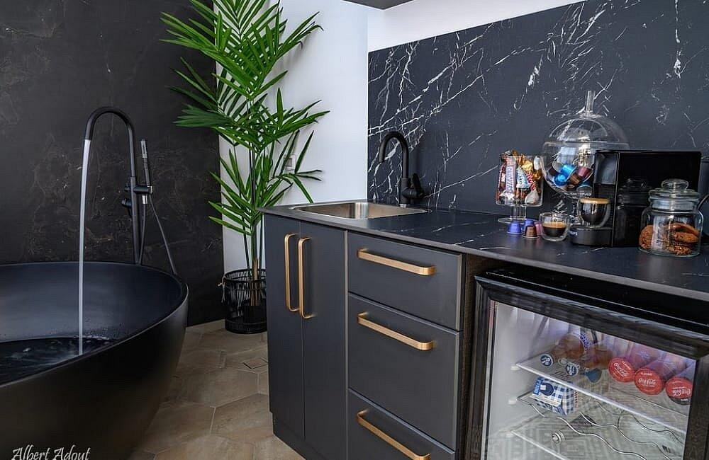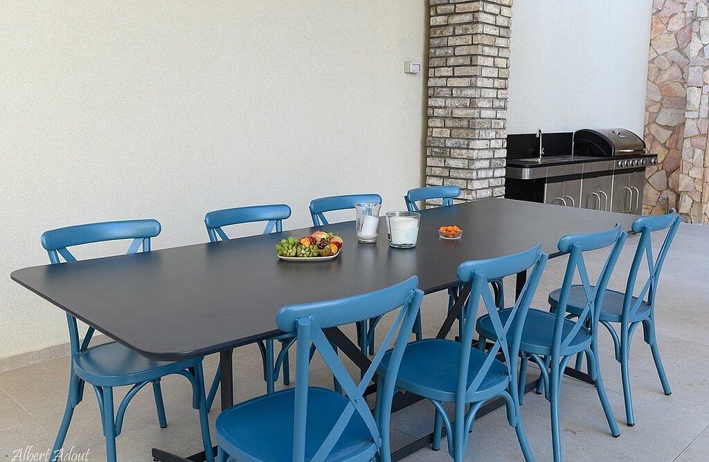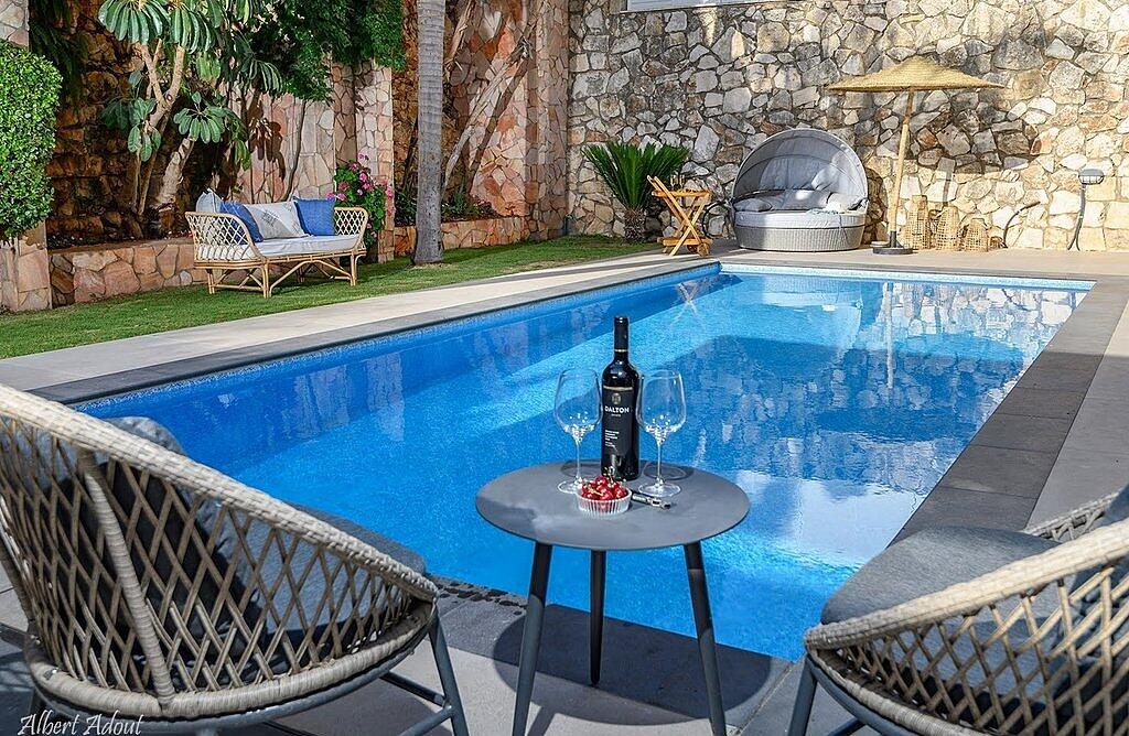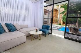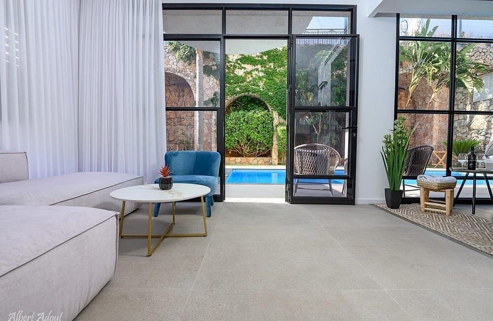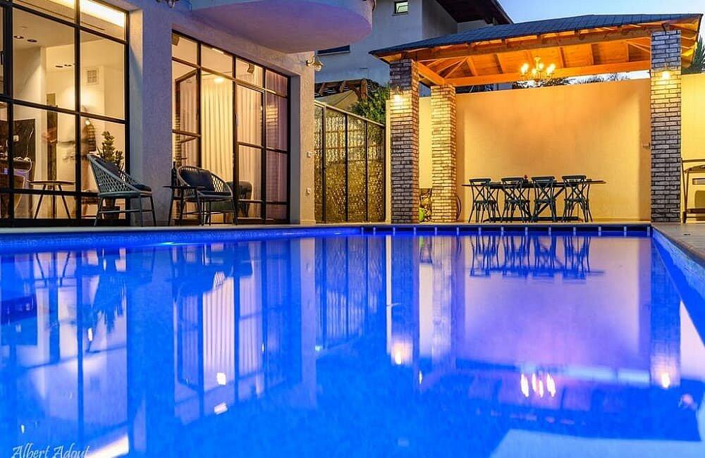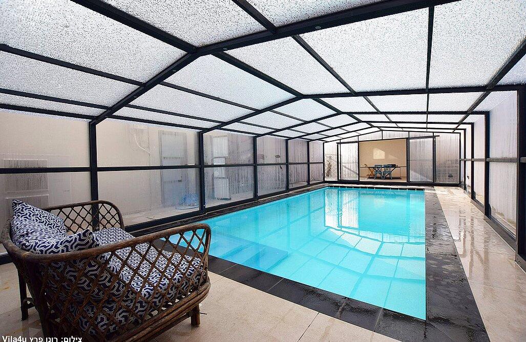 החצר המעוצבת והמטופחת כוללת את האטרקציה המרכזית – בריכה פרטית, מחוממת ומקורה בהתאם לעונה. אורחי הסוויטה יכולים להתחיל את היום בשחייה מרעננת ולסיים אותו ברחצה לילית בבריכה, עם תאורה קסומה. לצד הבריכה תמצאו פינות ישיבה נוחות, שולחן גינה, מטבח מאובזר ועמדת ברביקיו. דלת זכוכית גדולה מחברת בין הסלון של הסוויטה לבריכה, ומאפשרת לכם ליהנות מחוויית נופש אינטימית ומפנקת.