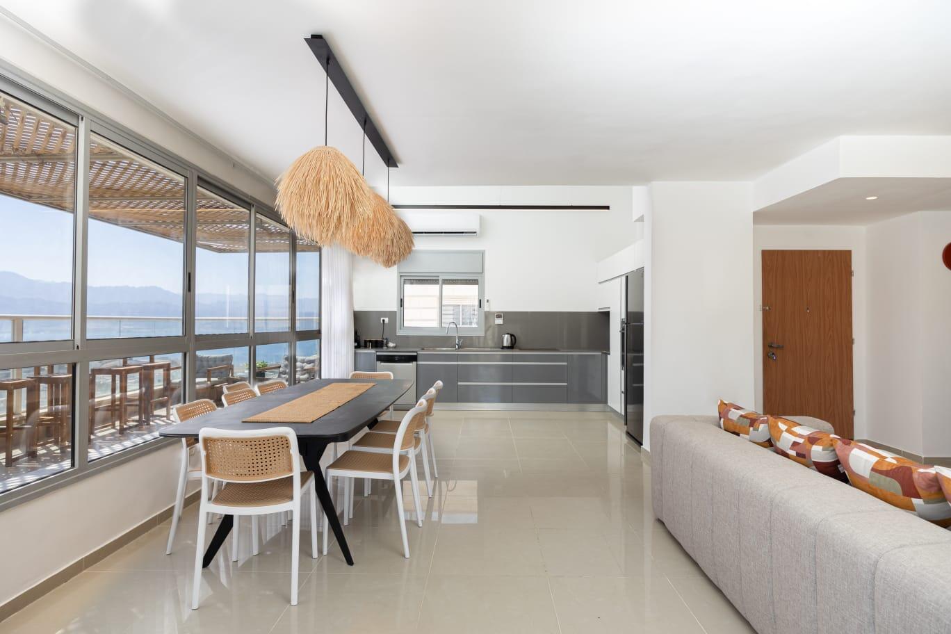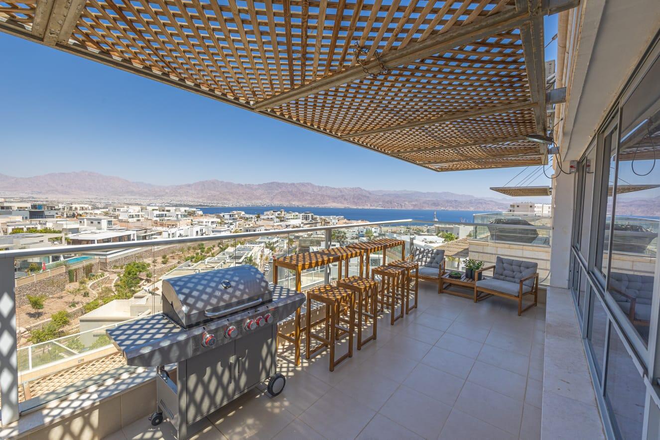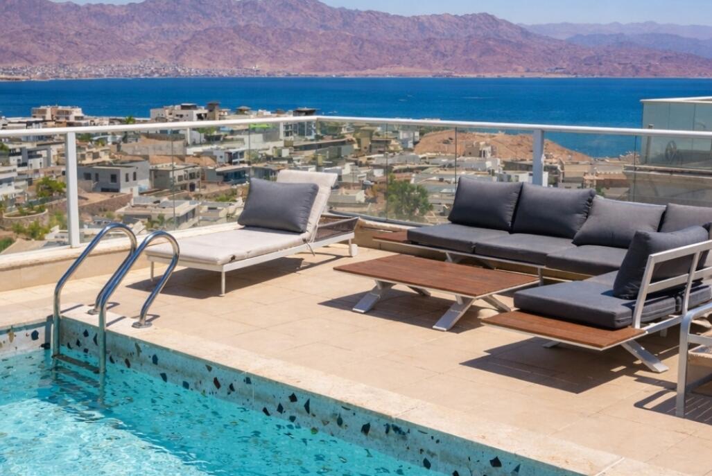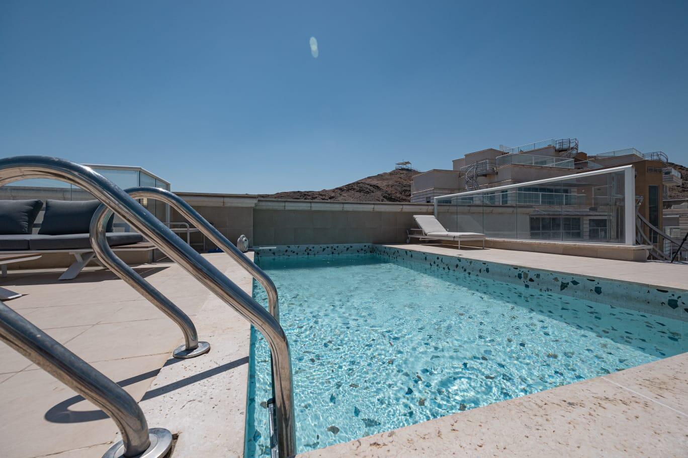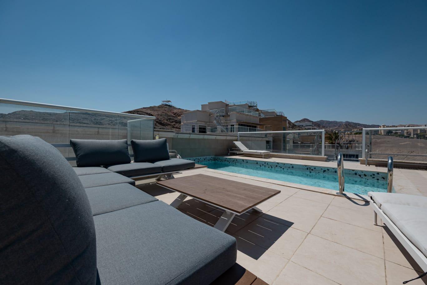אם אתם מחפשים חופשה באילת שמשלבת יוקרה, פרטיות ומיקום מנצח - פנטהאוז לומינה הוא בדיוק המקום בשבילכם. המתחם כולל חמישה חדרי שינה מרווחים, סלון גדול עם מערכת ישיבה מפנקת ומטבח מודרני מאובזר לחלוטין. במרפסת מחכה לכם בריכה פרטית מחוממת לצד פינת ברביקיו ונוף פתוח להרי אילת. תוך דקות תוכלו להגיע לטיילת, לחופי הים, למסעדות ולאטרקציות הפופולריות בעיר.