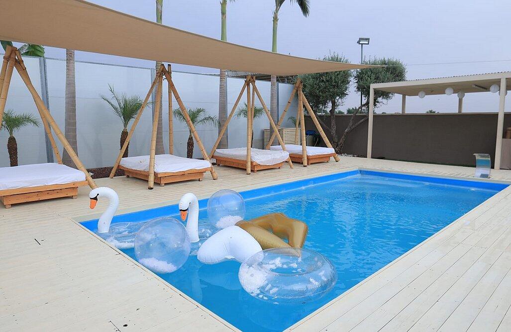 הוילה כוללת 8 חדרי שינה מפנקים ו-6 חדרי רחצה, מתחם חוץ עם בריכת שחייה ו-2 שירותים, ג'קוזי ספא, שולחן פינג פונג, פינות ישיבה ועוד. בנוסף, הוילה מאובזרת במטבח וסלון מרווח.