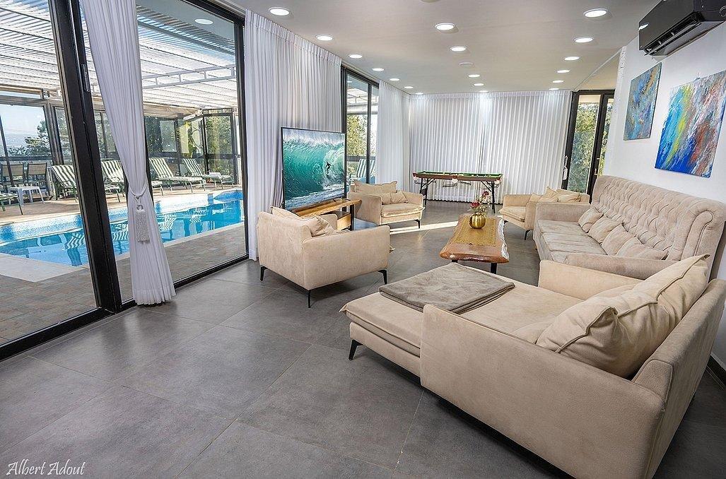 במתחם תוכלו ליהנות עד 25 איש מבריכת שחייה, משחקי שולחן, 6 חדרי שינה זוגיים, חדר ילדים, עמדת מנגל, טאבון ועוד.