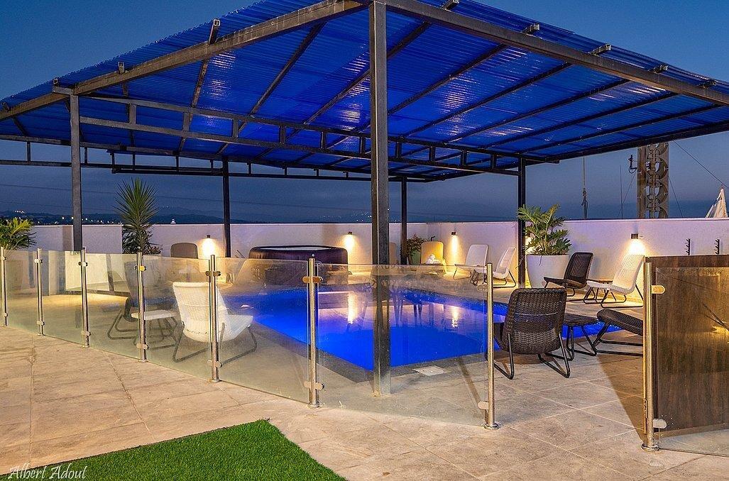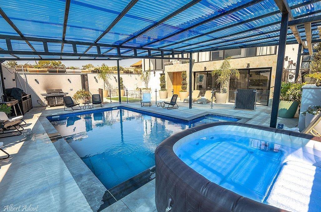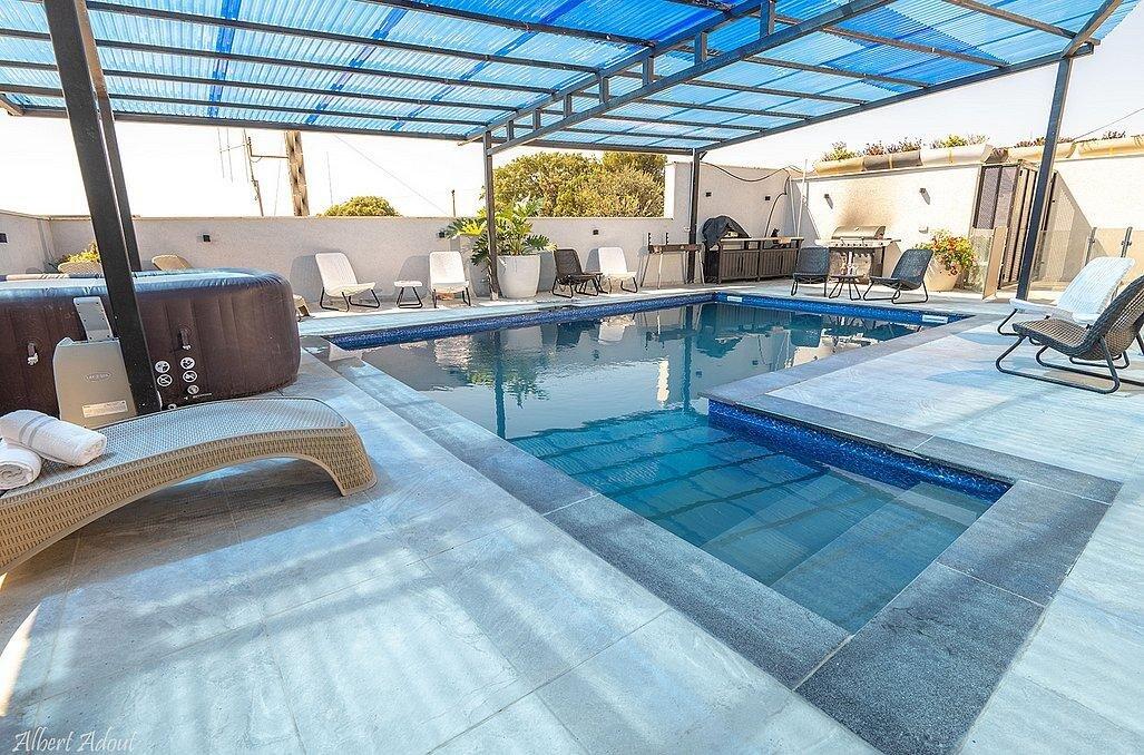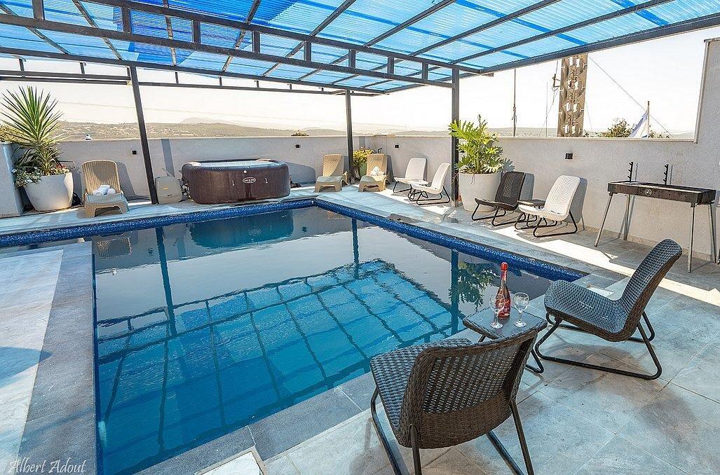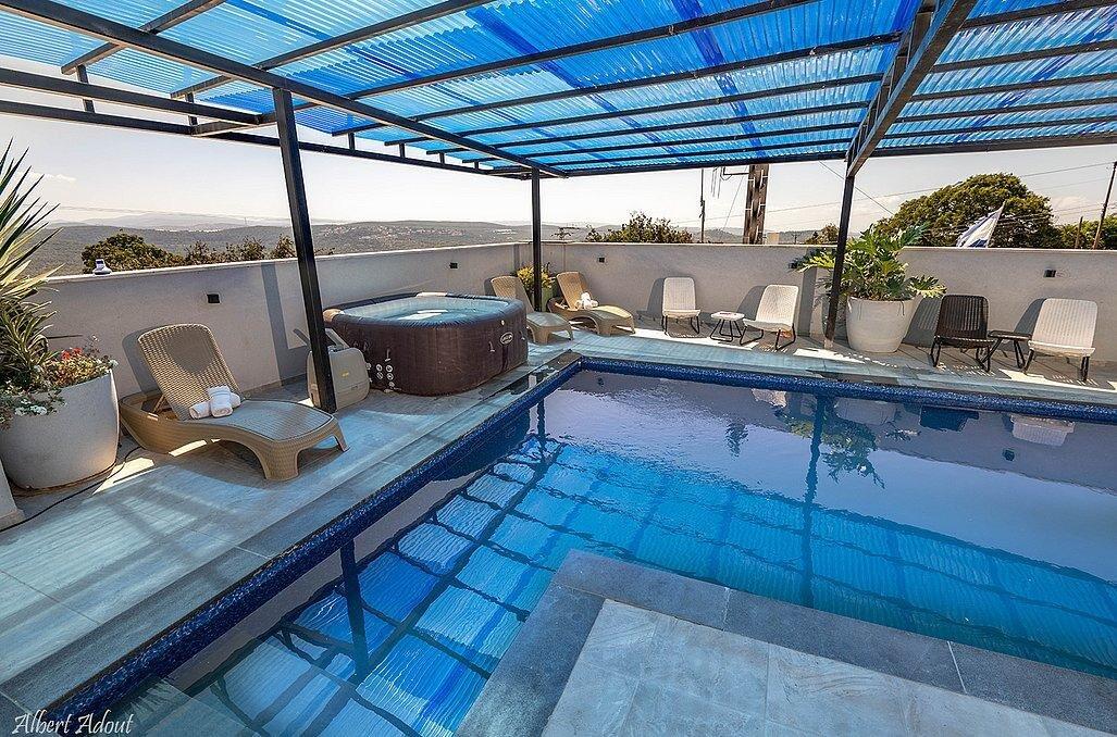 במתחם תוכלו למצוא 9 חדרי שינה מפנקים עם חדרי רחצה פרטיים, מבחר מתחמים משותפים - חצר גדולה עם בריכת שחייה מקורה ומחוממת, ג'קוזי, עמדת מנגל, סלון מעוצב, מטבח מאובזר ועוד.