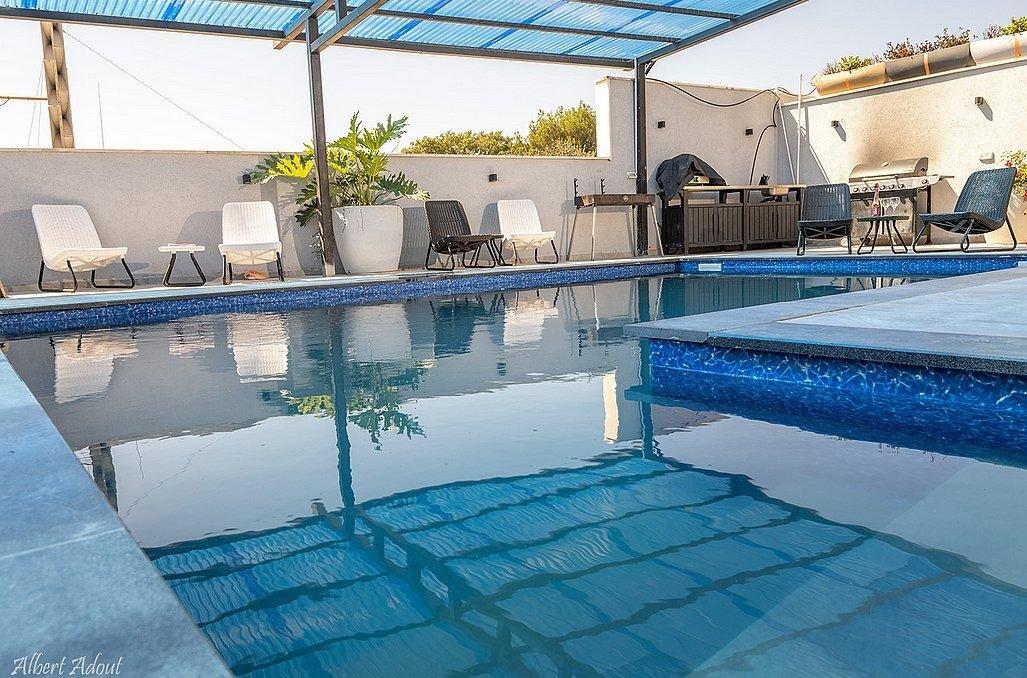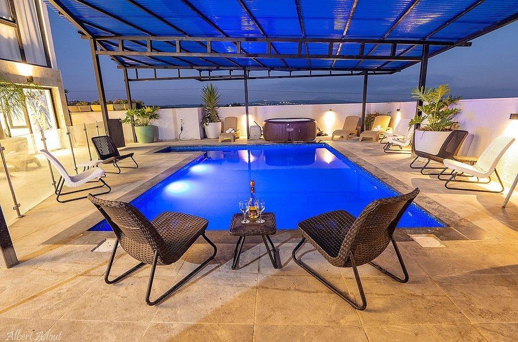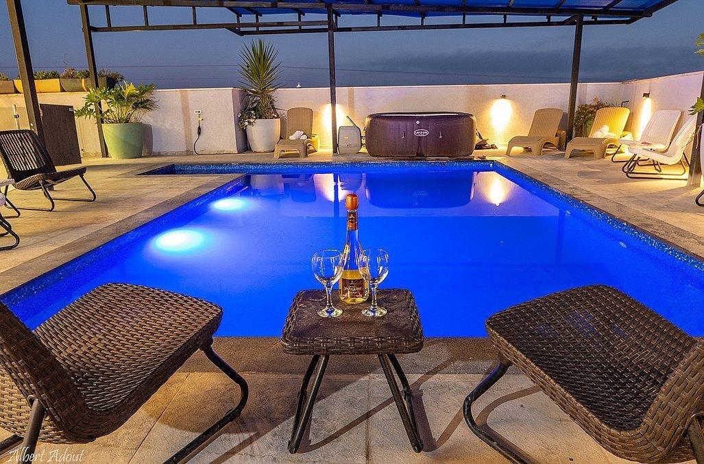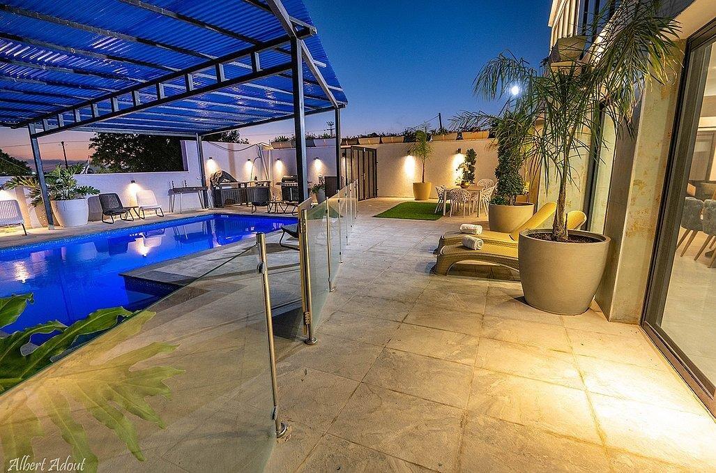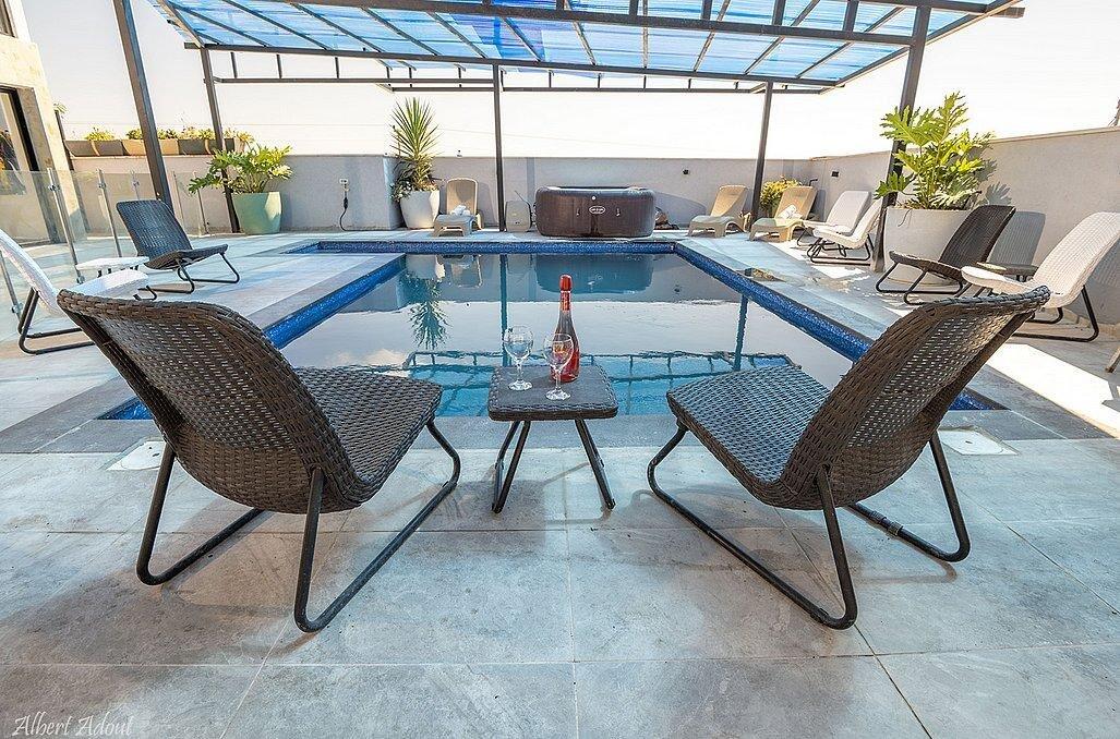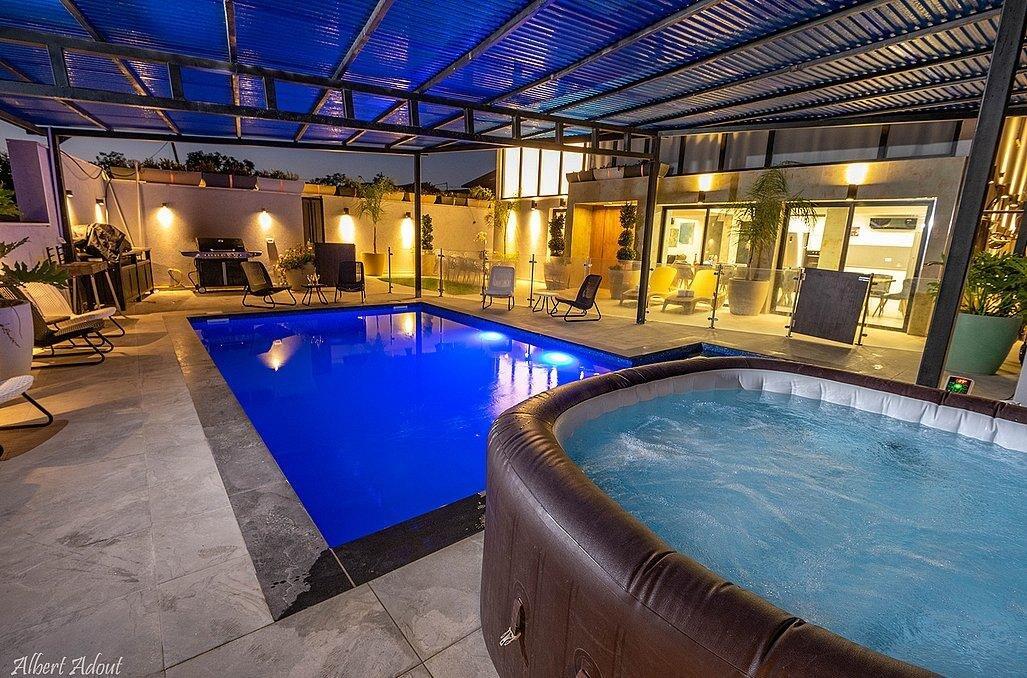 במתחם תוכלו למצוא 9 חדרי שינה מפנקים עם חדרי רחצה פרטיים, מבחר מתחמים משותפים - חצר גדולה עם בריכת שחייה מקורה ומחוממת, ג'קוזי, עמדת מנגל, סלון מעוצב, מטבח מאובזר ועוד.