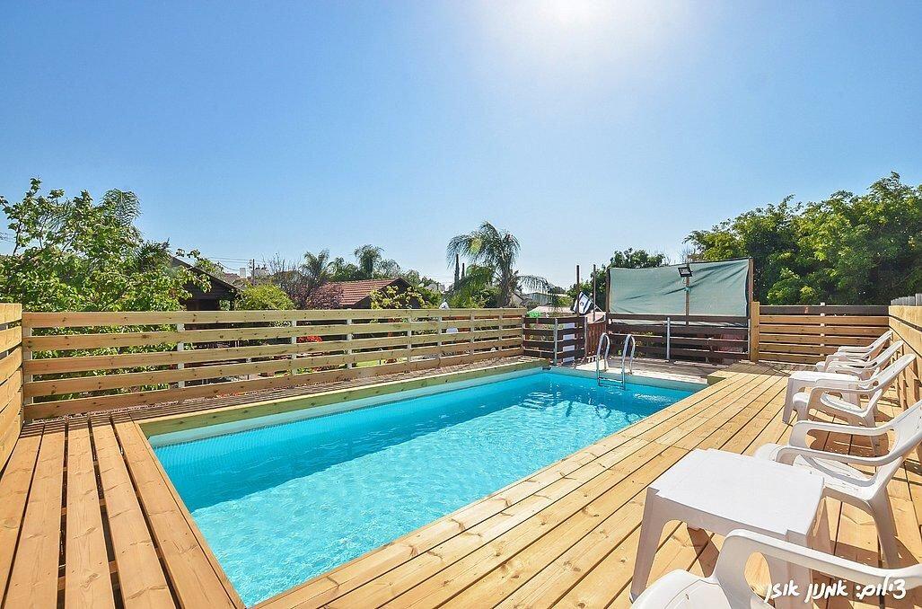 במתחם החוץ תוכלו ליהנות מבריכת שחייה מהנה ומחוממת, משחקי שולחן ומשחקים לילדים.