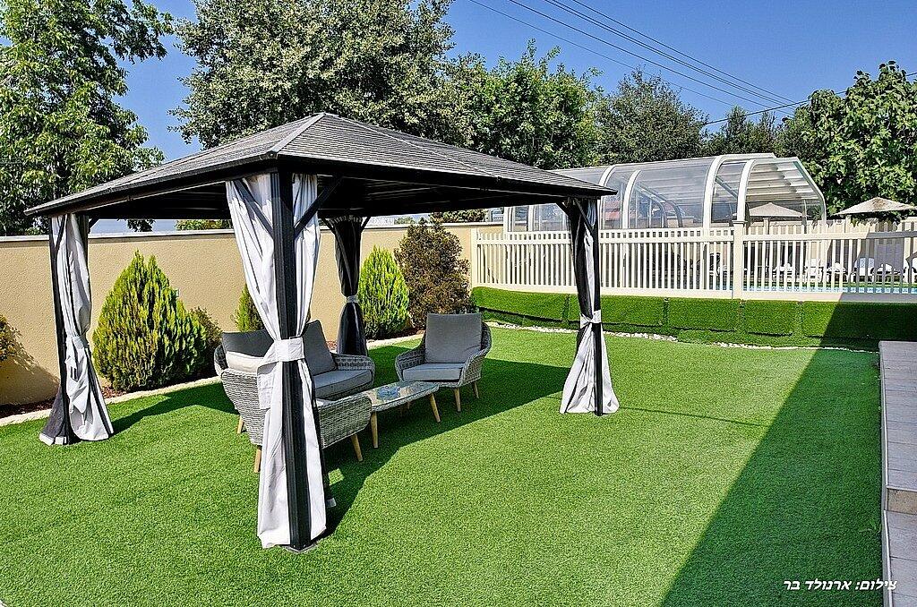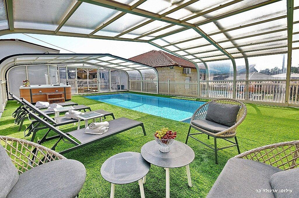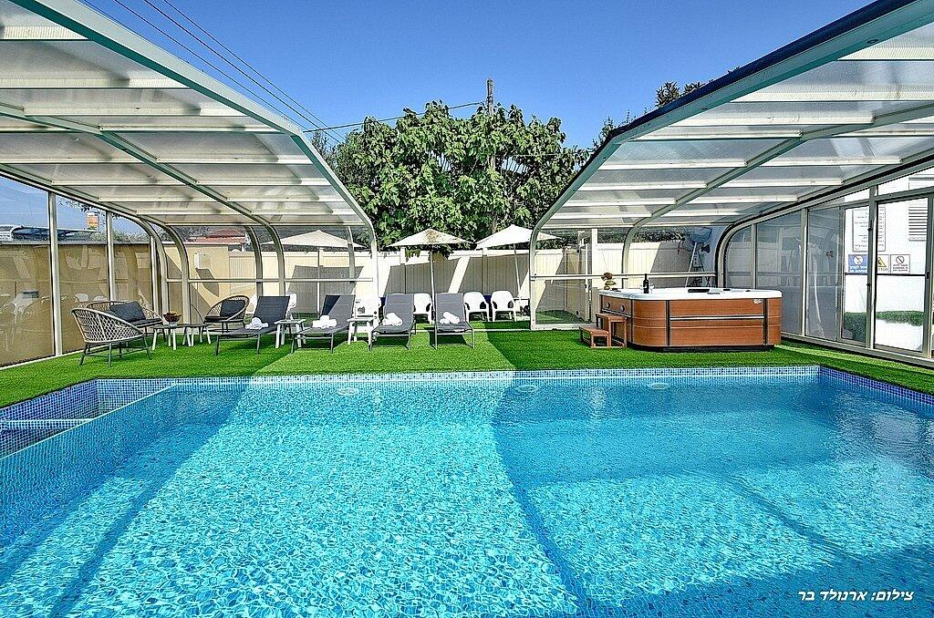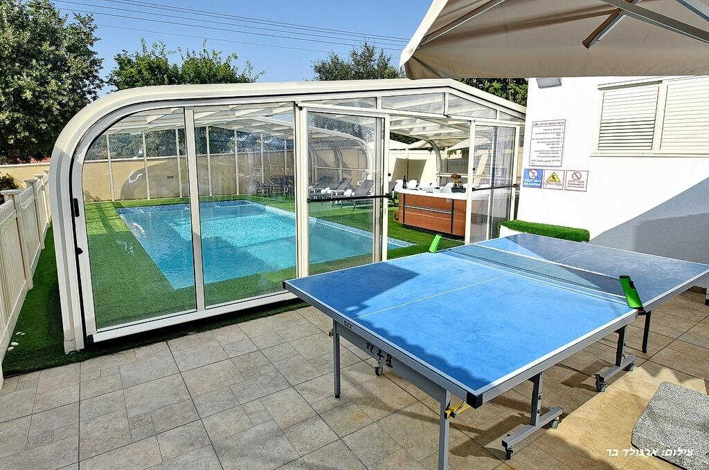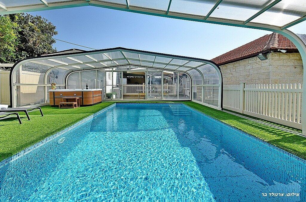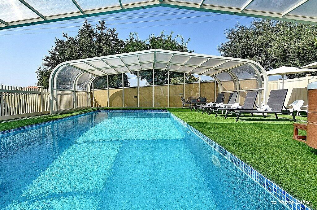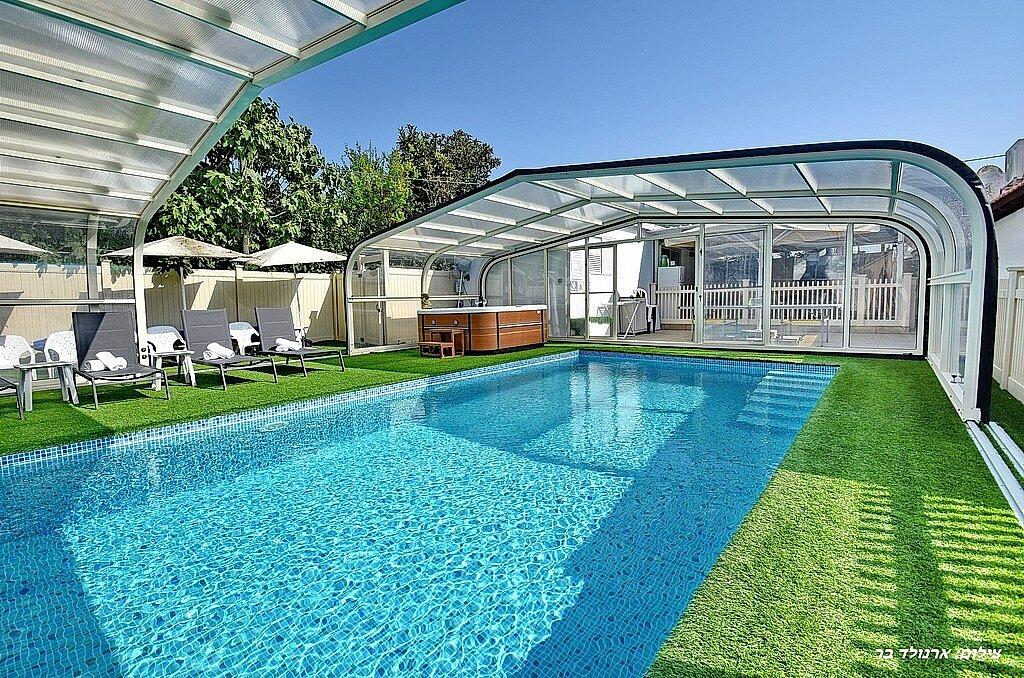 הוילה מאובזרת ומעוצבת ברמה הכי גבוהה - בריכת שחייה צלולה עם קירוי נפתח ונסגר, ג׳קוזי ספא מפנק, 5 חדרי שינה מרווחים, סלון גדול ומטבח מאובזר קומפלט.