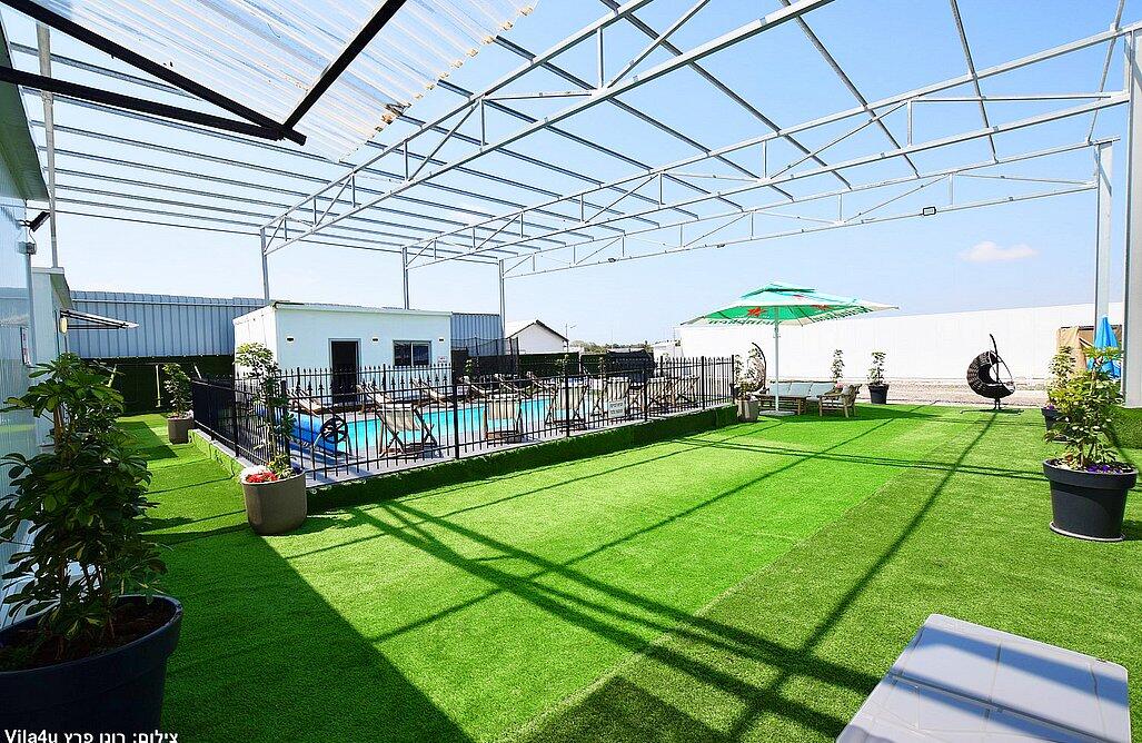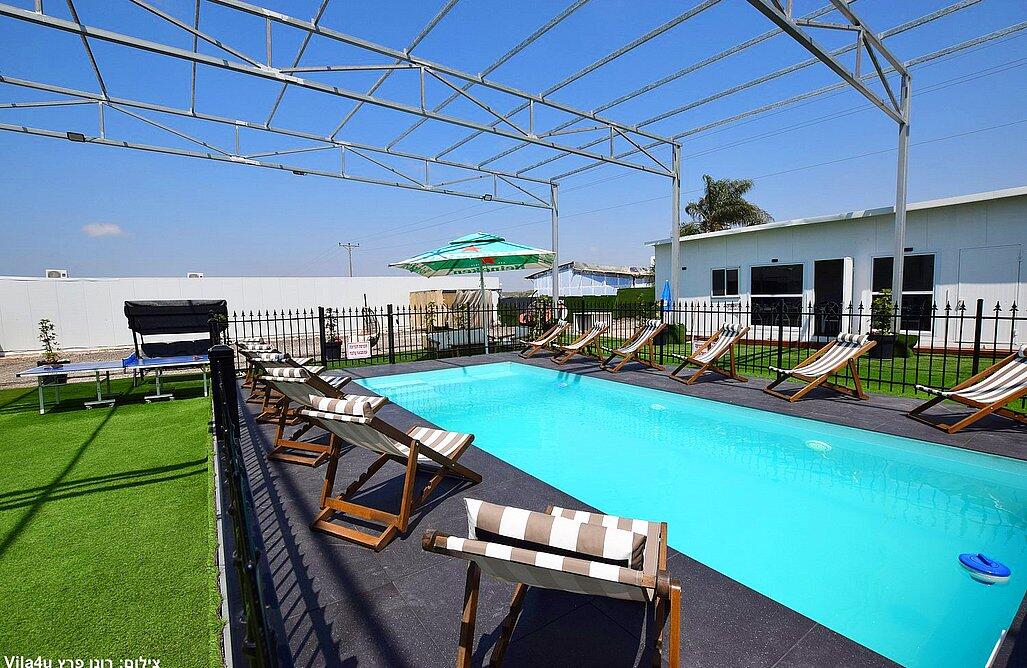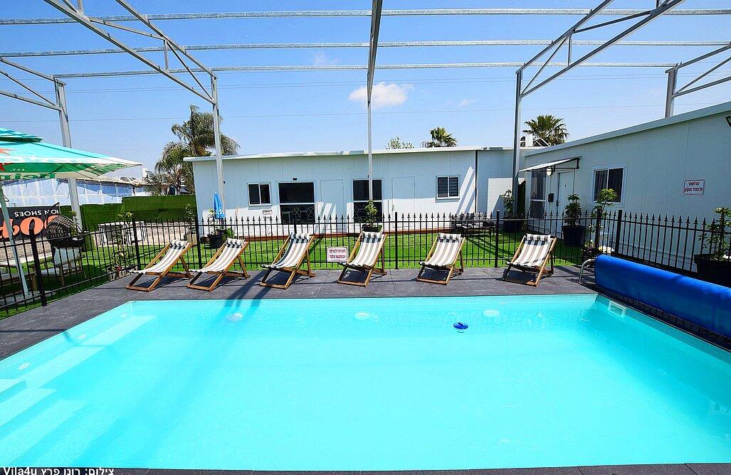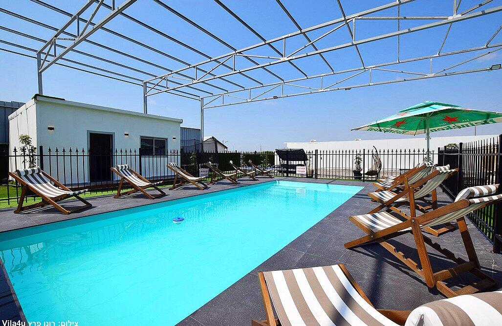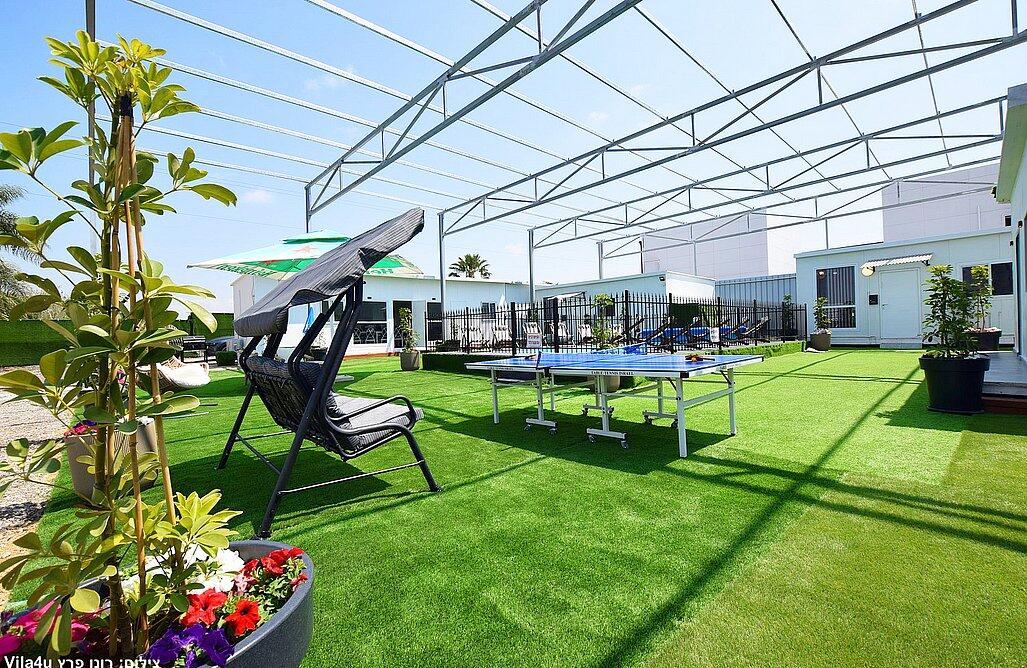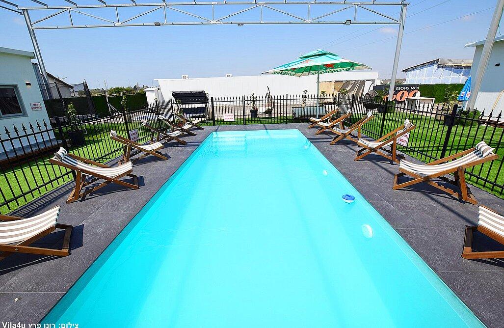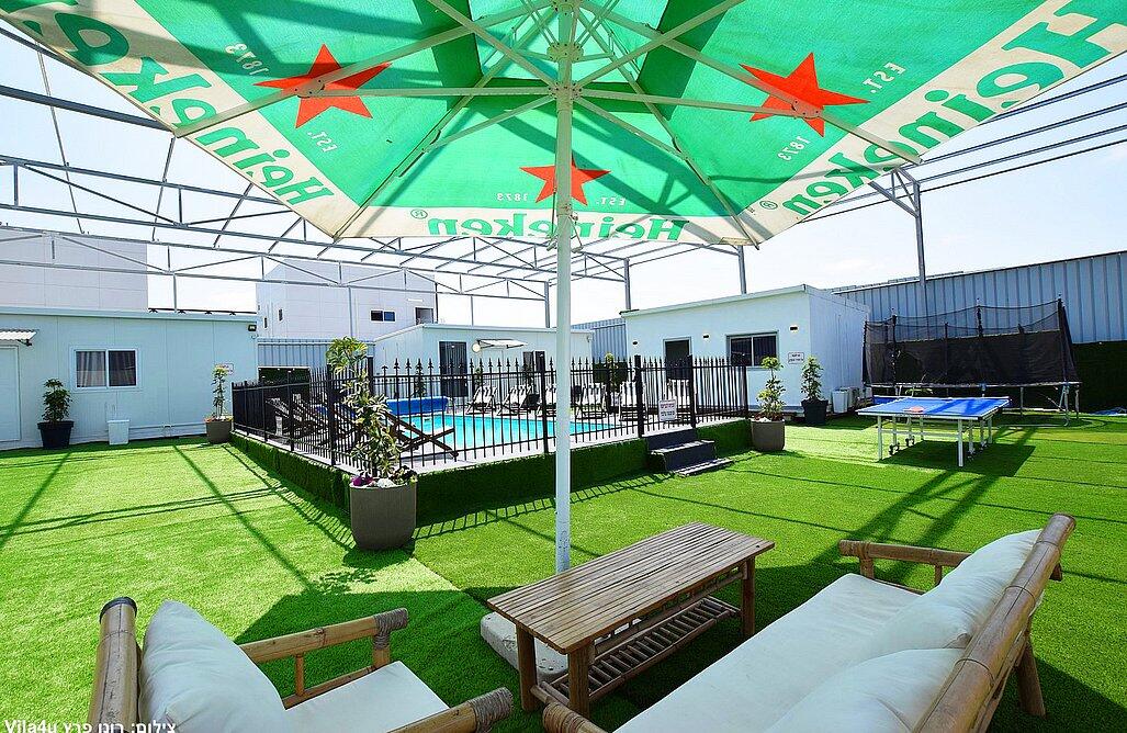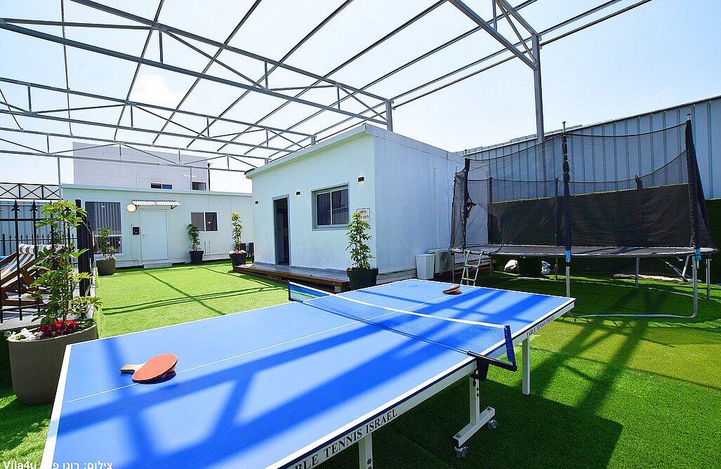 במתחם החיצוני תהנו מבריכת שחייה גדולה, מיטות שיזוף, שולחן פינג פונג, טרמפולינה לילדים, פינת מנגל ועוד מגוון פינוקים!
