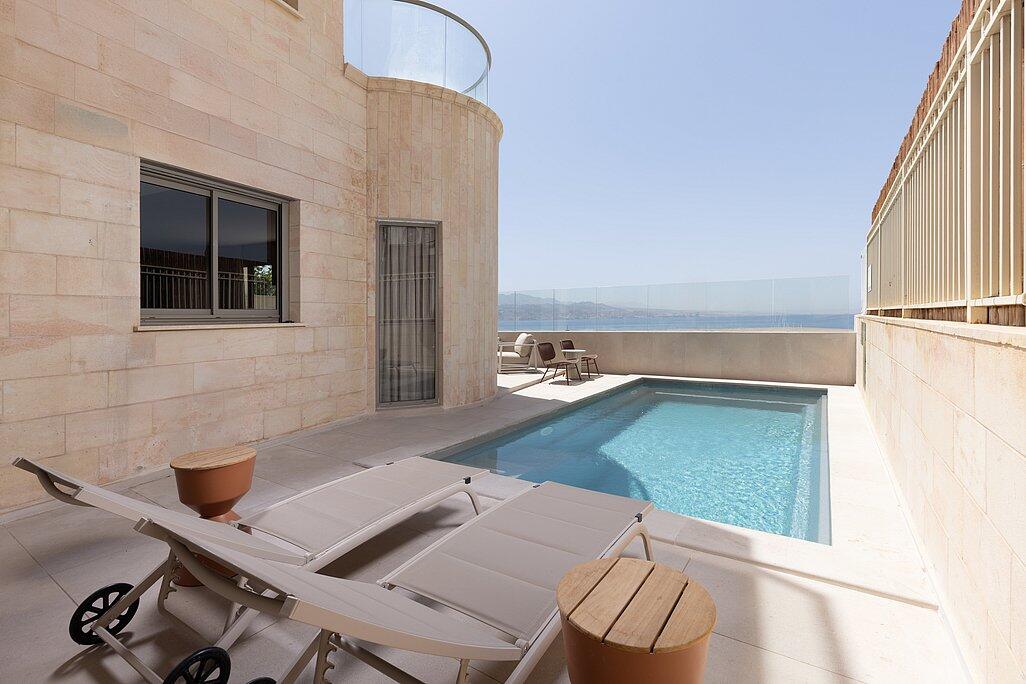 מתחם מפנק המיועד למשפחות ולקבוצות, הכולל 4 חדרי שינה נעימים, מיטות זוגיות עם מזרנים איכותיים, סלון מעוצב עם ספה נפתחת, מיזוג מרכזי, טלוויזיה עם חבילת ערוצים מגוונת וארונות בגדים. בחצר תיהנו מבריכה מחוממת, מיטות שיזוף, ריהוט גן מוקפד, פינת ישיבה מרהיבה מול הנוף ועמדת מנגל מקצועית – חוויה מושלמת לבילוי משפחתי.