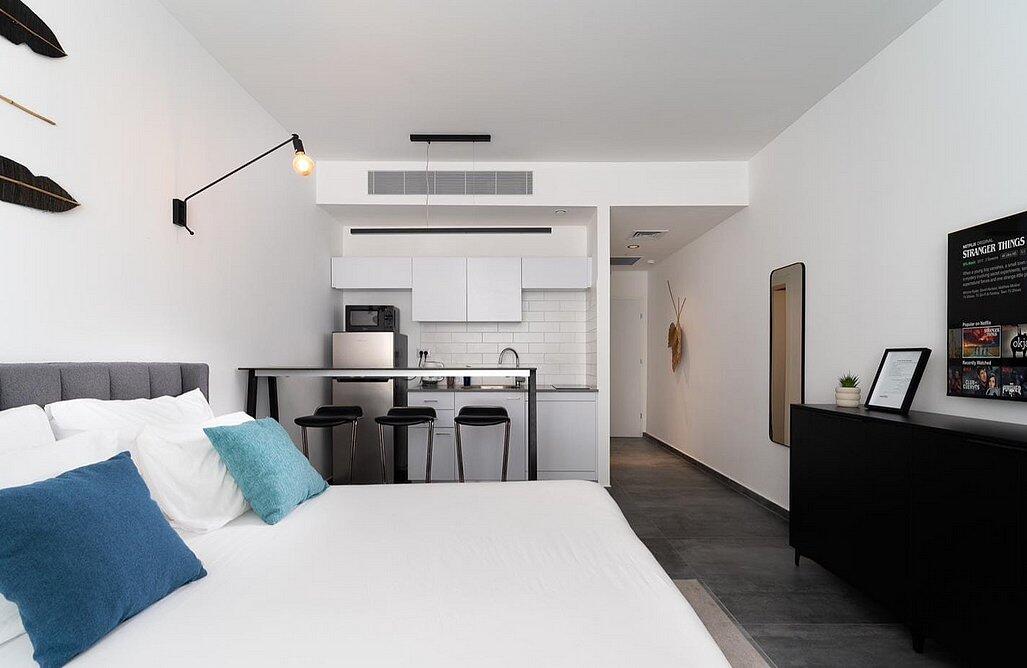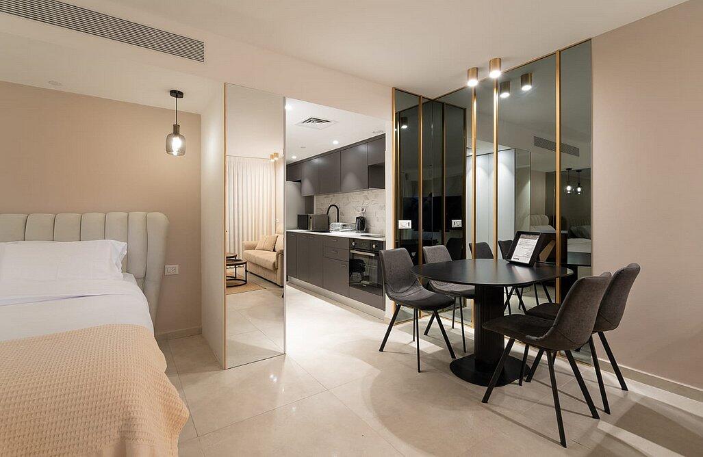 הסוויטות מאובזרות במלואן, כולל חדר שינה מפנק, מטבחון, חדר רחצה פרטי, לובי מרכזי מרווח וממוזג.