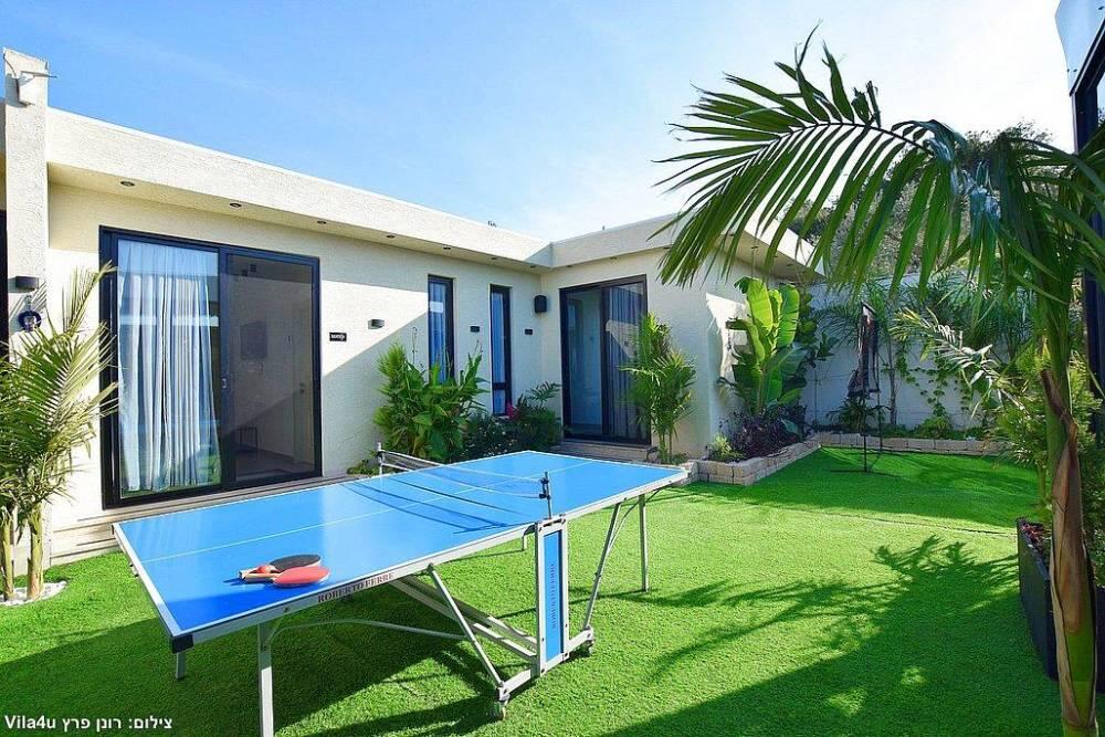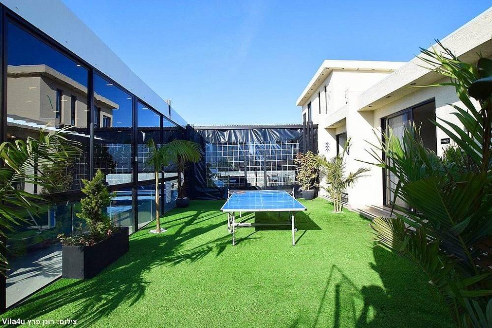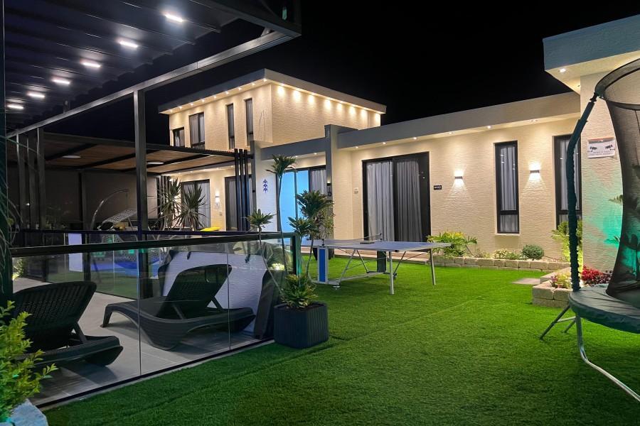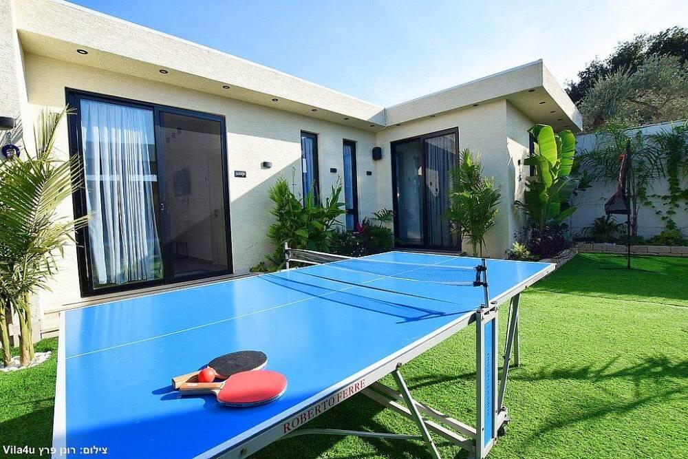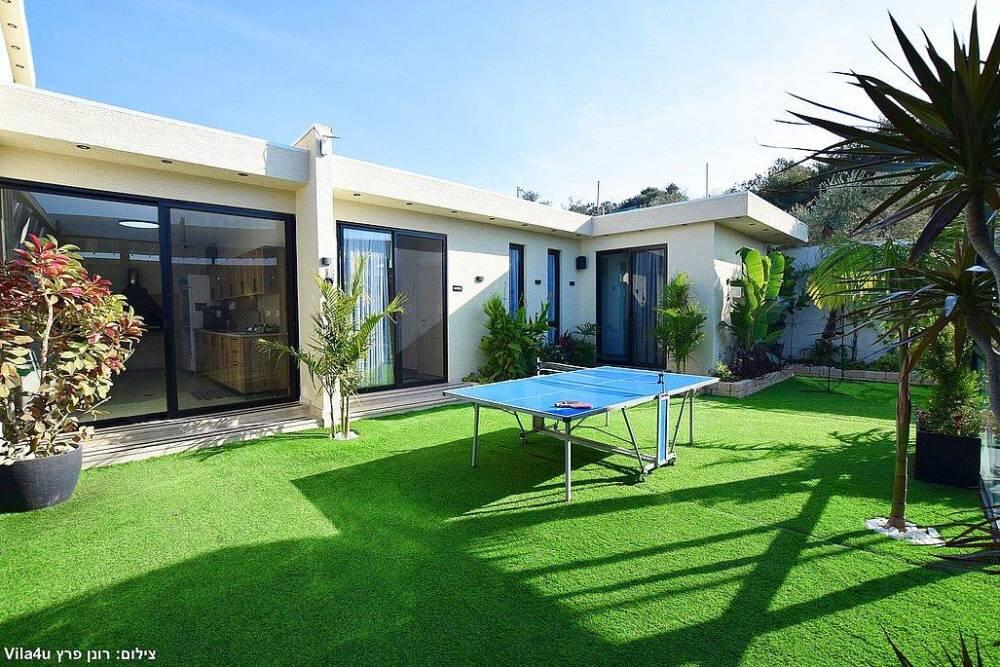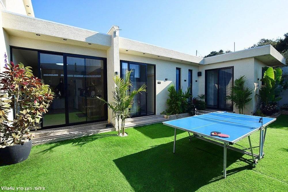 המתחם כולל חצר גדולה עם משחקים, פינת ברביקיו, סלון חיצוני ומטבח מאובזר לאירוח מושלם בכל עונות השנה.