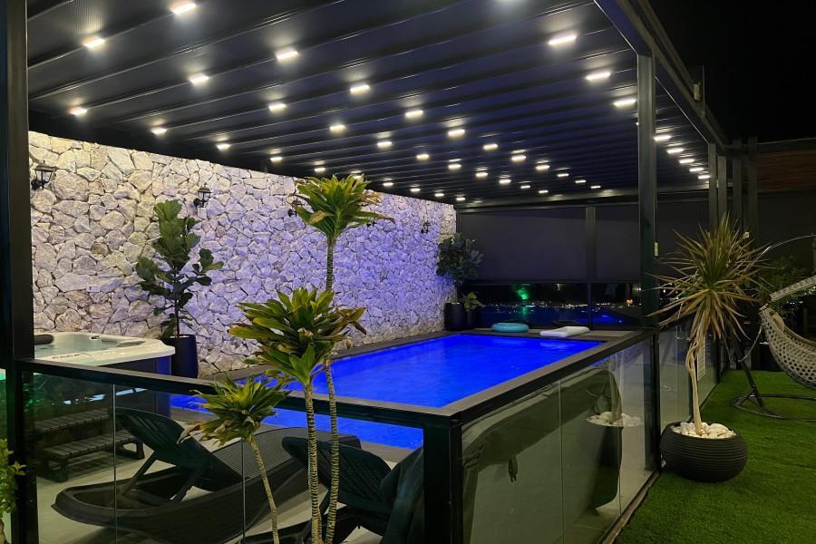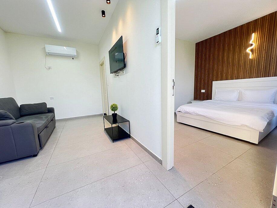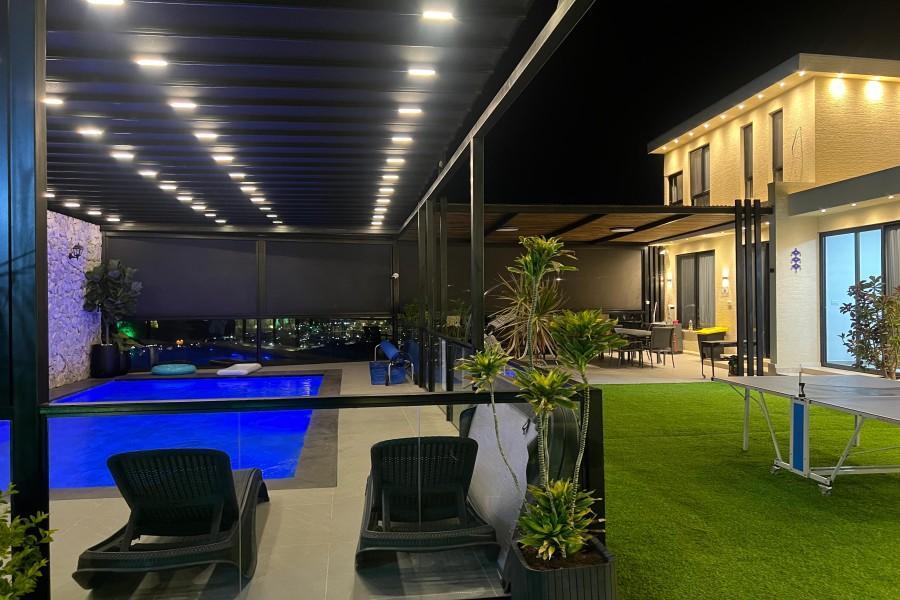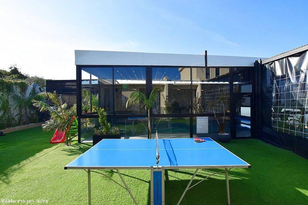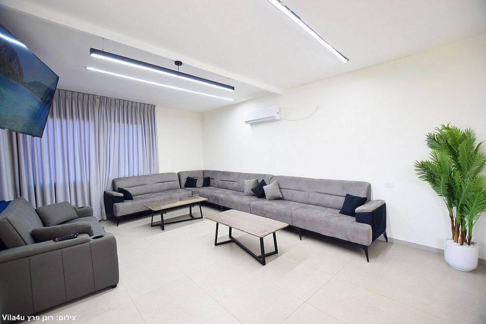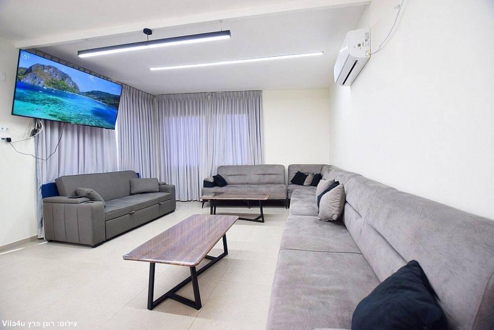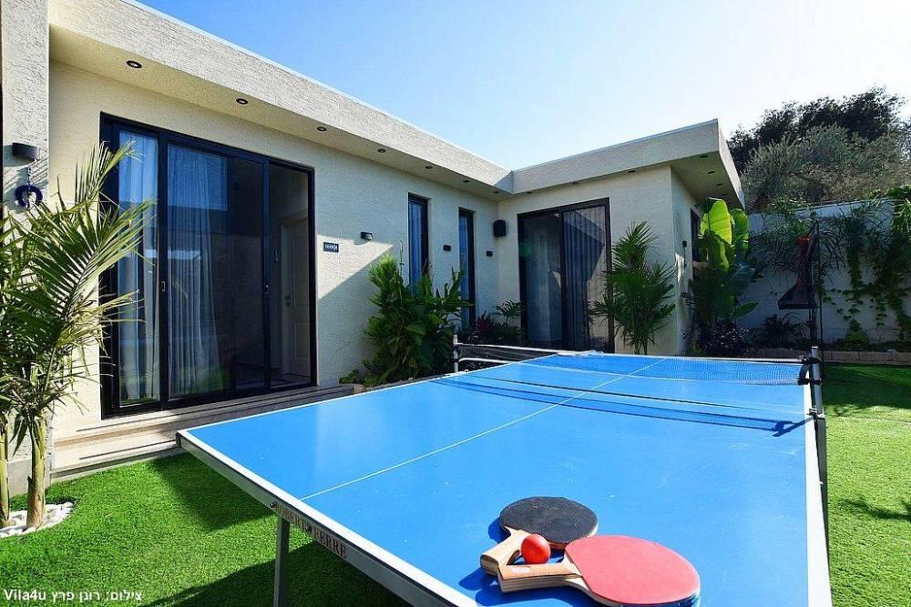 המתחם כולל חצר גדולה עם משחקים, פינת ברביקיו, סלון חיצוני ומטבח מאובזר לאירוח מושלם בכל עונות השנה.