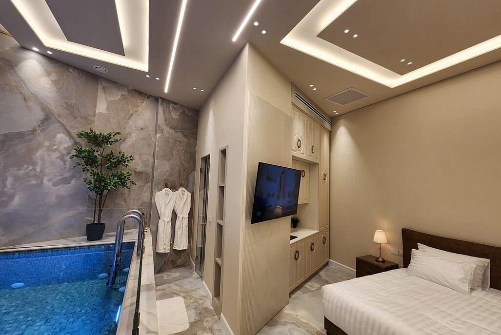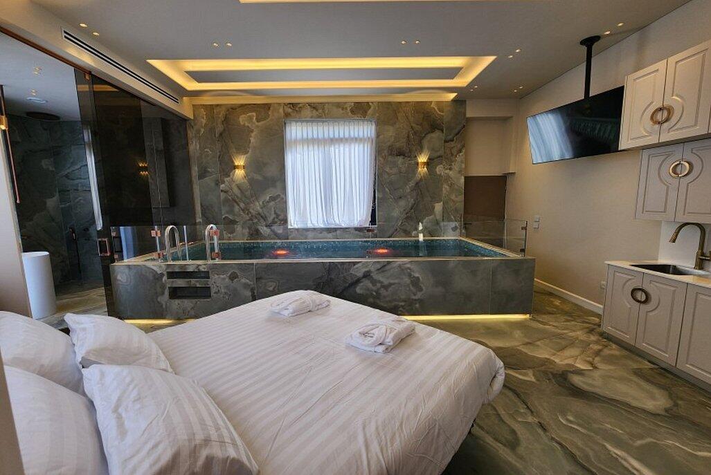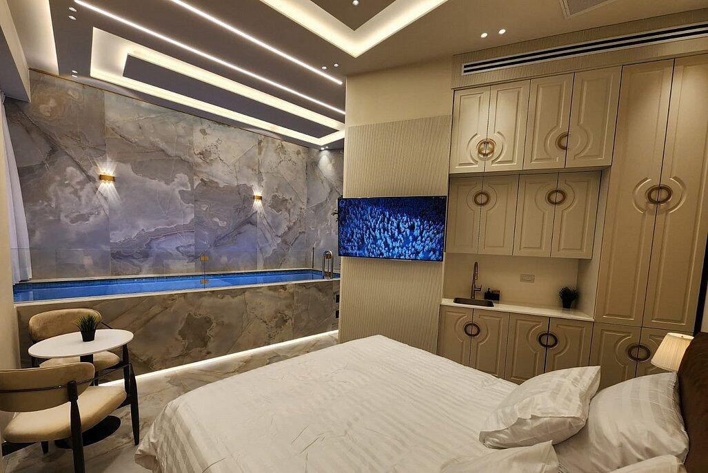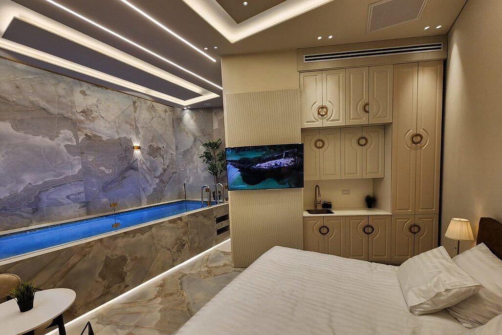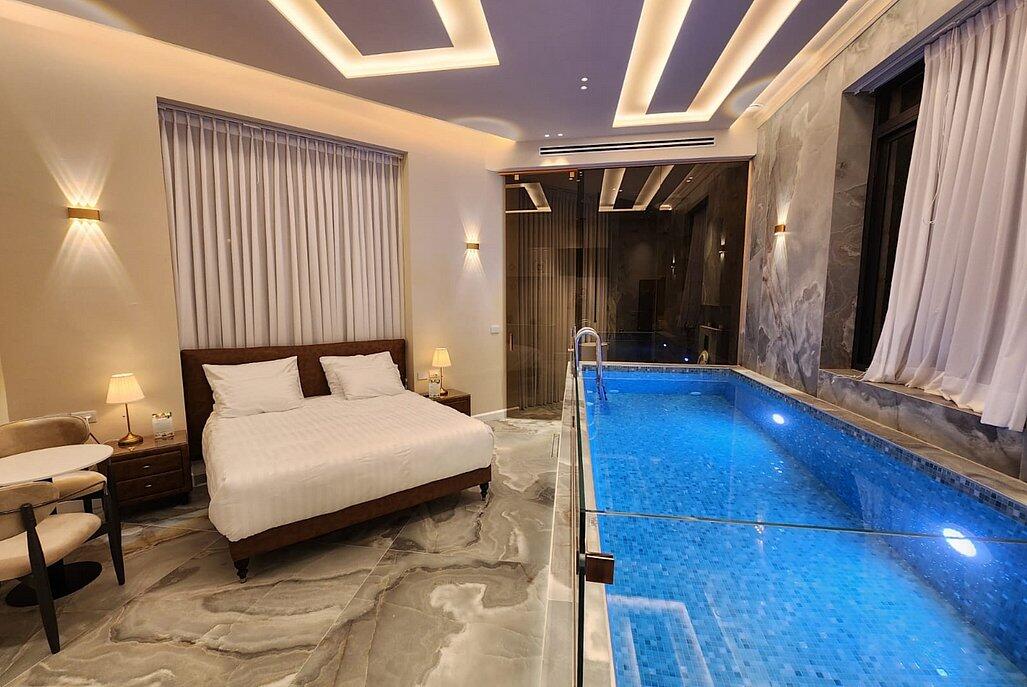 הסוויטות מעוצבות בקפידה וכוללות בריכה פרטית מחוממת, מטבחון מאובזר ומיטה זוגית נוחה.