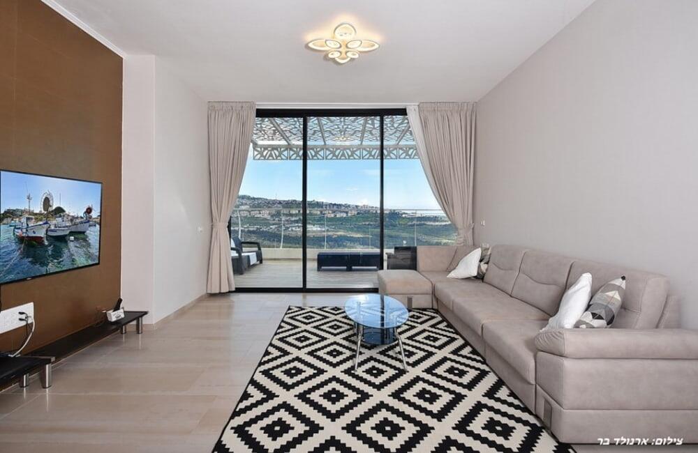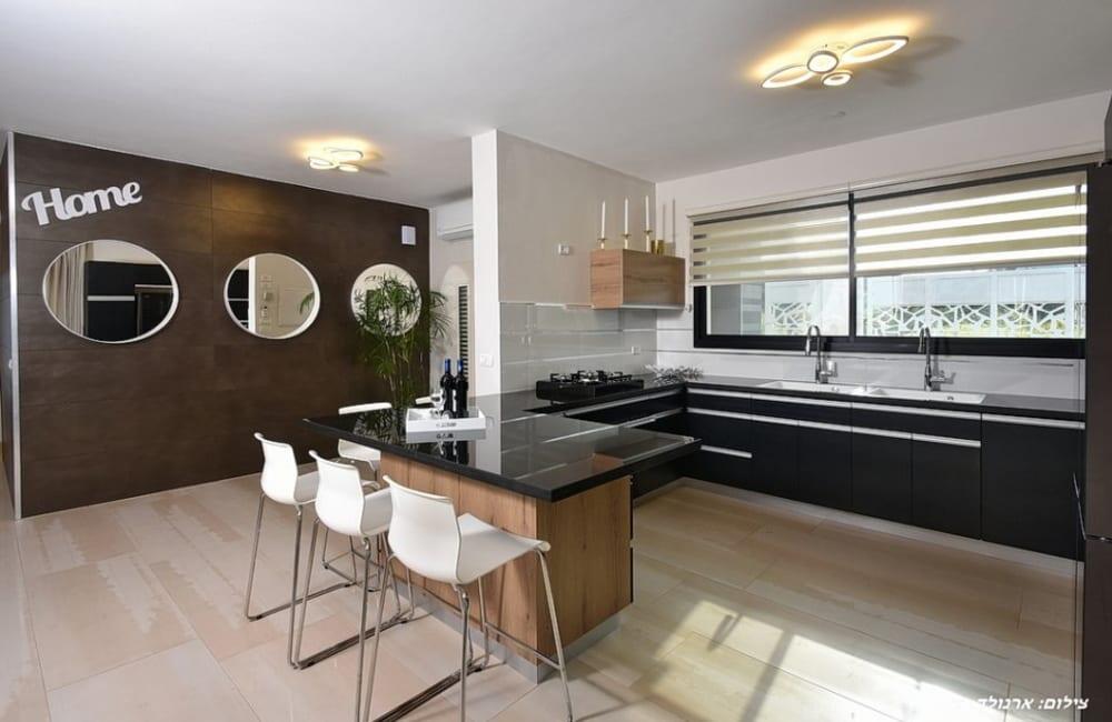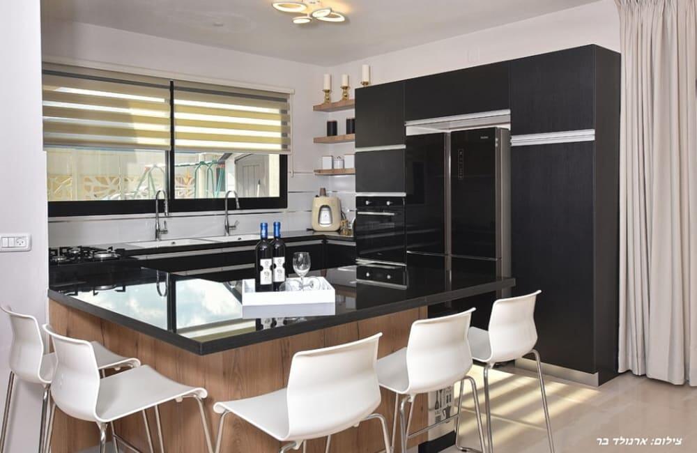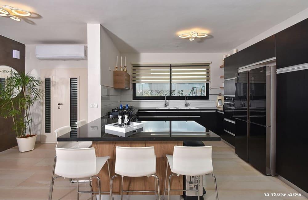 מטבח מאובזר קומפלט, סלון עם מסך 50 אינץ', פינת אוכל גדולה.