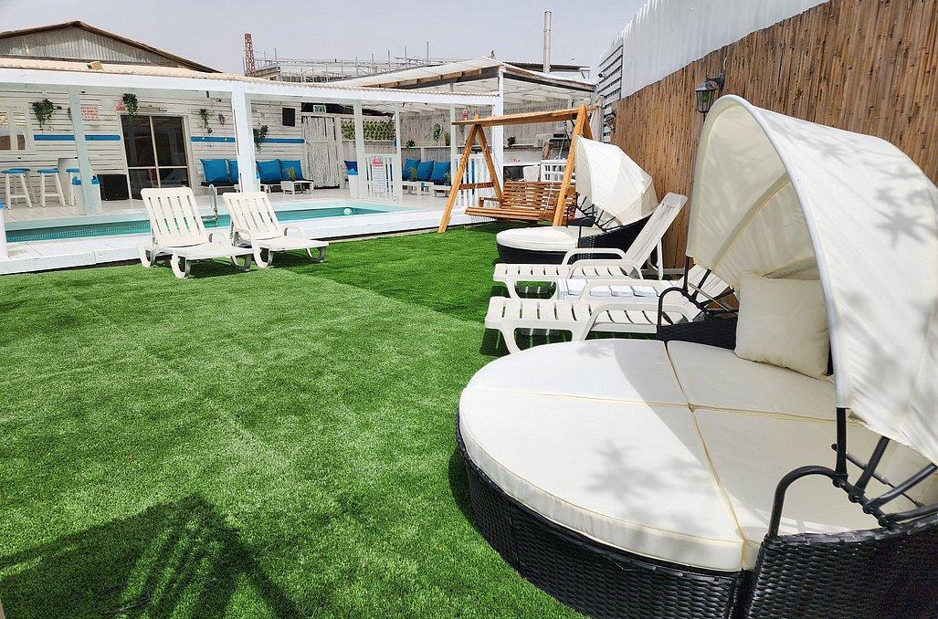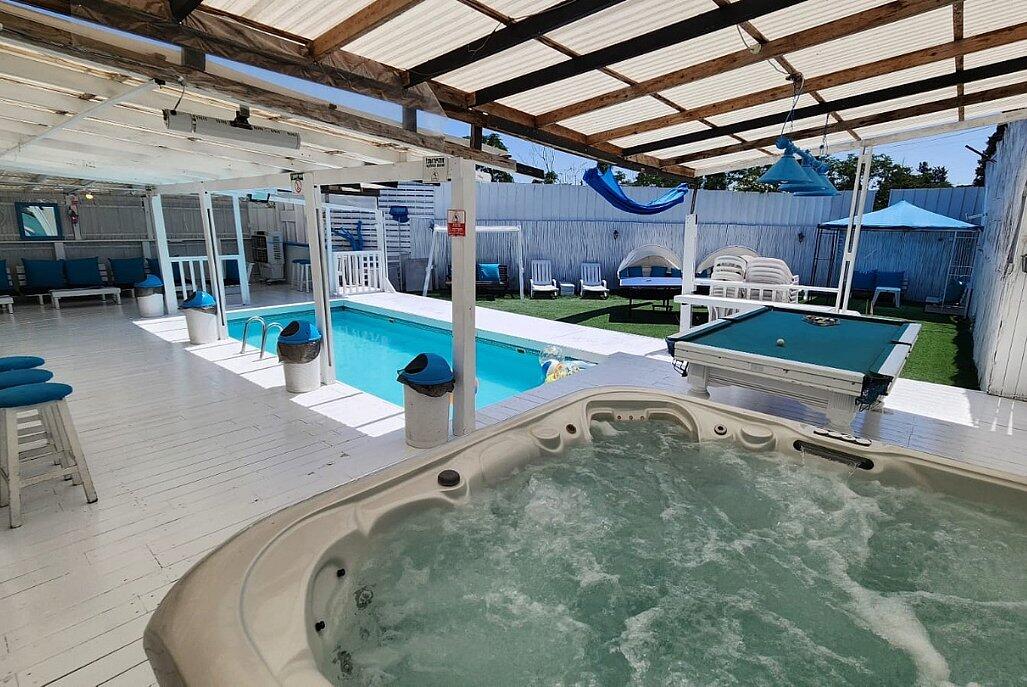 המתחם כולל חצר חיצונית מקורה עם בריכת שחייה מחוממת, ג'קוזי ספא גדול, מערכת הגברה, קריוקי, משחקי שולחן ועוד המון.