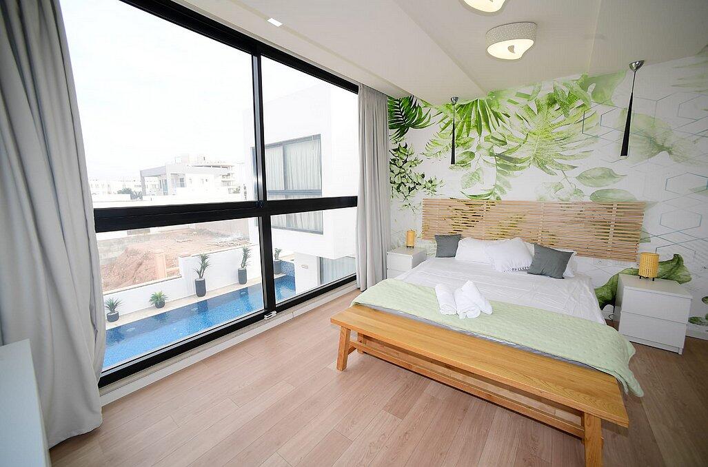 בנויה מ-3- מפלסים עם נוף לים ולמפרץ ומונה -7- חדרי שינה מרווחים הכוללים רצפת פרקט, בכל חדר מיטה זוגית, שידות מגירות, טלוויזיה עם כבלים.