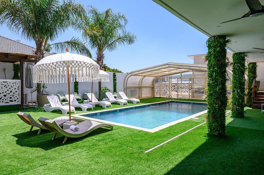 וילת רפאל במושב מנחם, מתחם נופש מפואר המציע חוויה ייחודית. עם 6 חדרי שינה מרווחים ומפנקים וחדר נוסף לילדים, במתחם החיצוני תהנו מבריכת שחייה מחוממת ומקורה, ג'קוזי ספא גדול ל7 אנשים, פינת מנגל מרשימה, מיטות שיזוף, סאונה ועוד מגוון אטרציות ומשחקי שולחן. הוילה מתאימה למשפחות גדולות או קבוצות חברים. העיצוב האלגנטי והאווירה המרגיעה מספקים חוויה מפנקת. הוילה ממוקמת באזור שקט וטבעי, עם נוף פנורמי וגישה נוחה לאטרקציות תיירותיות בסביבה.
