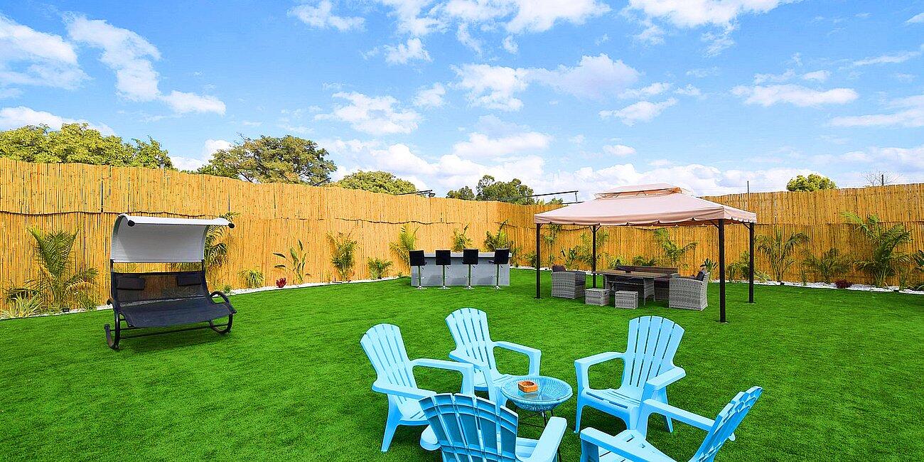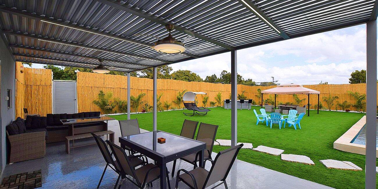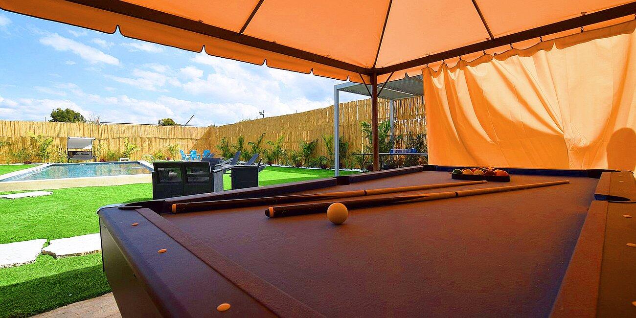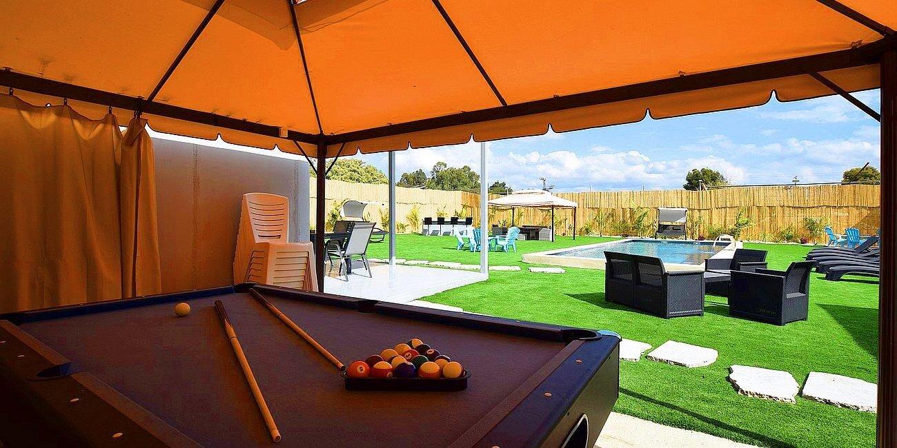במתחם החיצוני שלנו תהנו מבריכת שחייה ענקית במיוחד מגוון פינות ישיבה, משחקי שולחן ועוד.