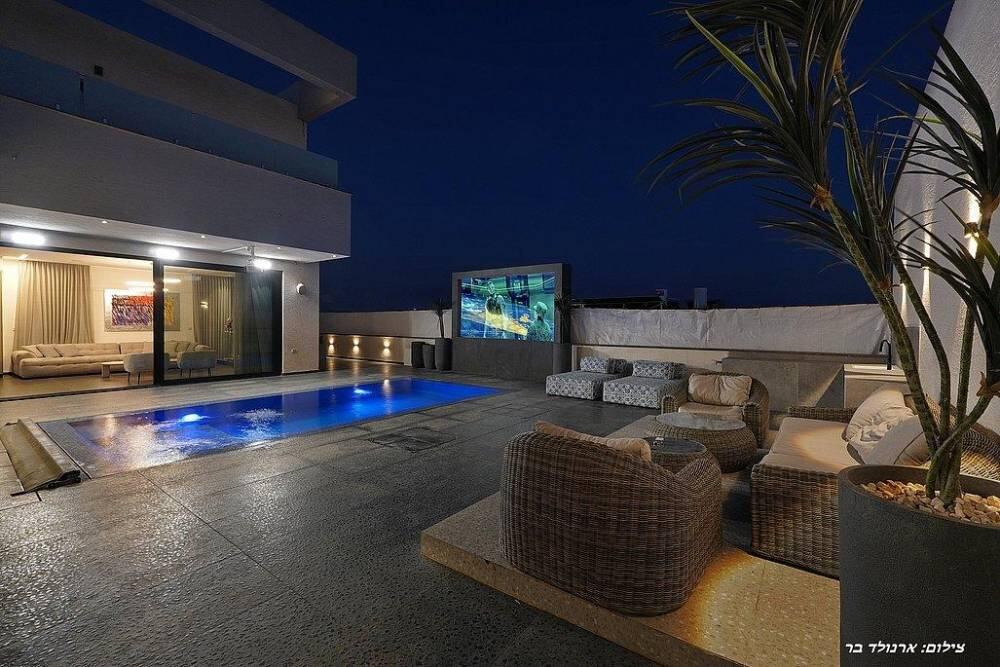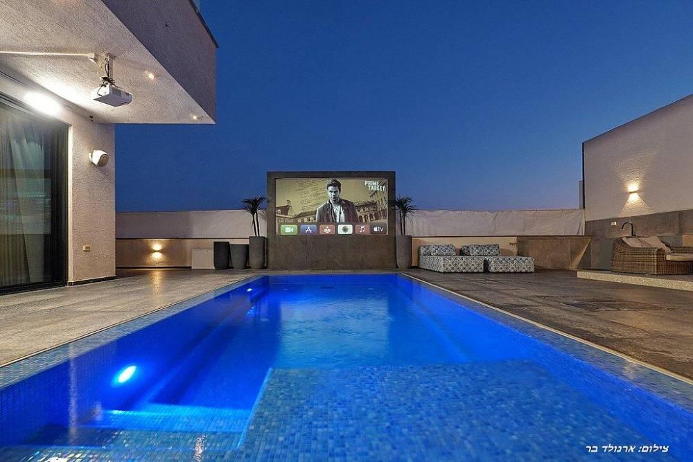 החוויה לא נגמרת בתוך הוילה – בוילה אריא סינמה תיהנו ממתחם חיצוני מרהיב שכולל בריכת שחייה צלולה ומחוממת בעונה, מתחם חיצוני שכולל שולחן אוכל ל-10 אורחים, פינות ישיבה מפוארות לנוחותכם, ותאורת גן קסומה שתהפוך את הערב שלכם למיוחד