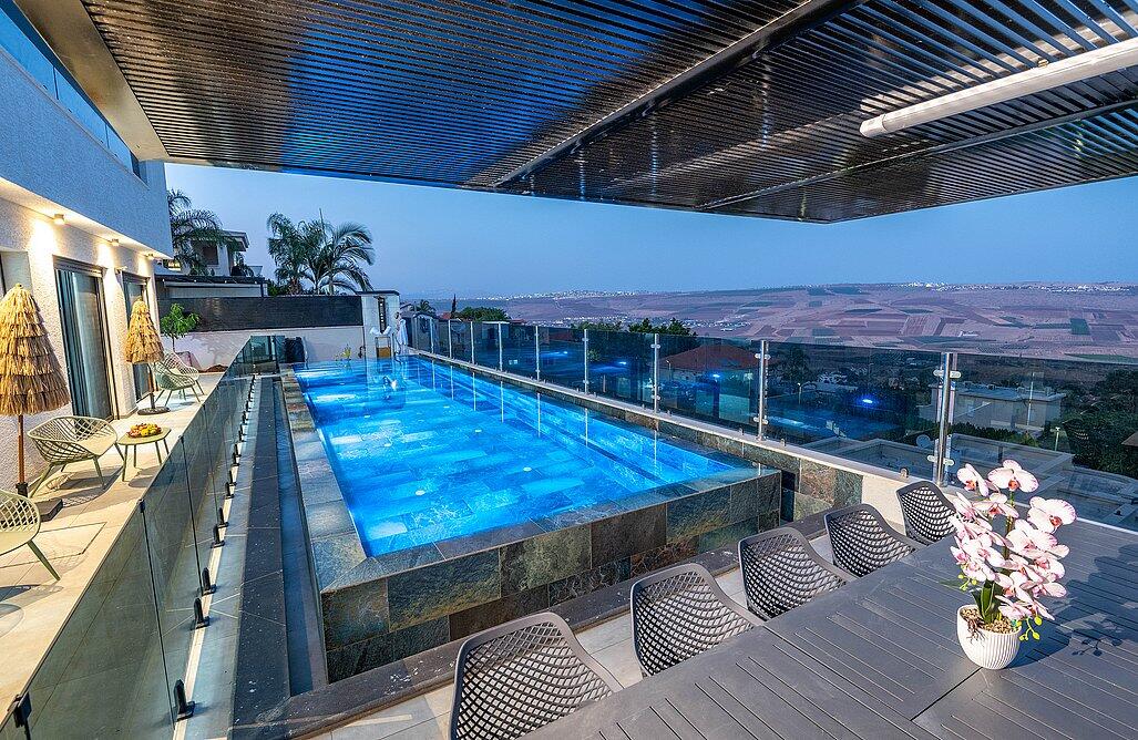 בוילה אלטה לוקס תיהנו משילוב של יוקרה, נוחות ואווירה משפחתית מושלמת. הוילה רחבת ידיים ומיועדת לאירוח עד 18 איש, עם 6 חדרי שינה מפוארים, סלון מפנק עם מסך ענק ופינת אוכל מרשימה. המטבח מצויד בכל מה שצריך לבישול והגשה, ולרשותכם חדר קולנוע פרטי עם מקרן ומשחקי שולחן מהנים לכל המשפחה. החצר כוללת בריכה מחוממת גדולה, פינות ישיבה נעימות, פינת ברביקיו (לא בשבת) ותצפית פנורמית מרהיבה. קרוב לטבריה ולנופי הצפון. הזמינו עכשיו והבטיחו לעצמכם חופשה חלומית!