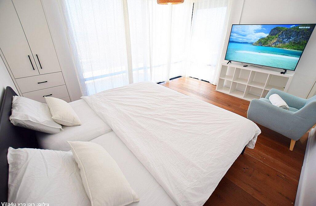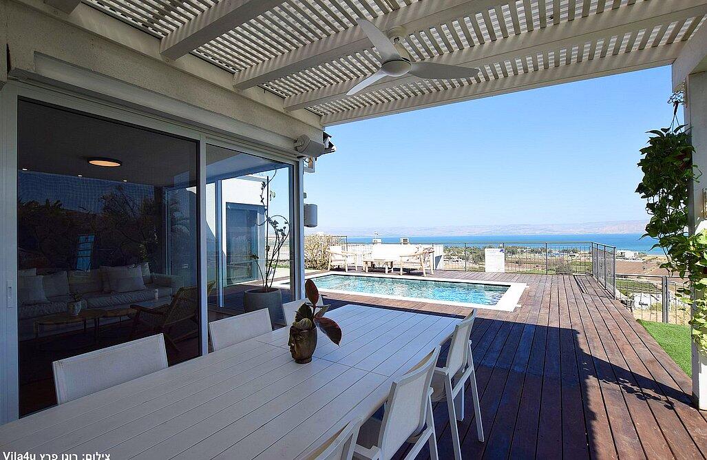 וילה בליס במושבה מגדל מזמינה אתכם לחוויה יוקרתית ושלווה בצפון. 3 חדרי שינה, כולל 2 סוויטות מעוצבות, סלון עם גישה לבריכה פרטית ומטבח מאובזר היטב. מתחם החוץ מציע מדשאות רחבות, פינג פונג, כדורגל, כדורסל ופינות ישיבה מפנקות. הנוף מהווילה נפרש אל הכנרת ומסביבו שלל אפשרויות בילוי: מסעדות, שיט, טיולים באתרי טבע ואתרי מורשת. מתאים לזוגות או משפחות. הזמינו חופשה חלומית בוילה בליס עכשיו!