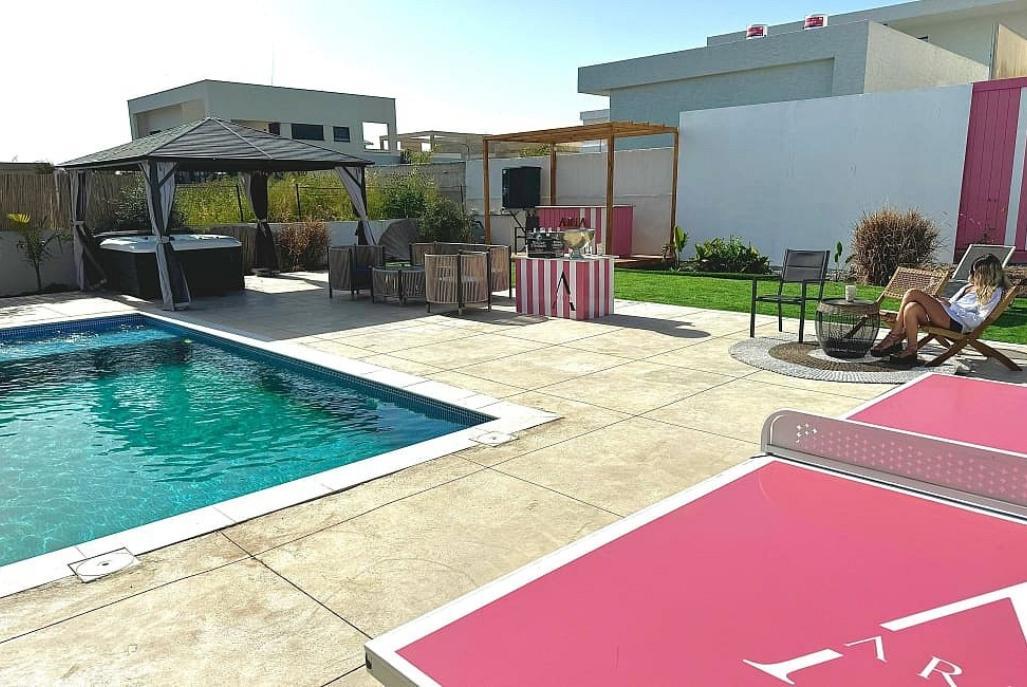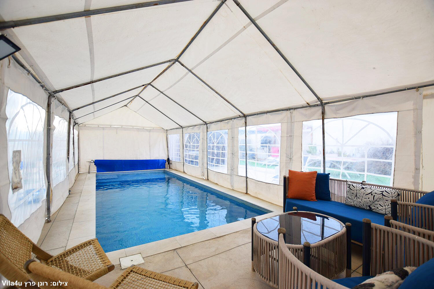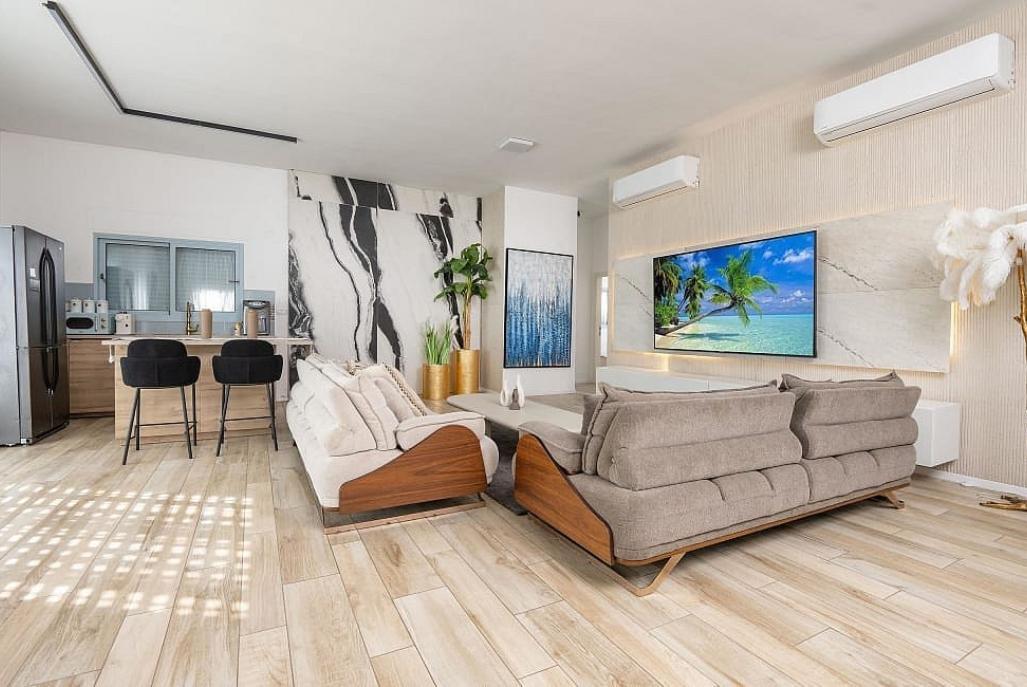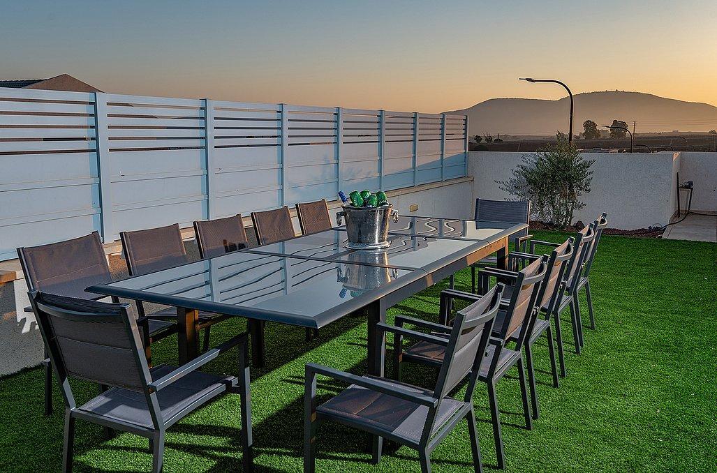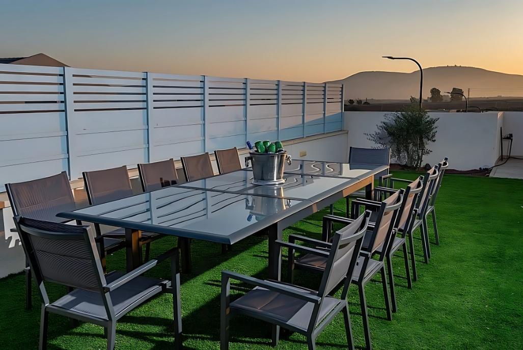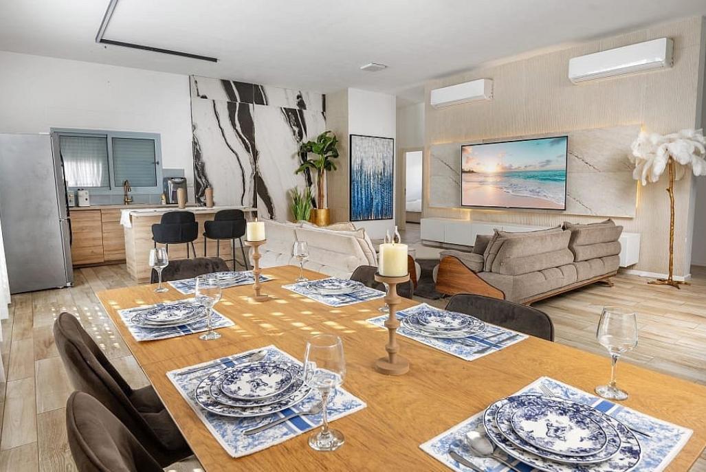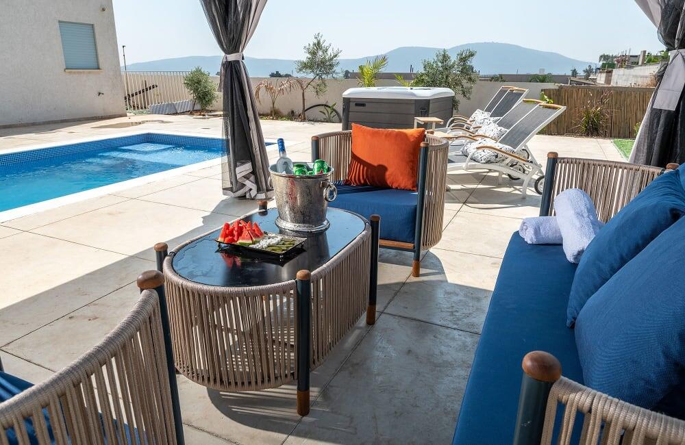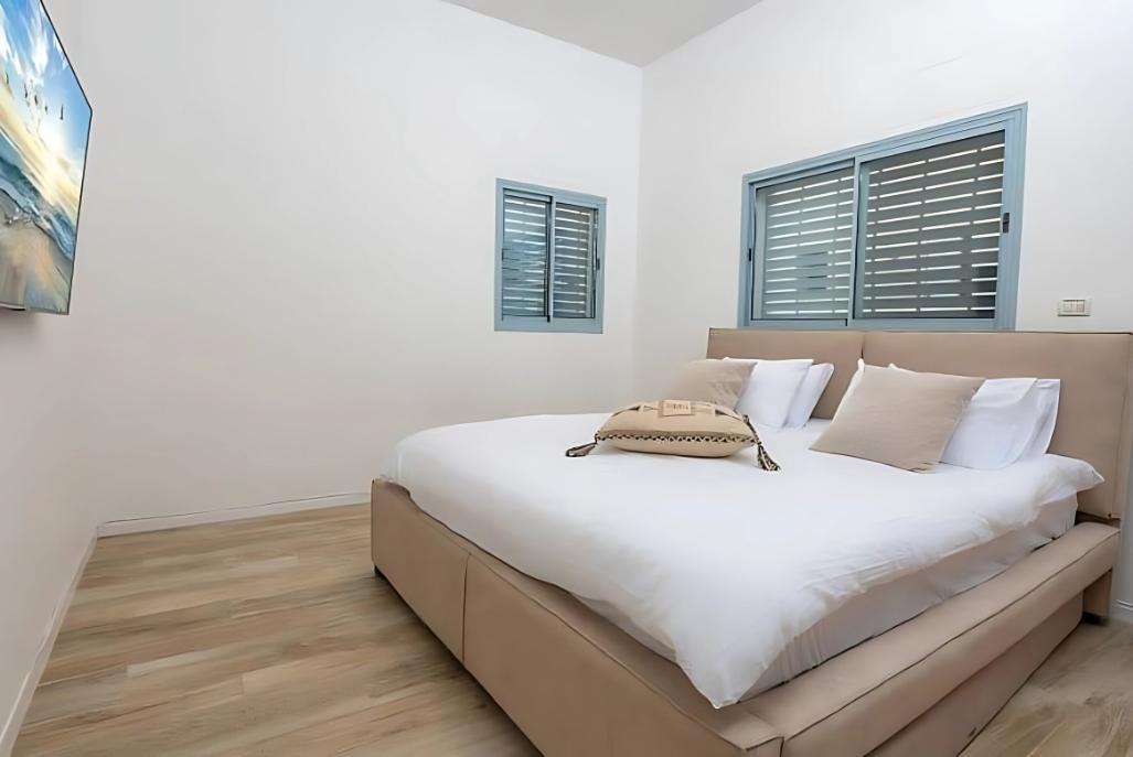 הוילה כוללת 4 חדרי שינה ומיועדת ללינה עד 18 אורחים.