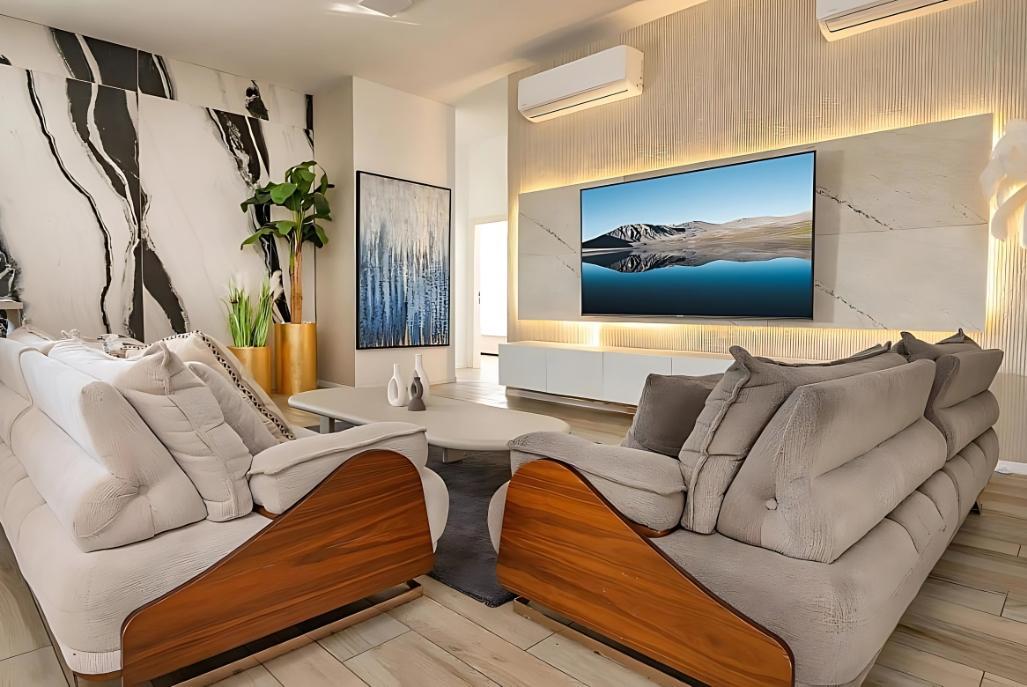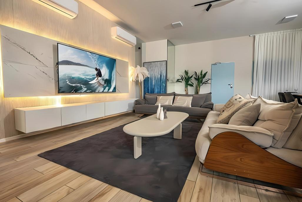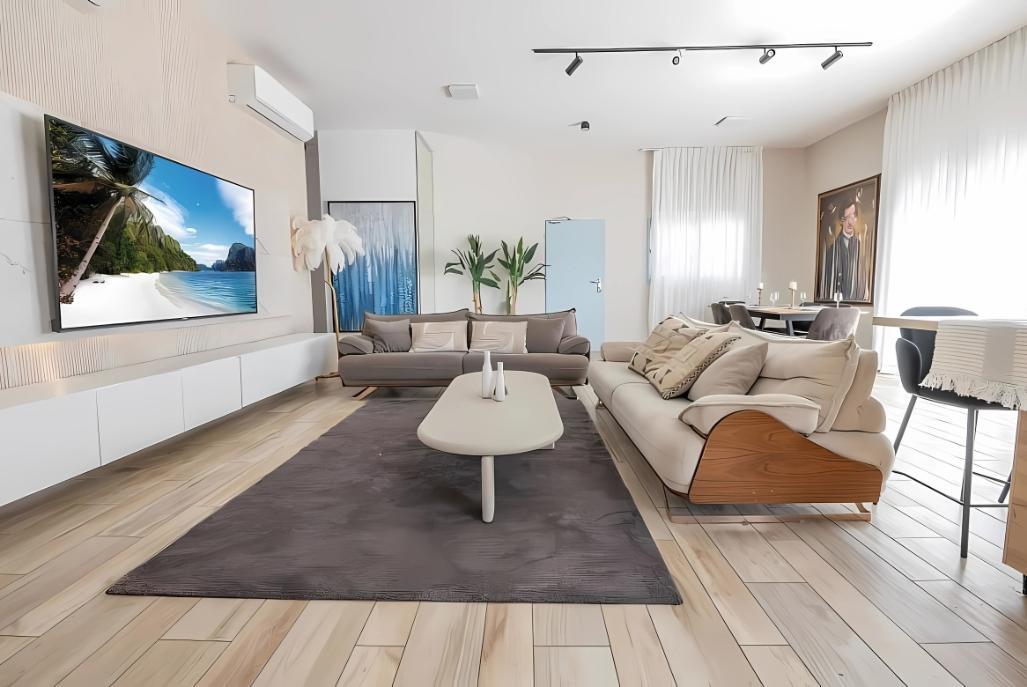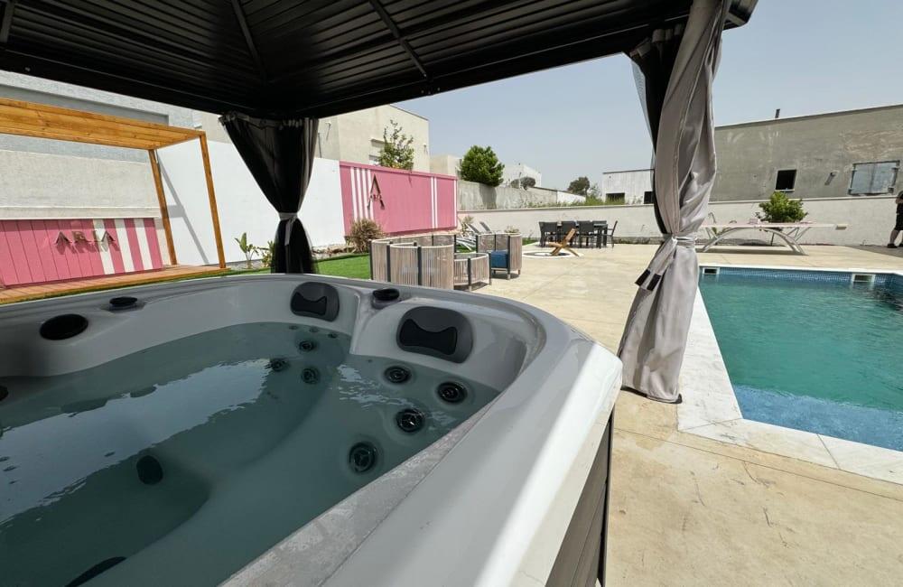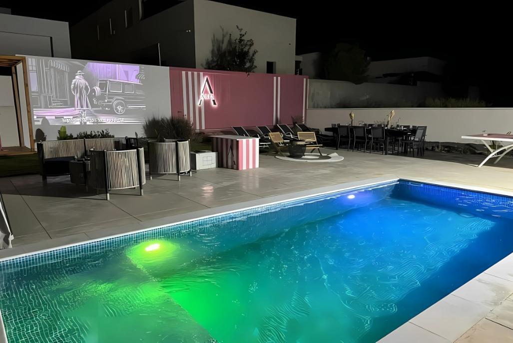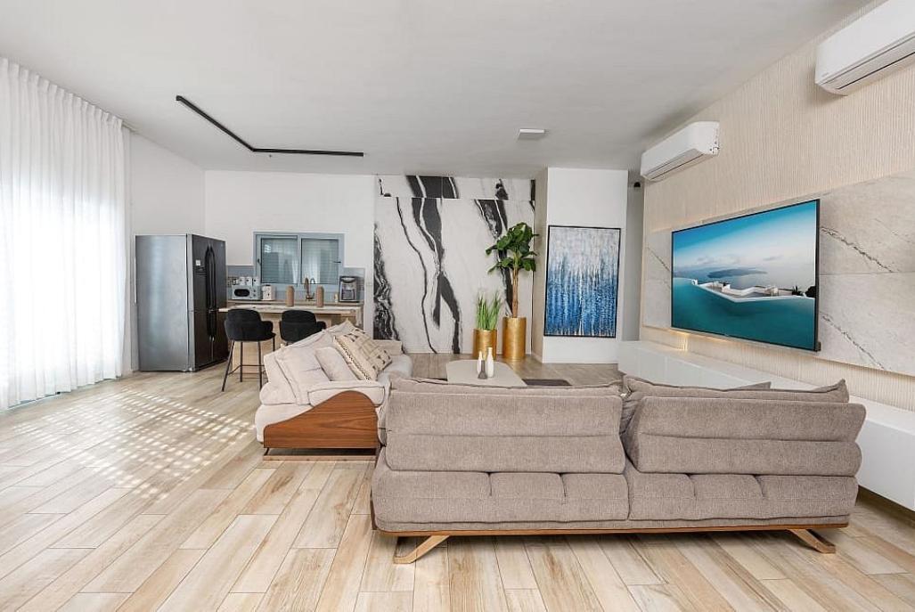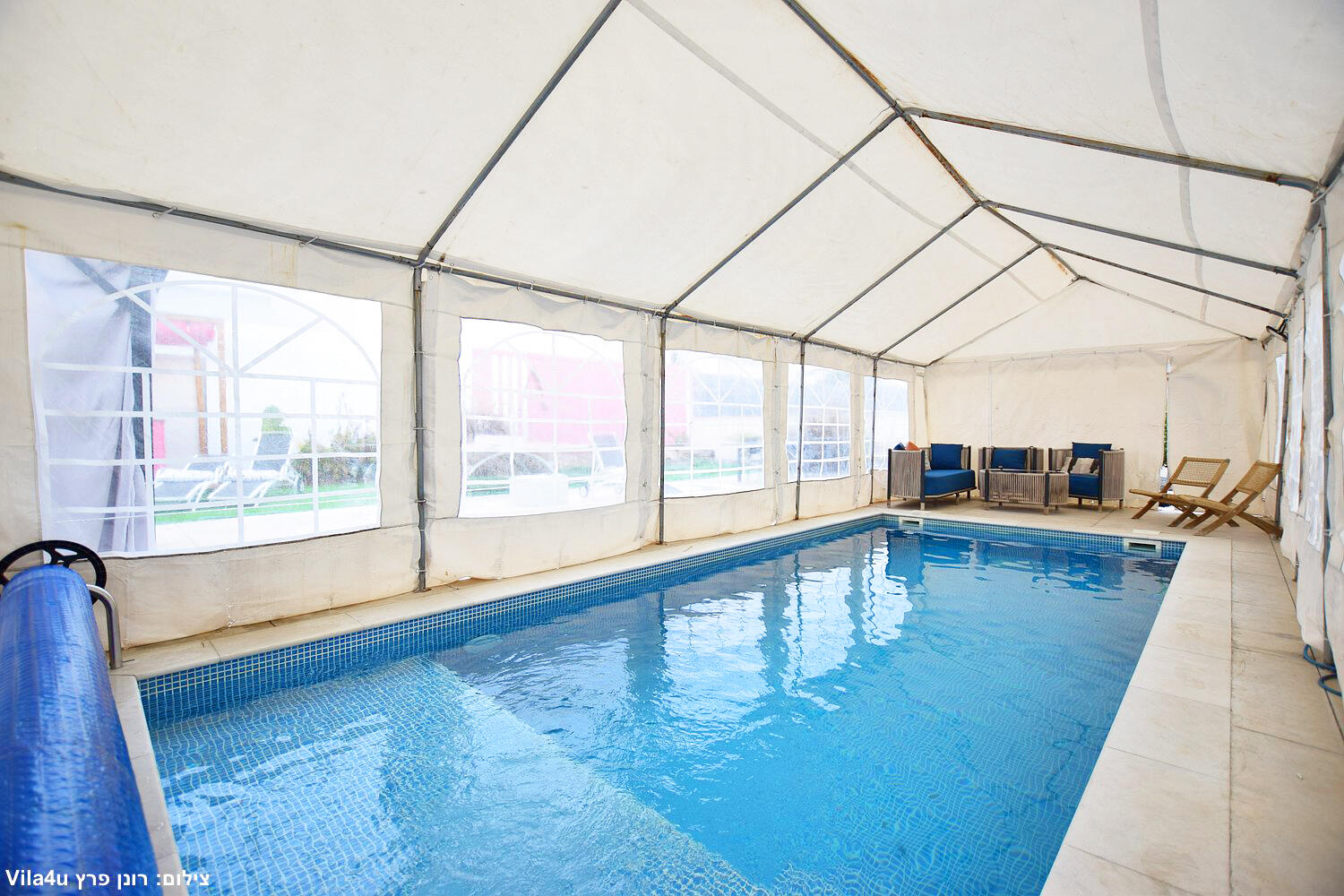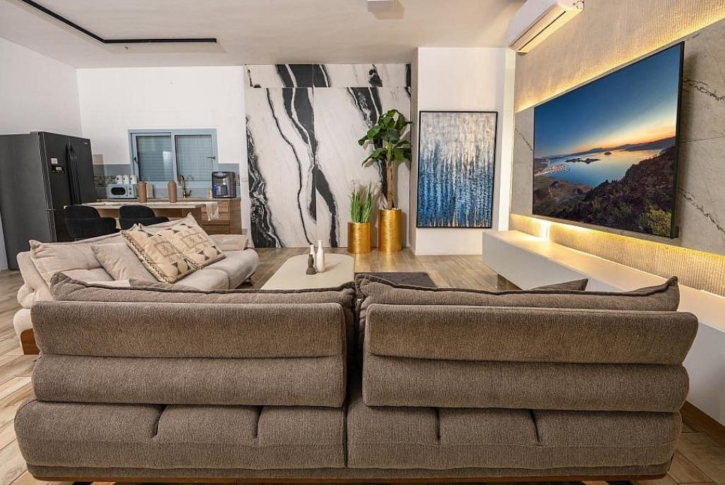 הוילה כוללת 4 חדרי שינה ומיועדת ללינה עד 18 אורחים.