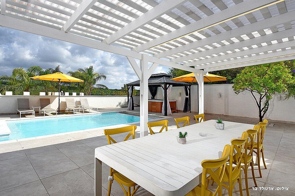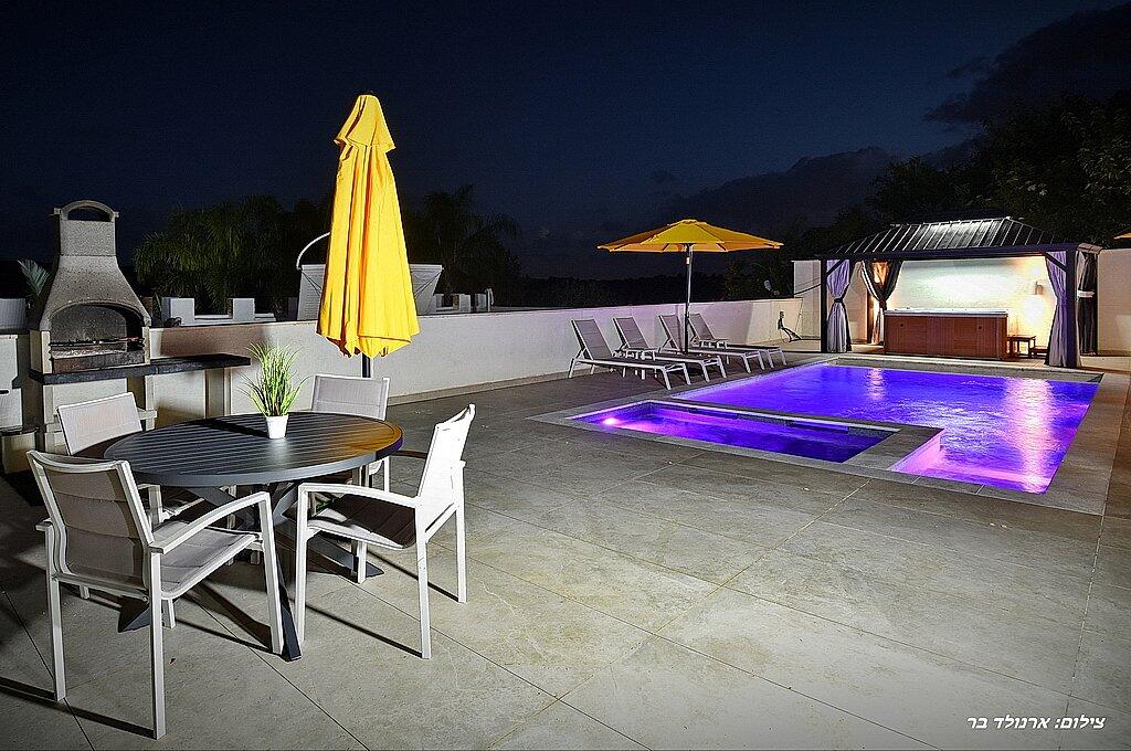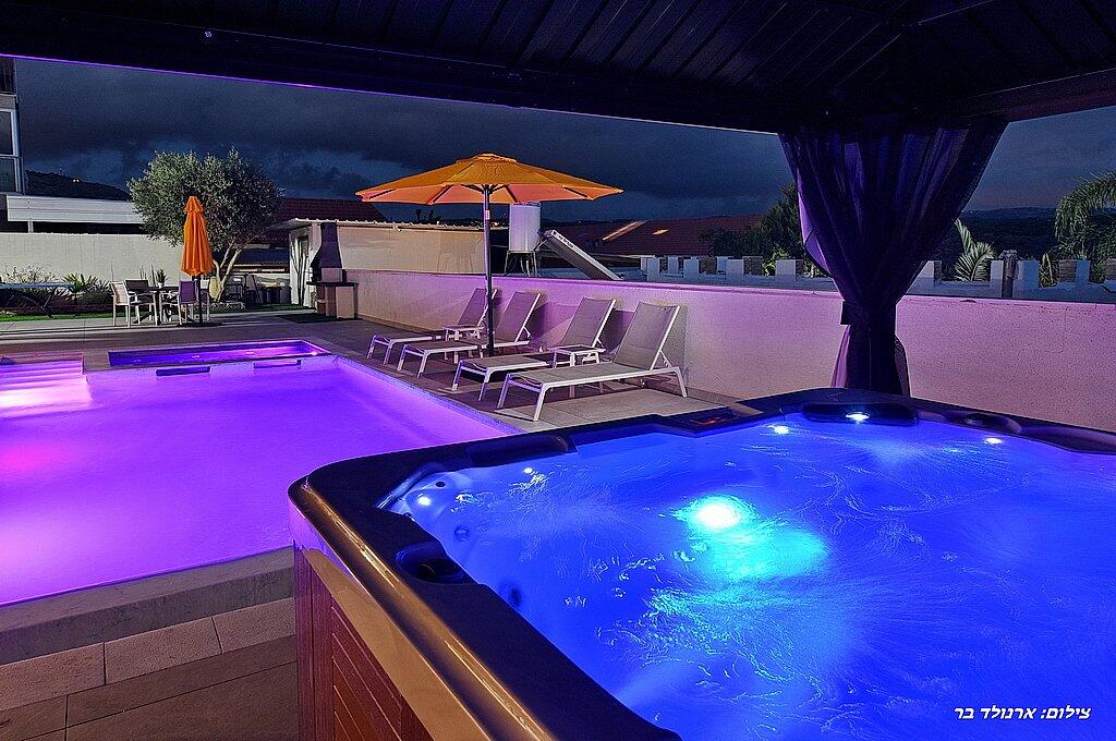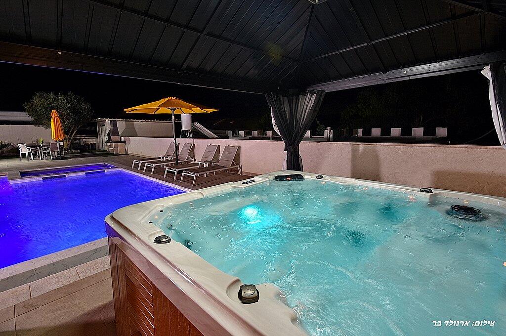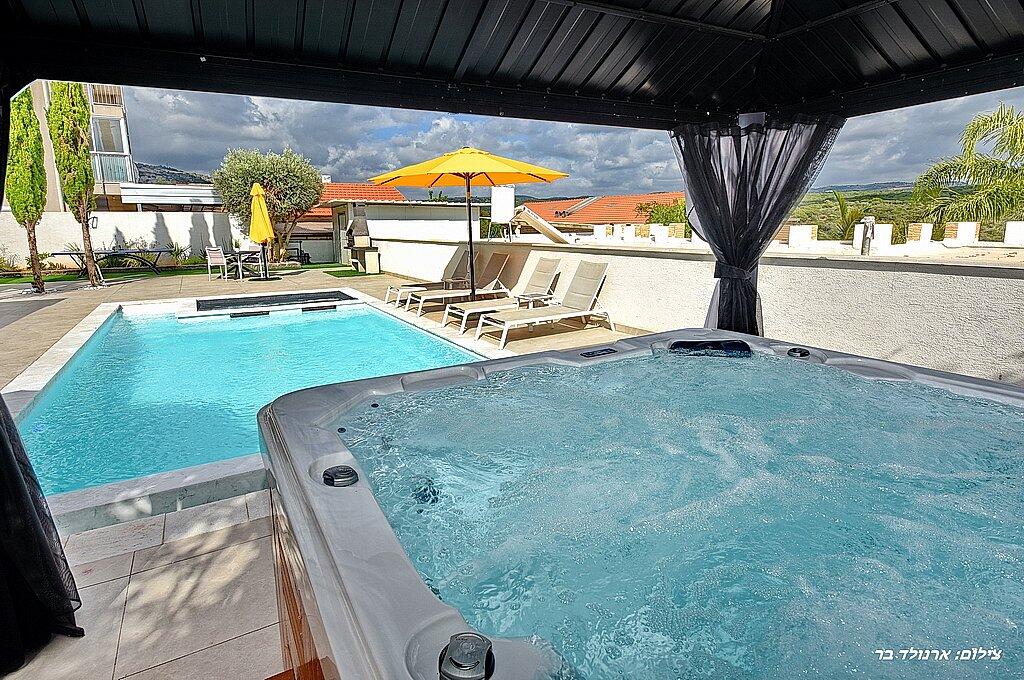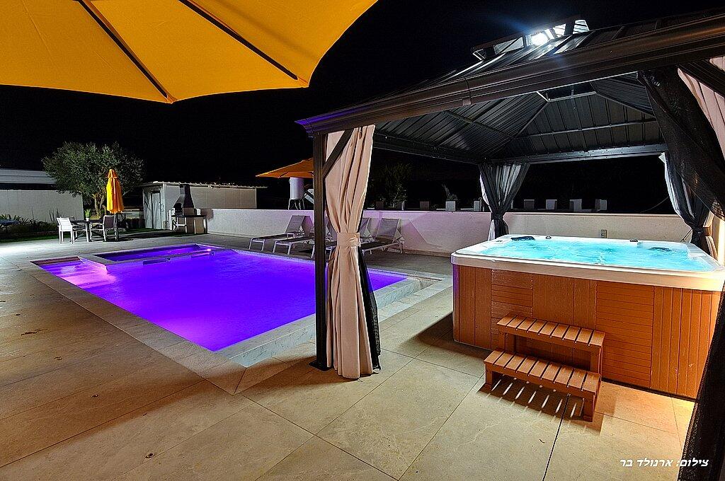 כדאי לדעת! אם תרצו להרחיב את החופשה שלכם, ניתן להשכיר בנוסף 2 סוויטות, כל אחת עם מיטה זוגית מפוארת, ג'קוזי רומנטי ומפנק, סלון יוקרתי, טלוויזיה 32 אינץ', מטבחון מאובזר, מיזוג אוויר, חדר רחצה ומרפסת פרטית עם מערכת ישיבה. לכל סוויטה בריכה פרטית מחוממת ומקורה. אם תשכירו את הוילה יחד עם הסוויטות, תקבלו מתחם גדול עם 8 חדרים ו-3 בריכות שחייה, המקום המושלם לנופש משפחתי או קבוצתי.
