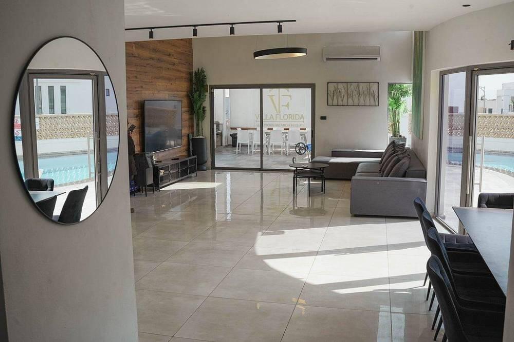 וילה פלורידה באילת מונה 7 חדרים ומציעה לכם לבוא ליהנות מבריכת שחייה חיצונית מחוממת ובריכה מחוממת נוספת בקומה התחתונה של הוילה, חדרי שינה וסוויטות מרווחות ומעוצבות ואבזור מלא של הצרכים הבסיסיים לנופש.