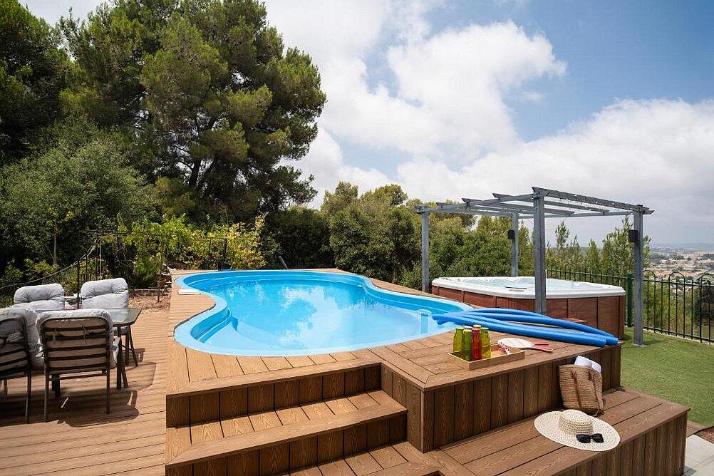 גליל מערבי, כפר ורדים – כאן שוכנת וילה לה פטלונה, מקום בו יוקרה, טבע ורוגע נפגשים. הווילה מציעה 4 חדרי שינה, 3 חדרי רחצה, סלון מעוצב עם מסך LCD, פינת אוכל ומטבח מאובזר מכל טוב. כל חדר כולל מיטה זוגית, מיזוג אוויר ומסך, ובנוסף ניתן להוסיף 10 מזרנים. במתחם החיצוני תיהנו מבריכה פרטית, ג’קוזי ספא מפנק, שולחן סנוקר ופינות ישיבה קסומות מול נוף גלילי מרהיב. מנגלי גז ופחמים עם משטח עבודה וכיור יהפכו כל ארוחה לחגיגה. באזור מחכות לכם חוויות כמו אגם מונפורט, רכיבה על סוסים וטיולי טרקטורונים. המקום מתאים למשפחות, קבוצות, שבתות חתן וימי גיבוש – עד 18 איש ללינה. הזמן המושלם לחופשה מתחיל כאן – הזמינו עוד היום!