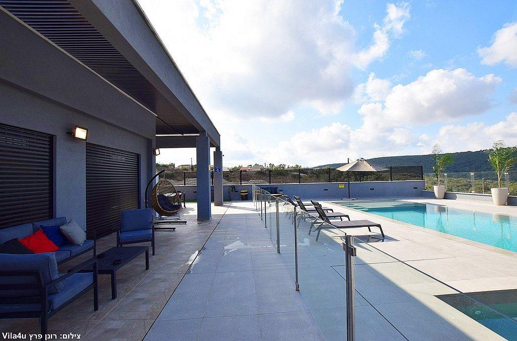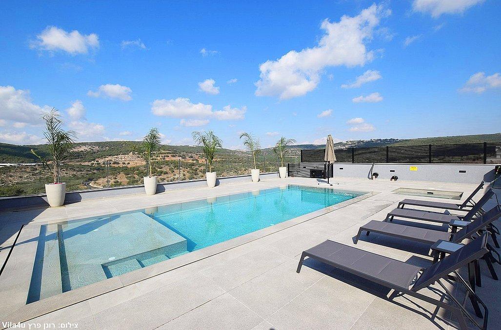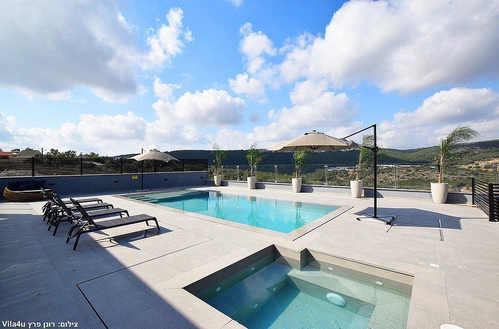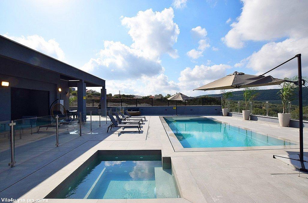 בוילה מול ההר תוכלו ליהנות מבריכת שחייה וג'קוזי ספא היושבים מול הנוף, משחקי שולחן, עמדת מנגל, מתחם פנים מאובזר ומעוצב. בוילה קיים 4 חדרי שינה וסוויטה נוספת צמודה, סך הכל 5 חדרי שינה במתחם.