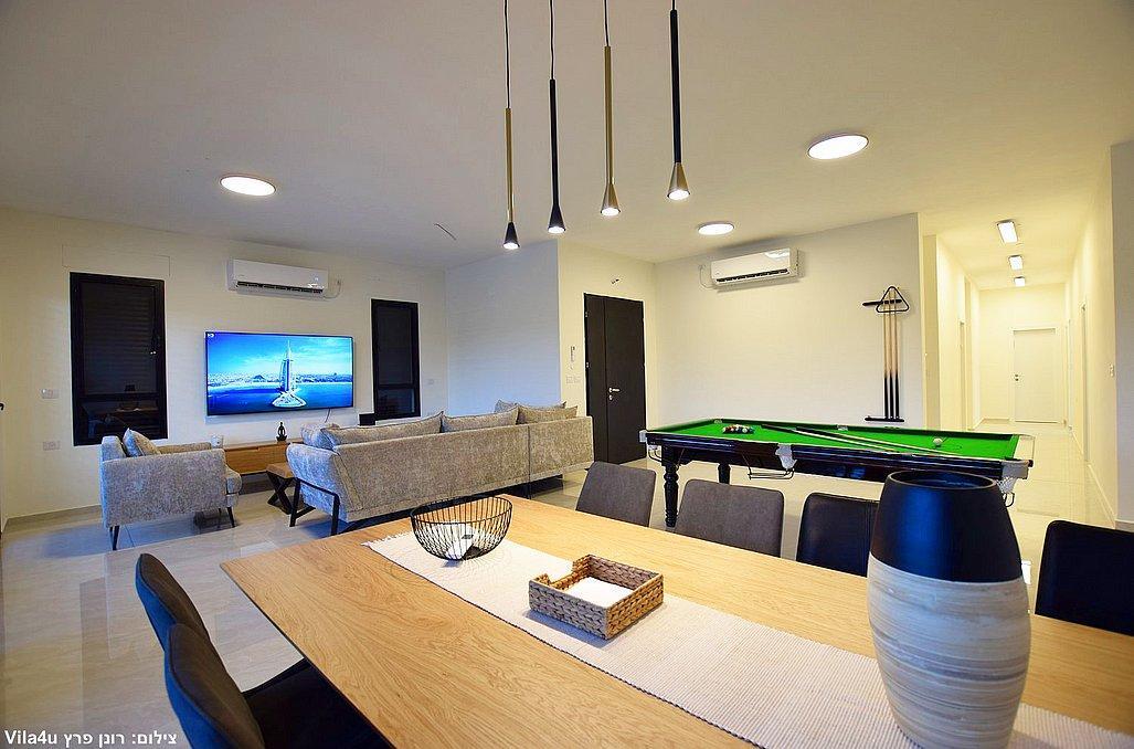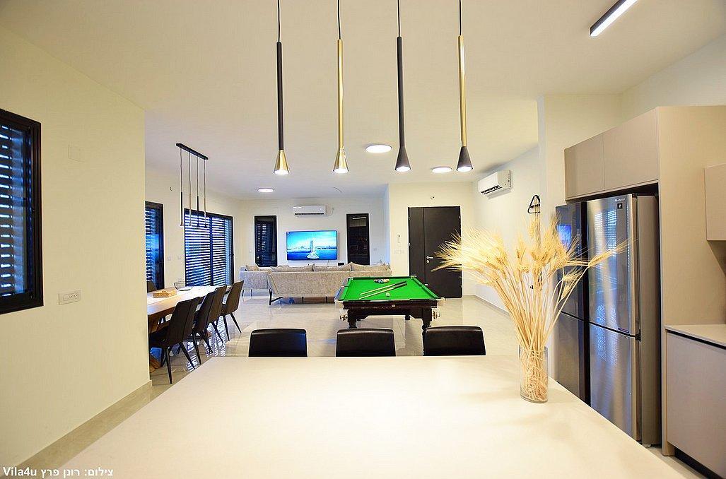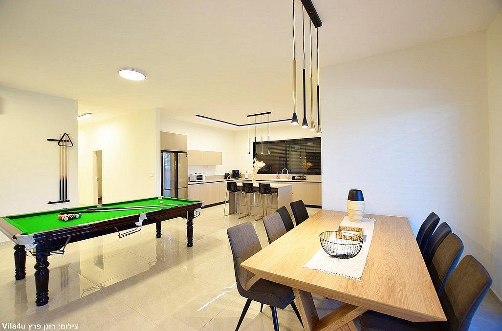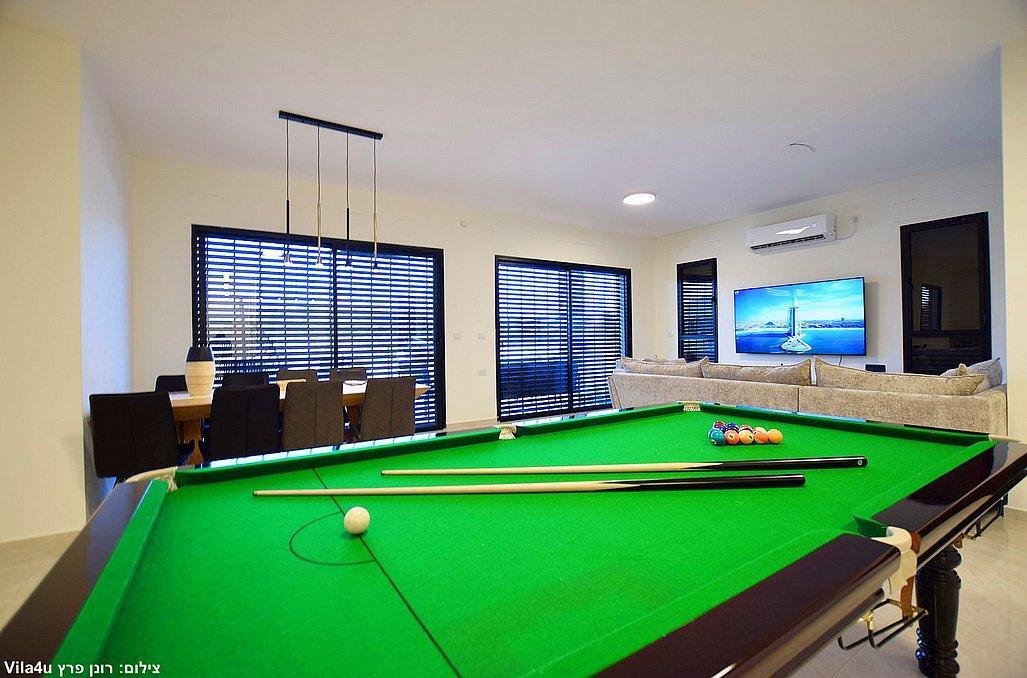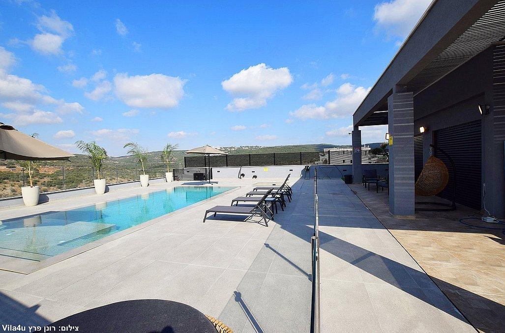 בוילה מול ההר תוכלו ליהנות מבריכת שחייה וג'קוזי ספא היושבים מול הנוף, משחקי שולחן, עמדת מנגל, מתחם פנים מאובזר ומעוצב. בוילה קיים 4 חדרי שינה וסוויטה נוספת צמודה, סך הכל 5 חדרי שינה במתחם.
