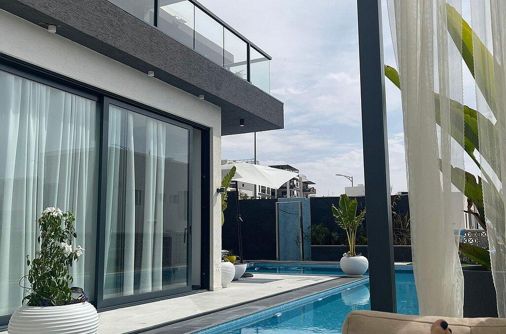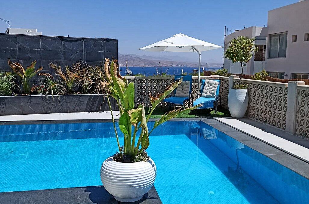 בוילה פאר אילת תוכלו ליהנות מ5 חדרי שינה יוקרתיים עם חדרי רחצה פרטיים, מתחם חוץ עם בריכת שחייה מחוממת, ג'קוזי ספא, עמדת מנגל גז ונוף אל הים.