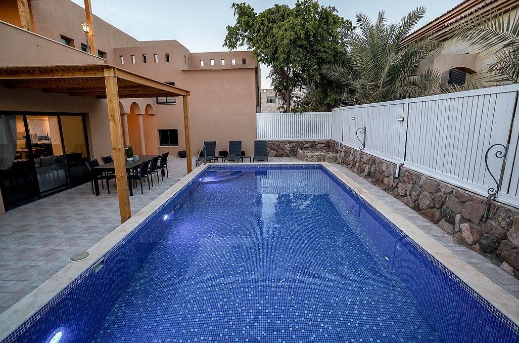 הוילה ממוקמת במרחק קצר מכל האטרקציות הכי שוות באילת, ותוכלו ליהנות בה מ5 חדרי שינה, מתחם חוץ עם בריכת שחייה מחוממת, פינת אוכל, עמדת מנגל, מתחם פנים מעוצב עם סלון, מטבח מאובזר ועוד.