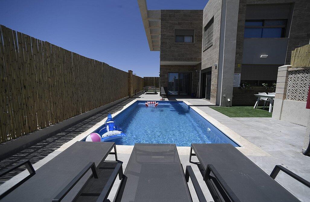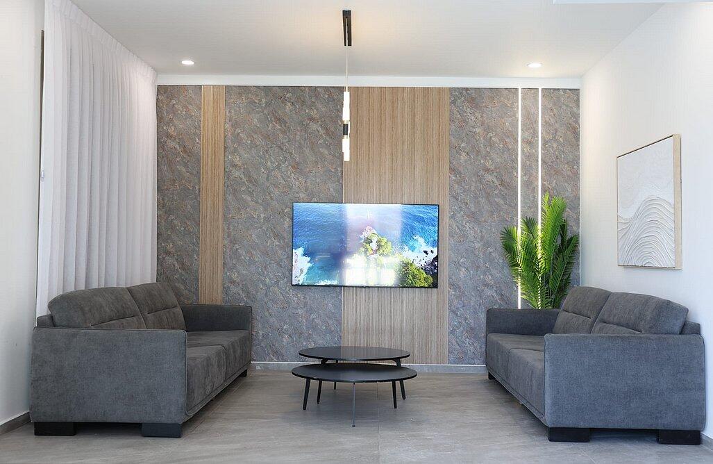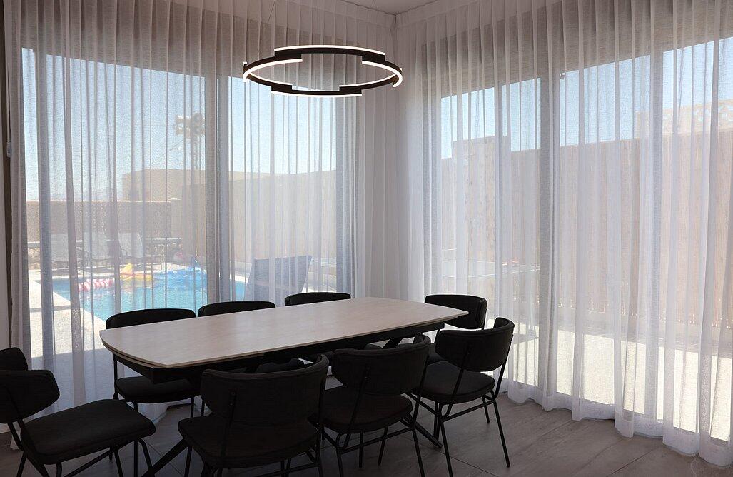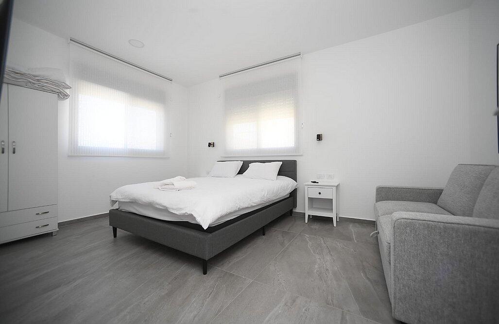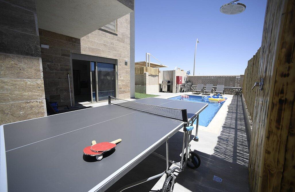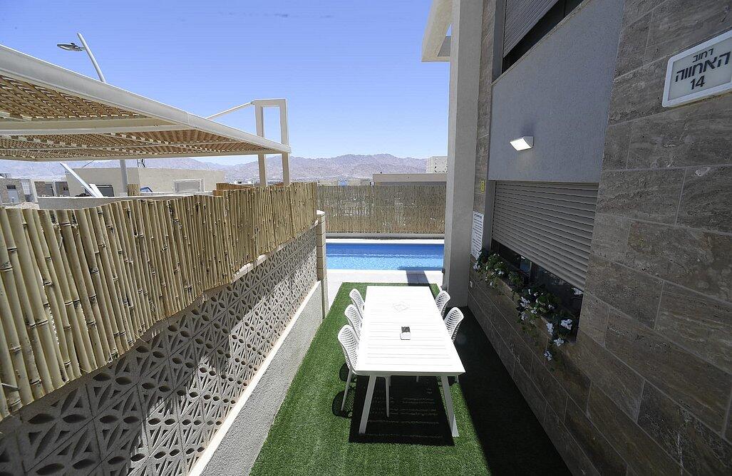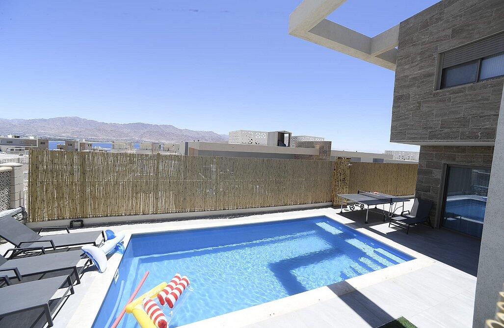 וילה שירת הים באילת – חופשה של יוקרה ונוחות. 5 חדרי שינה מעוצבים, סלון מרווח ומטבח מאובזר. מתחם חיצוני עם בריכת שחייה, שולחן טניס ופינות ישיבה. מתאים למשפחות, זוגות וקבוצות עד 15 איש. אירוח לנופש בלבד – לא מתאים לבני נוער.
