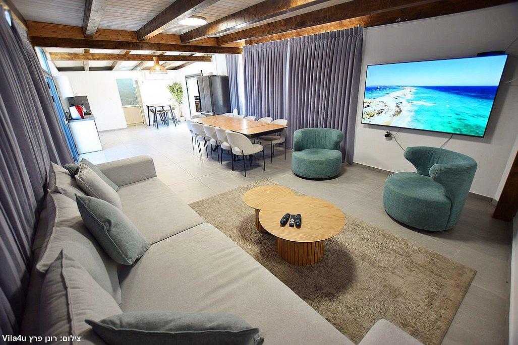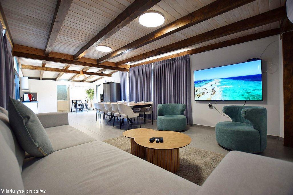 וילה ונילה ריזורט – המקום שיגשים לכם את כל הפנטזיות על חופשה מושלמת בגליל. שישה חדרי שינה מרווחים, כל אחד עם חדר רחצה פרטי, סלון משפחתי, טלוויזיה חכמה וחיבור ל-YES, מטבח מאובזר עם כל הציוד שתצטרכו. בחצר תיהנו מבריכה גדולה, ג'קוזי מפנק, עמדת BBQ, פינות ישיבה וארוחות באוויר הפתוח. מתאימה למשפחות וזוגות בלבד, כולל ציבור דתי. פרטיות מוחלטת, חניה מסודרת, ואפילו עמדת טעינה לרכב חשמלי. חווית נופש ברמה הגבוהה ביותר בגליל המערבי.